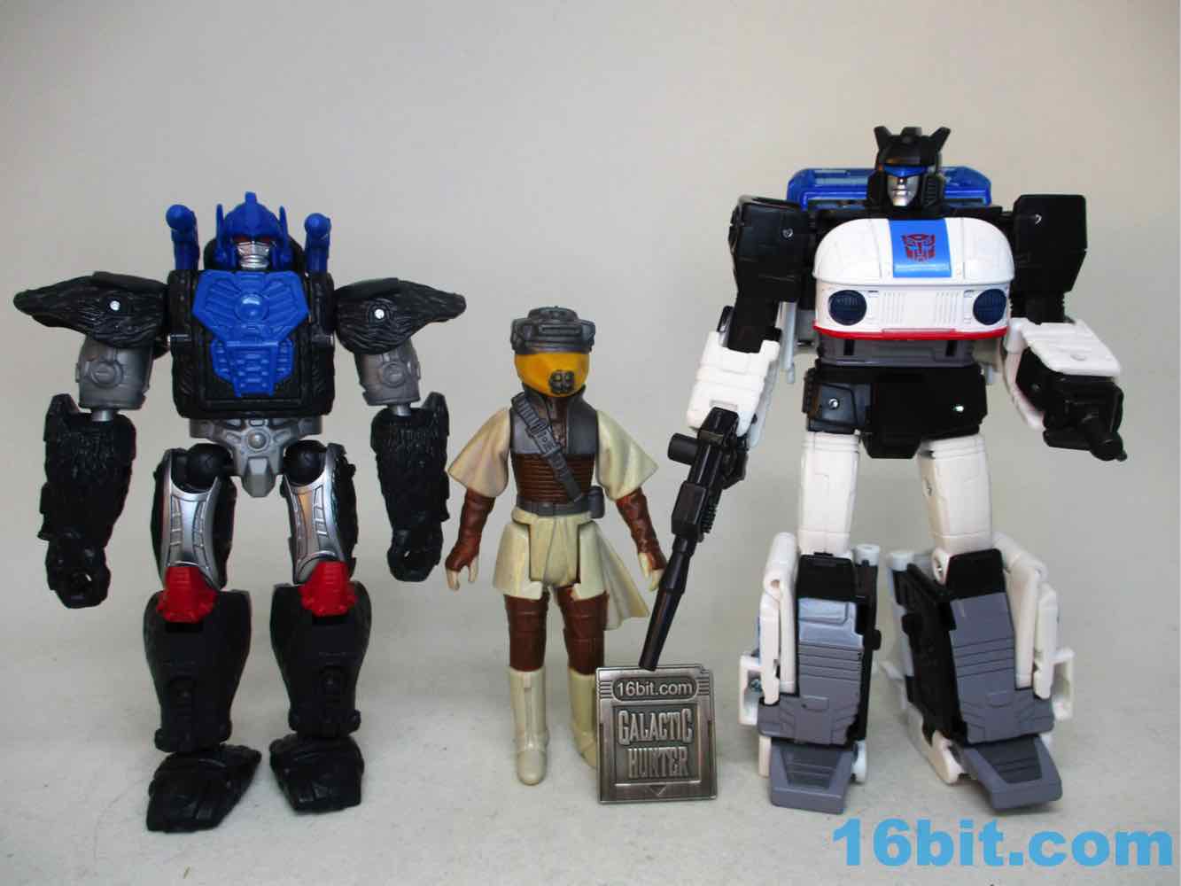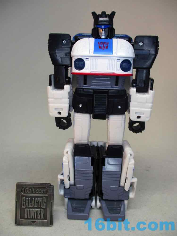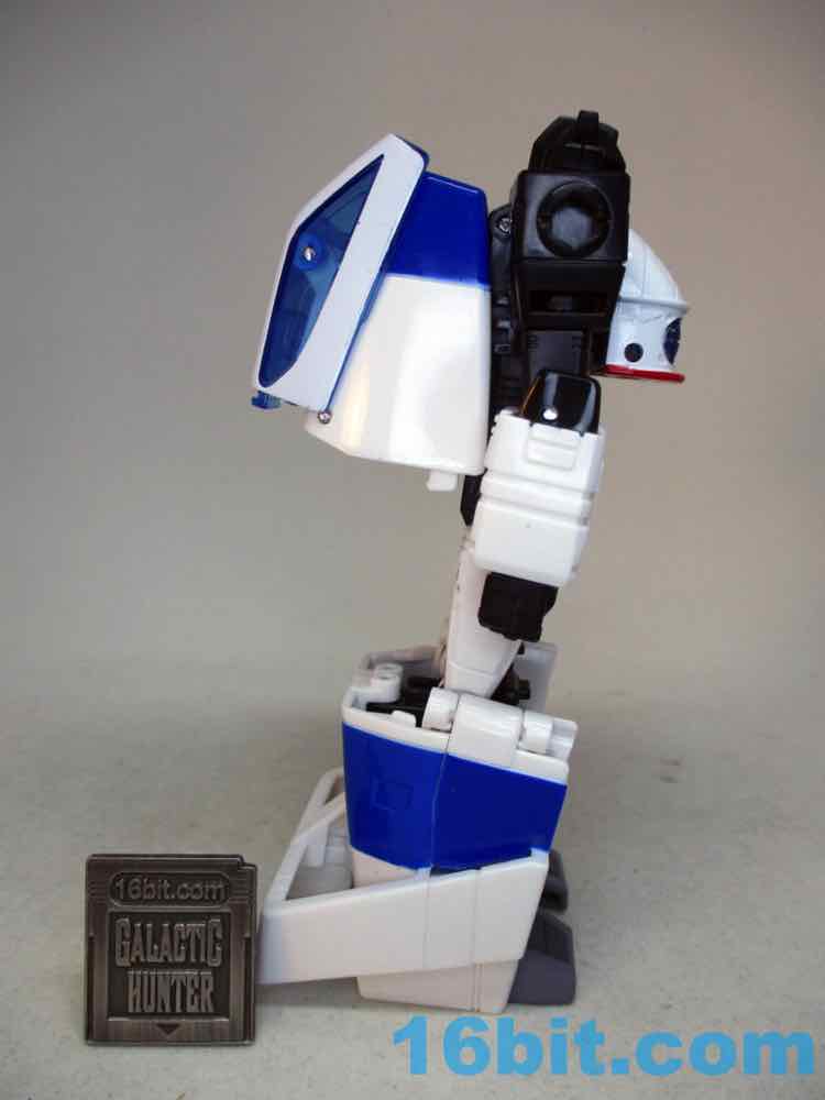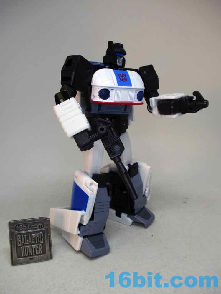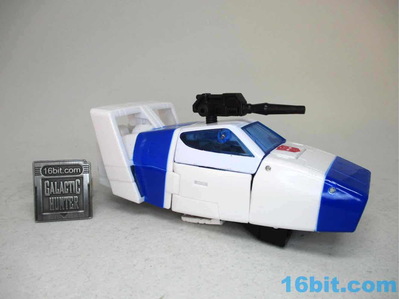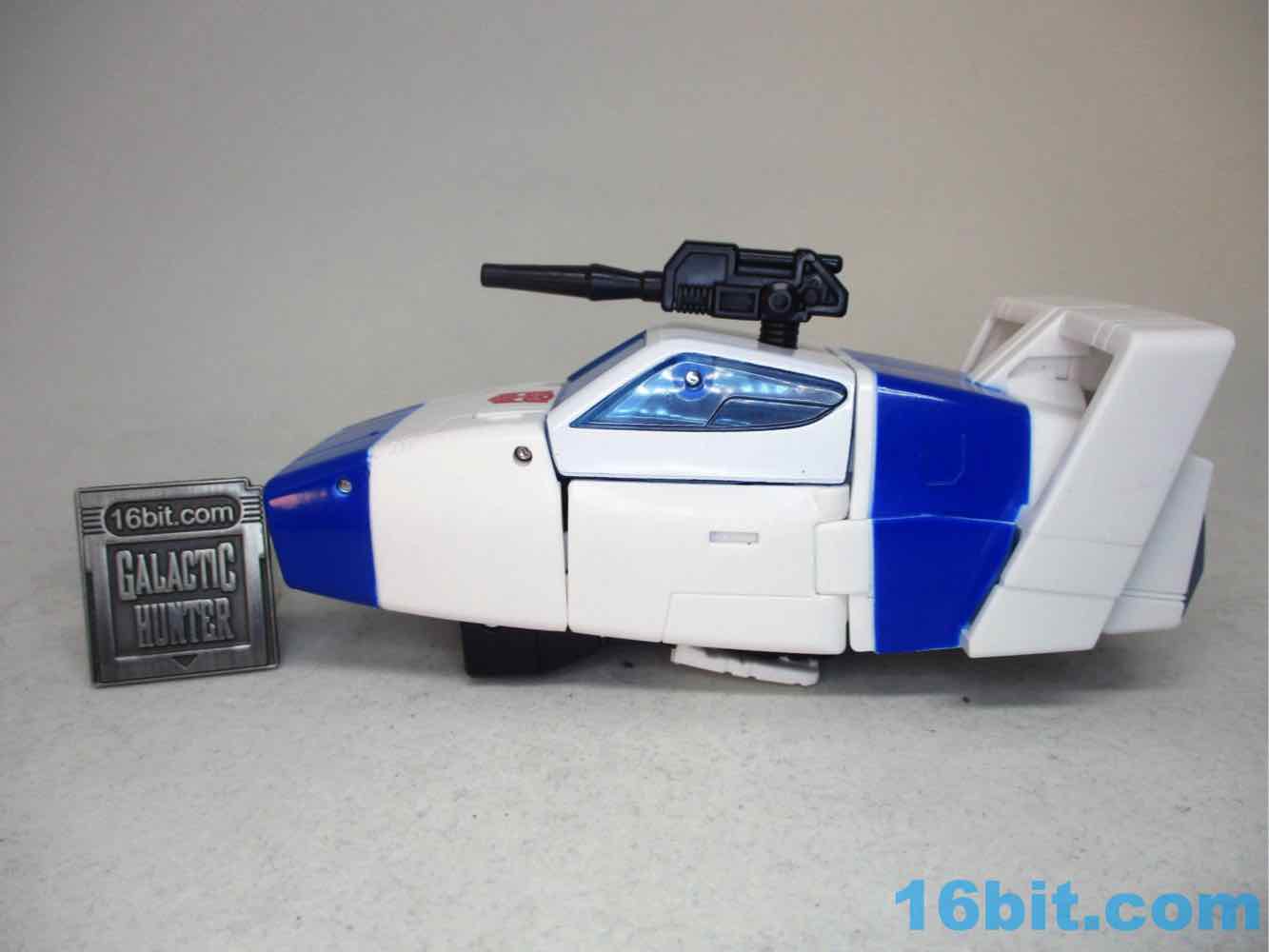 As of early April he's still rolling out (and online pre-orders weren't filled - I canceled mine to pluck it off the shelf.) $25 is kind of expensive for a deluxe toy, but there are a lot of parts here and Hasbro came up with a good exclusive that's appealing to old, jaded collectors who probably cringe every time a new figure from the 1984 era comes back. This gives you a reason to actually want to buy another Jazz toy, and that's enough for me. And I mean it - with this one, I may never buy another Jazz toy. They nailed it, it's time to move on to whatever is next. (Wheeljack, I hope.)