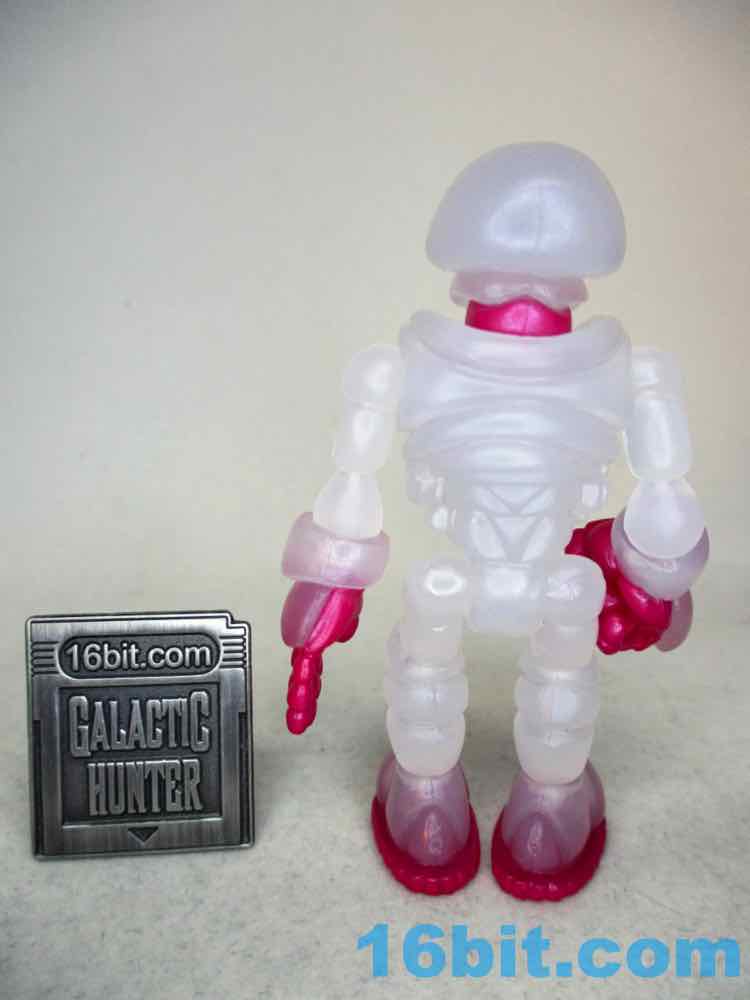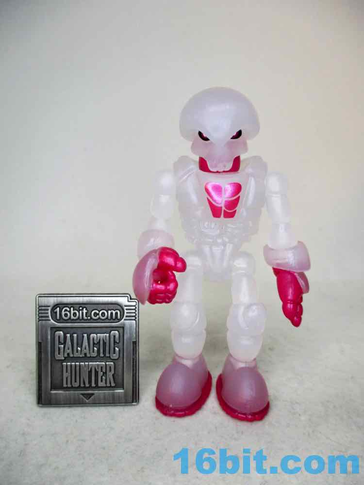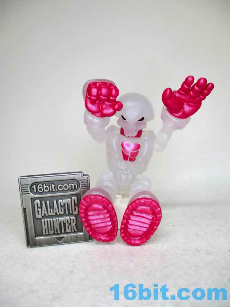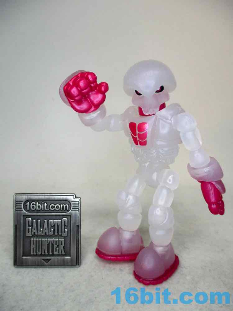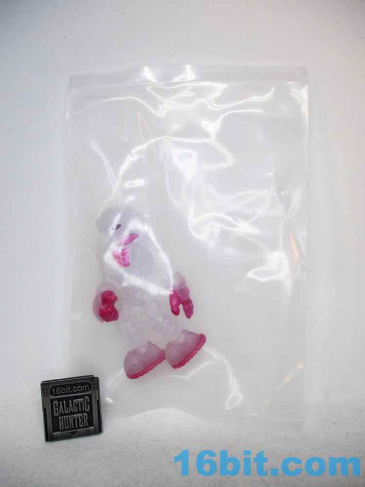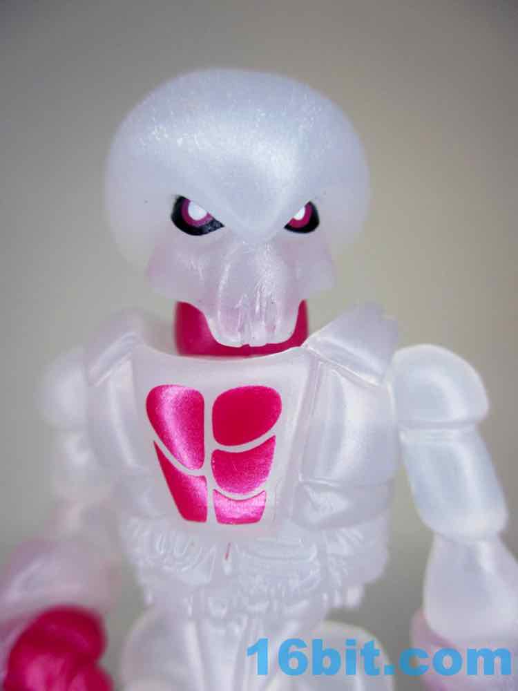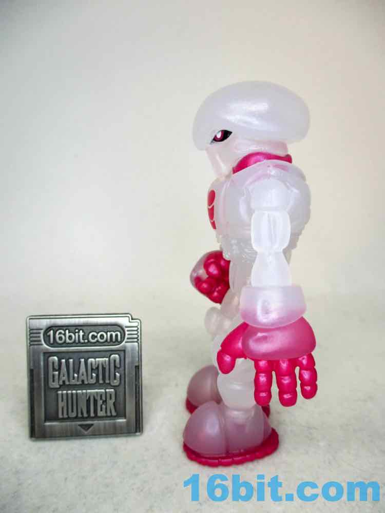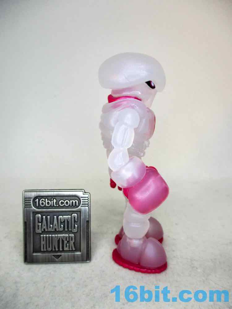 The figure reminds me of some sort of fish eggs or a frosty glass - it looks familiar and reminds me of food. What makes this one unique are metallic pink painted elements on his fingers, soles, and chest - plus the neck. It does a good job making the figure's body parts look distinct and not like one big mass of frozen milk, while allowing you to see whatever light passes through the figure. Both the paint and the plastic shine considerably well, so be sure to take it in a well-lit area at least once if you ever snag one off eBay or a trading forum.