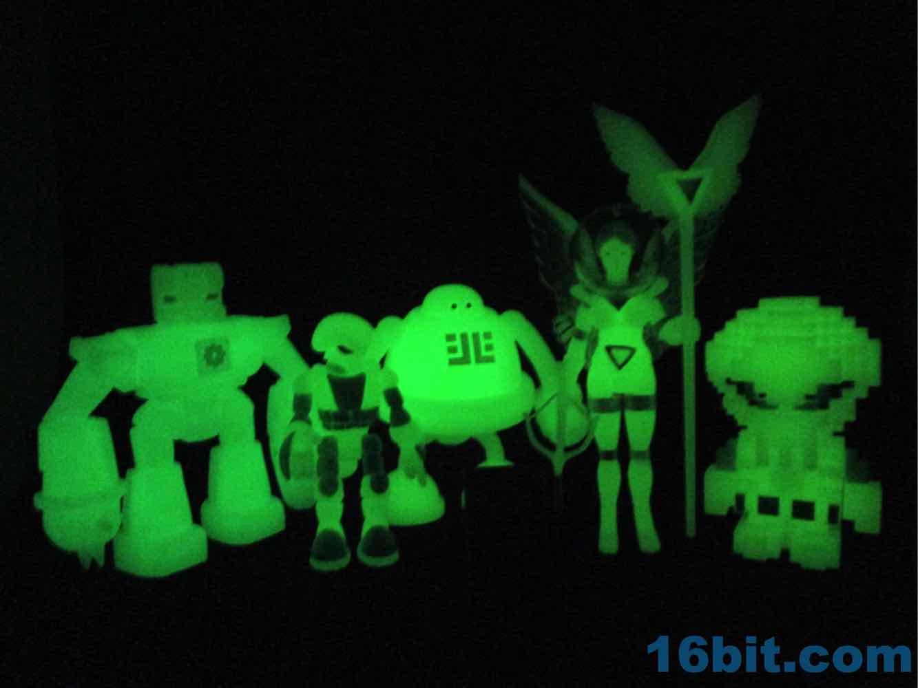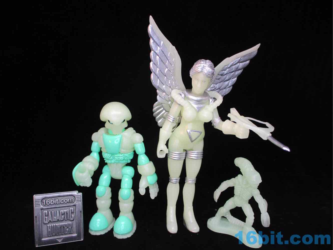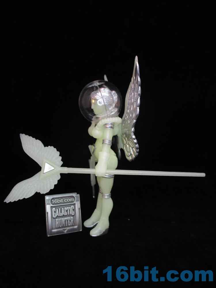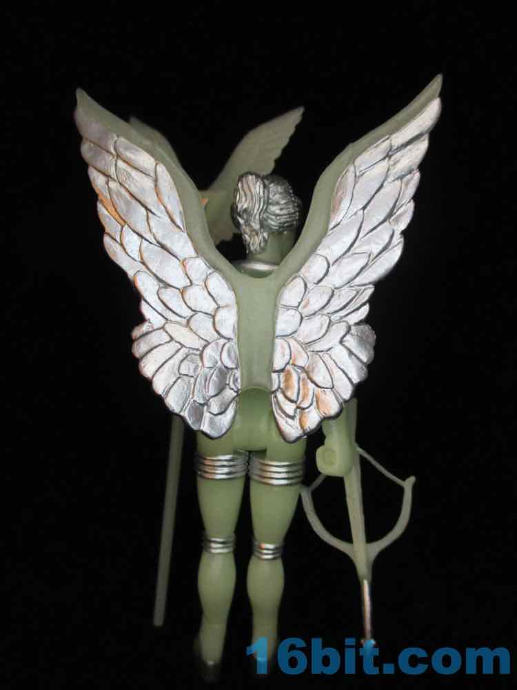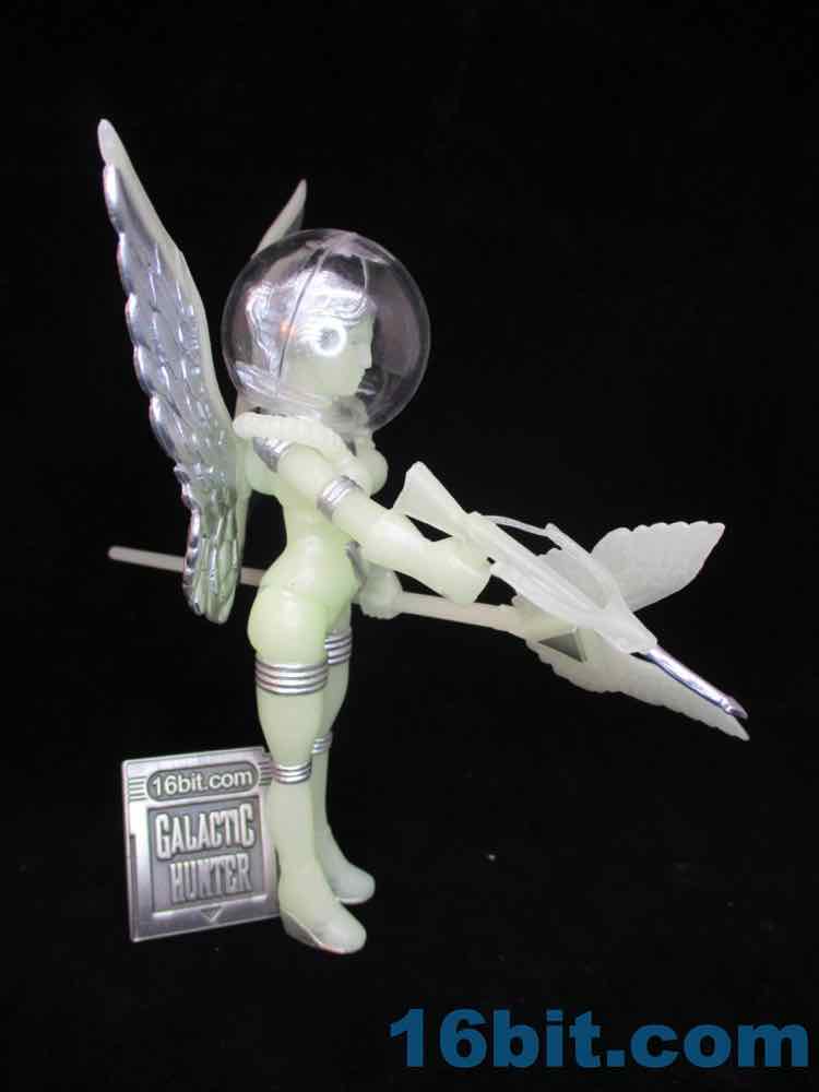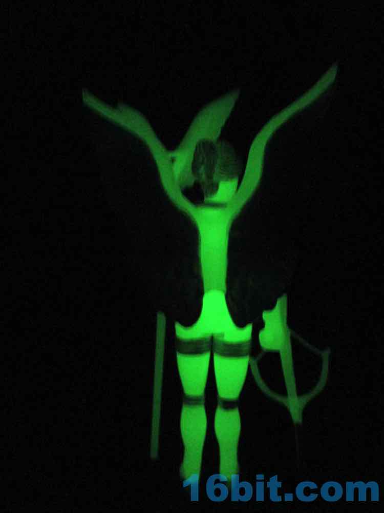 What makes this figure work is a small smattering of silver. If she were all glow, her eyes wouldn't "pop" when she glows, and the triangle on her staff would just fade into the wings. Her silver feathers look spectacular, and the crossbow is just plain glow - can't win 'em all. I like the silver "joint" bands on her arms and legs, and her proportions are consistent with those of Nixon-era men's magazines comic strips. Or so I'm told.