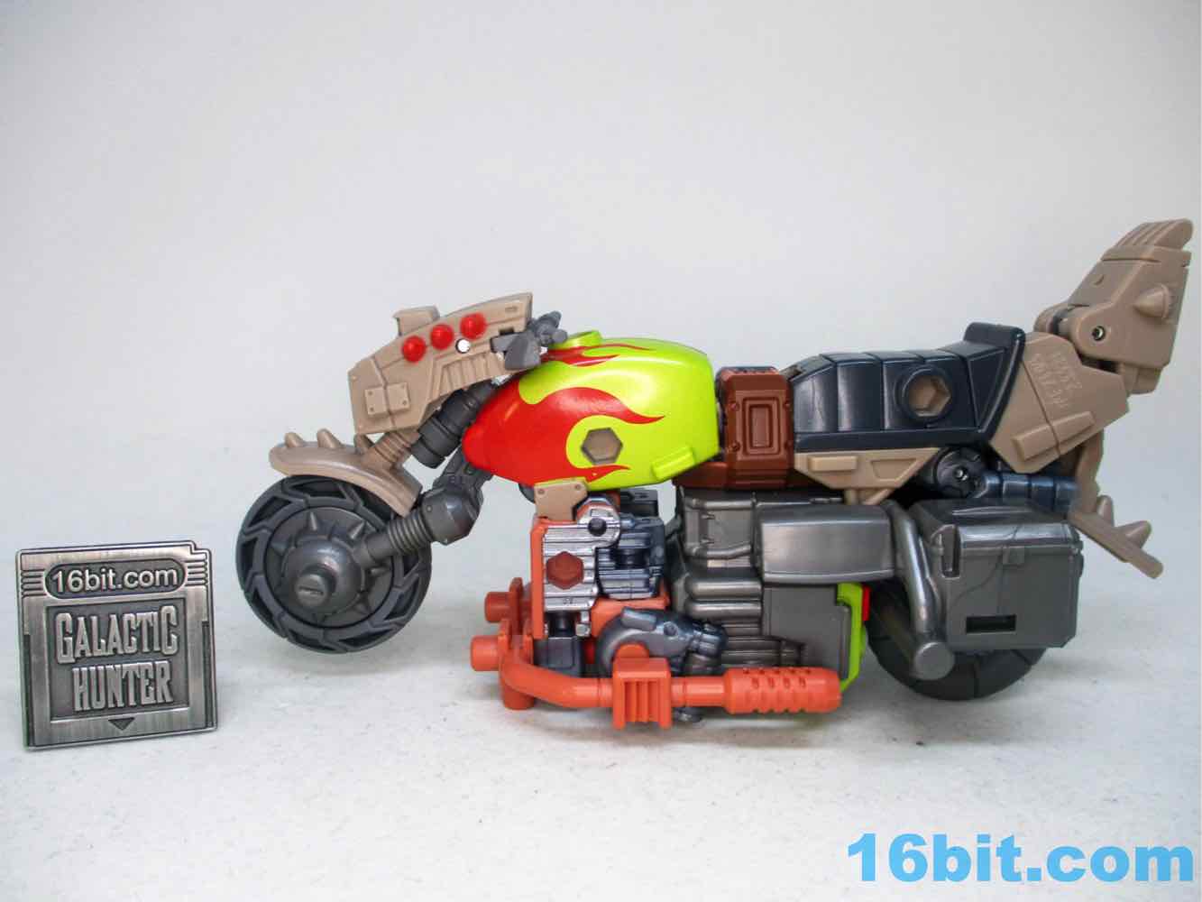 This is a fun one. Crashbar looks like a few other Junkions, and he'll fit in with any Junkion-color toys you may have. This motorcycle draws inspiration from Wreck-Gar and his ilk, particularly the 2010 version, but what's nice is this one isn't fragile. You can rotate the handlebars, and they don't snap off! How wonderful.