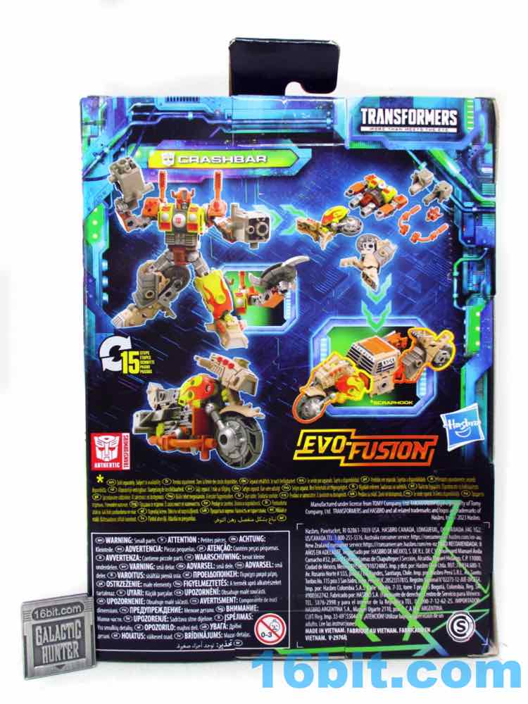 What makes this figure particularly exciting is the Evo-Fusion gimmick that lets you take apart the robot or the bike modes. You can take apart Scraphook [FOTD #2,529] in either mode and mix and match. It's sort of like Glyos meets Transformers, and unlike the previous Weaponizers/Fossilizers/etc., this one works. You can transform them without popping them apart, and you can swap limbs without having to worry about lopsided or mismatched parts. Kids would love this if it were a feature on kid-driven toys and not fan/collector-aimed guys. If you are thinking about getting Crashbar, get Scraphook - or another Legacy Evolution Junkion - to go with it.