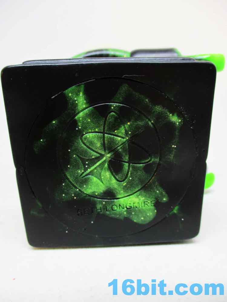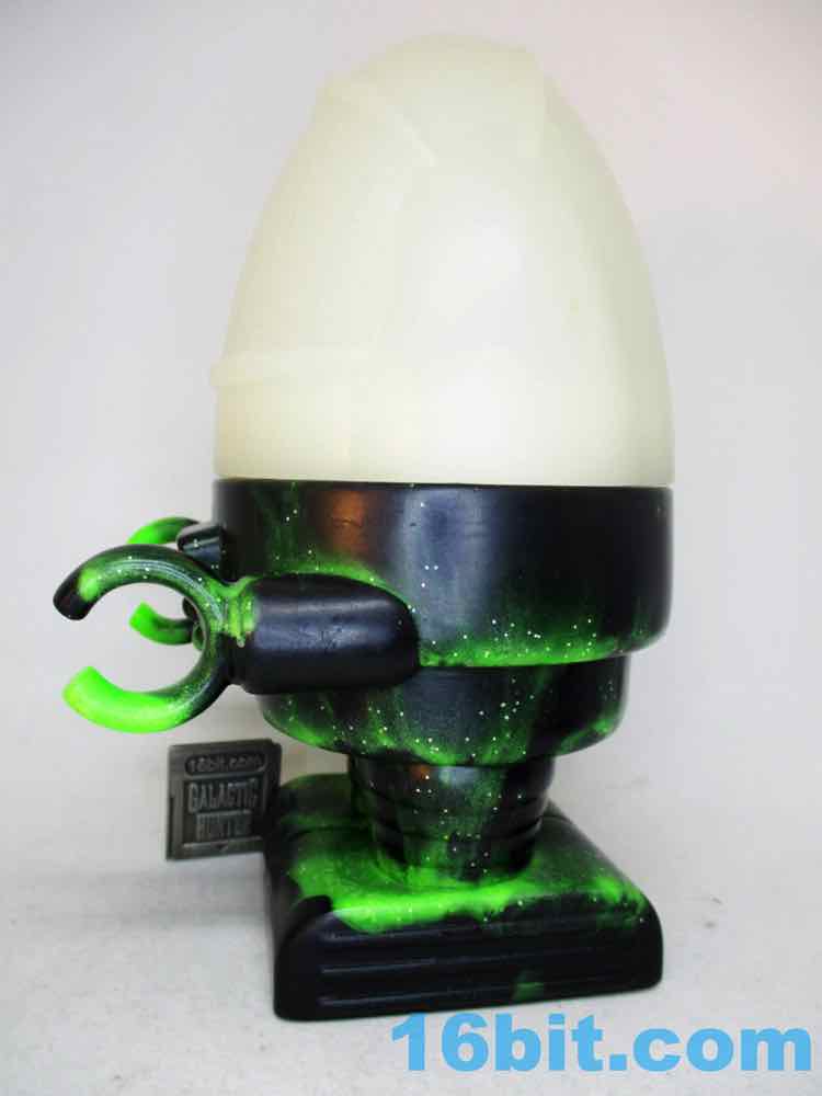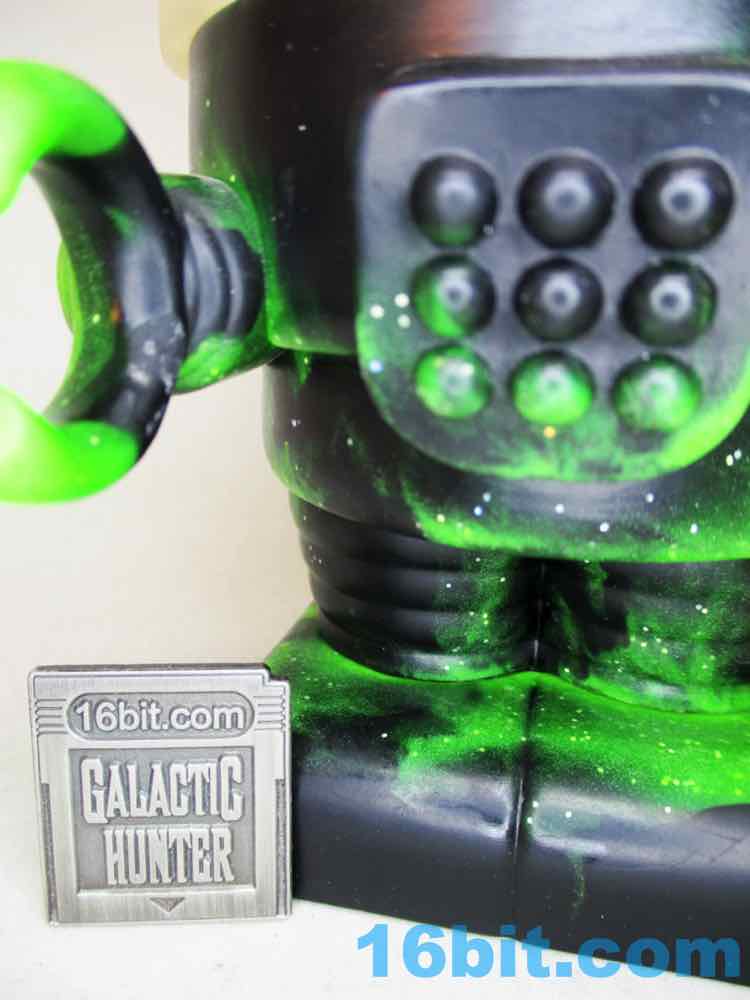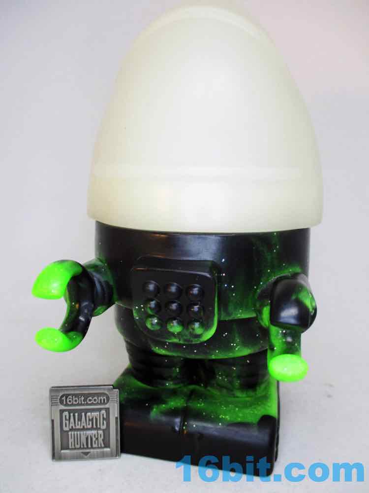 The design is great, with charming claw hands and big buttons on his chest and some legs that look like an old tin robot. But what really knocked my socks off was the swirly plastic vinyl glitter. The green has been drizzled in with little bits of glitter that look more like intricate, intentionally painted nebulae rather than some sort of ice cream topping. If you get in close the green looks like clouds of gas with glitter appearing like little stars. The "Seth Longmire" logo under the feet looks particularly great with the green and glitter in there.