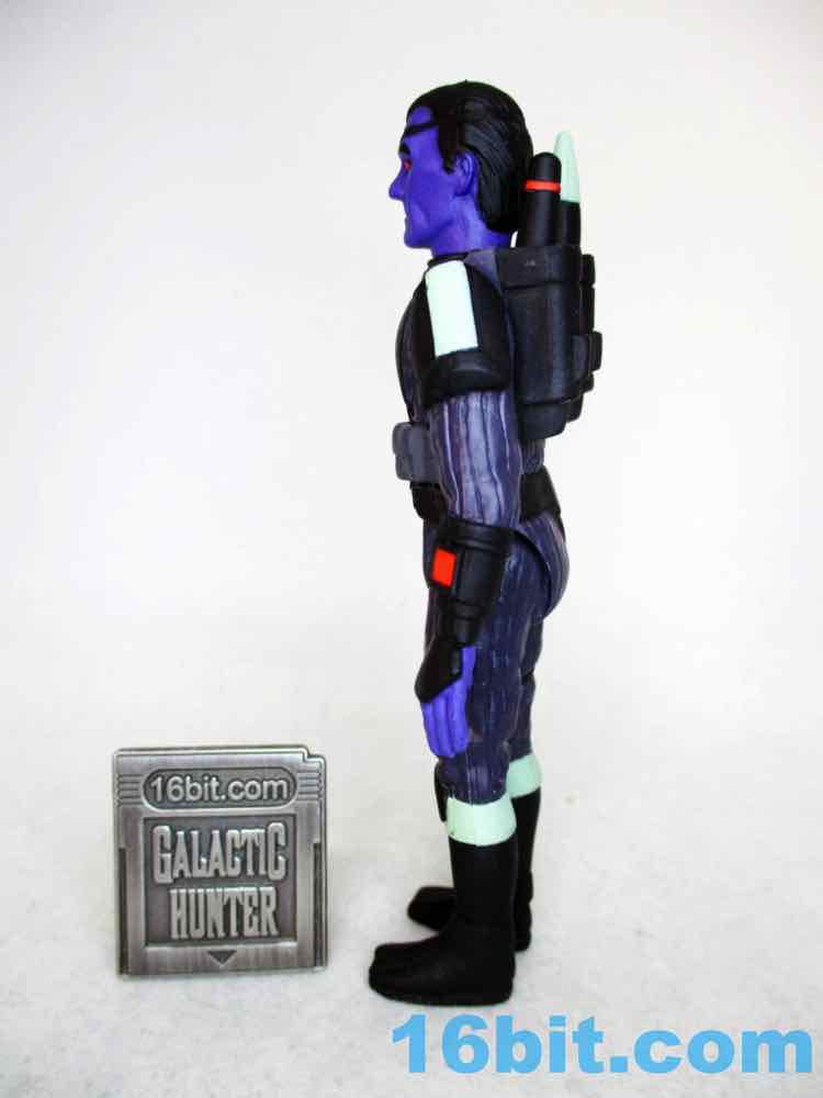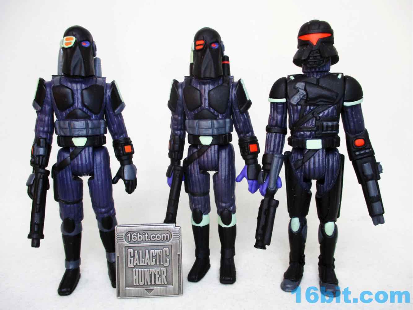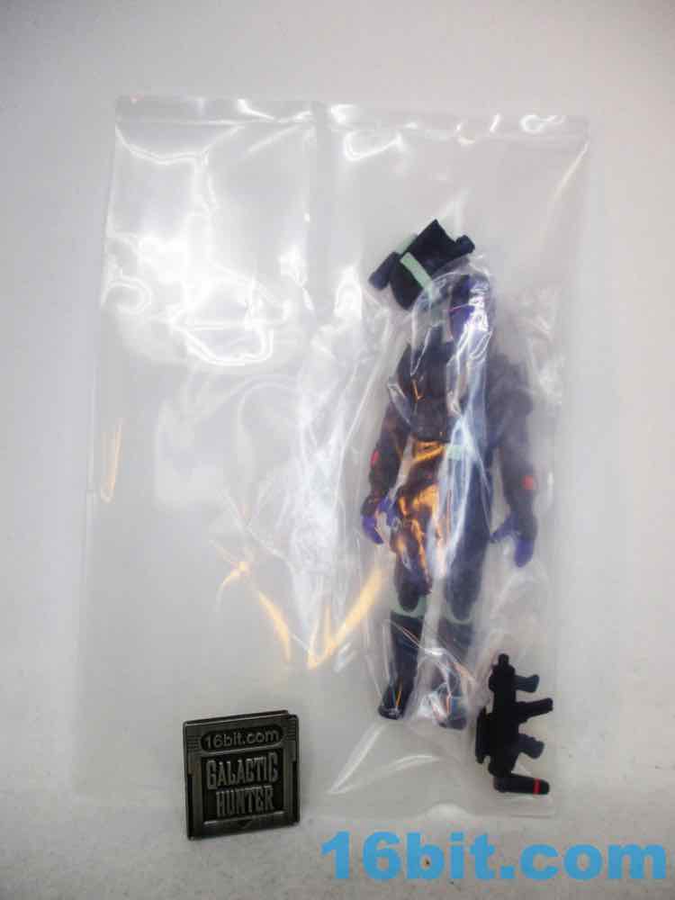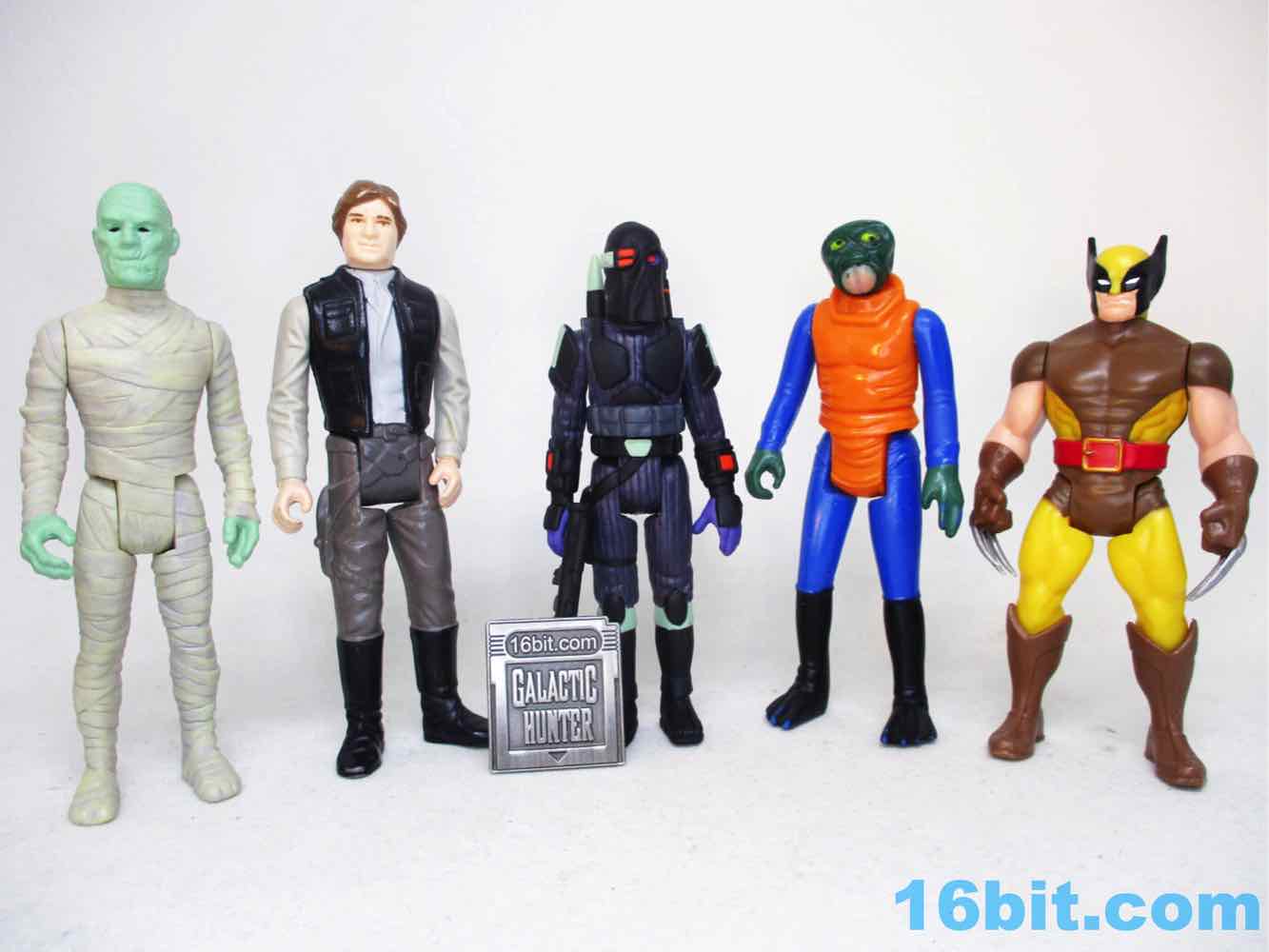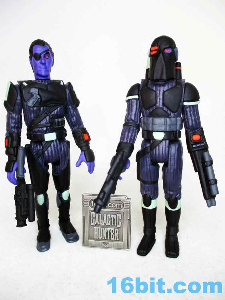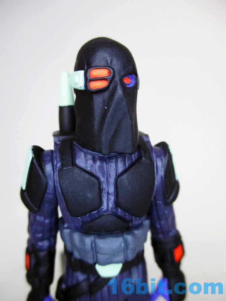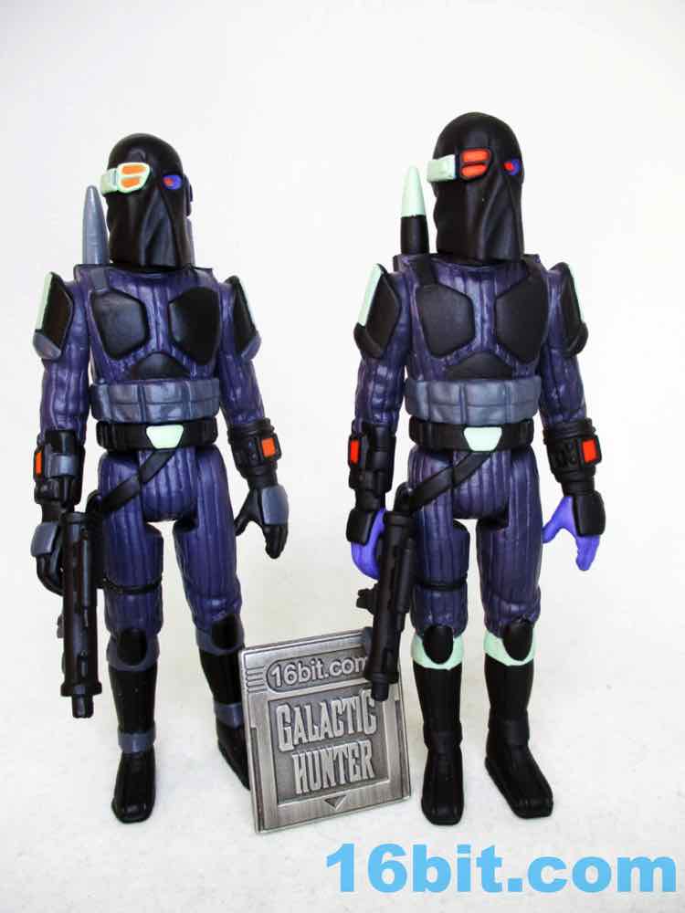 You can see a lot of Kenner-like details on this one, just like the other releases. The pants have deep lines in them like Darth Vader. The general vibe of the figure is Cobra Commander meets Boba Fett meets Peter Cushing, with some mutations - you can see what looks like a button to activate non-firing rocket launchers. If Kenner kept making toys in this style without the Star Wars license, figures like this seem like what we would have seen by the end of the 1980s. It fits perfectly in old Kenner vehicles for Star Wars toys, but the Raider was tooled without foot pegs. He won't be hanging out on display stands or playsets, but he seems to stand well without assistance.