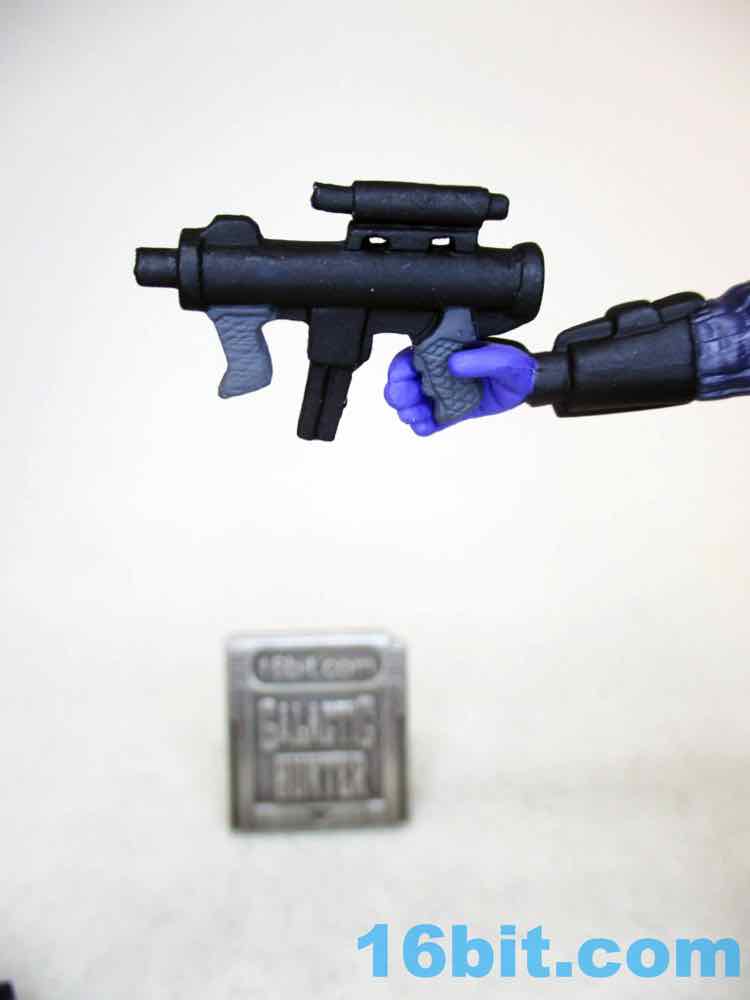 The differences are subtle, but there. The area above the boot and below the knee is painted, while the gray cuff around the bottom of the boot is now painted black. The gray on the hands, shoulders, and rockets are gone. The green on the eye piece is gone. The neon orange/red color is much brighter and sprayed a little heavier. His blaster now has gray on the grips, with recolored rockets that look a lot different - one has a green tip, the other has an orange stripe. At first glance it's the same figure, but side-by-side you can tell it's a little different. You really don't need to own both, but I'm goofy enough that I had to see the differences up close.