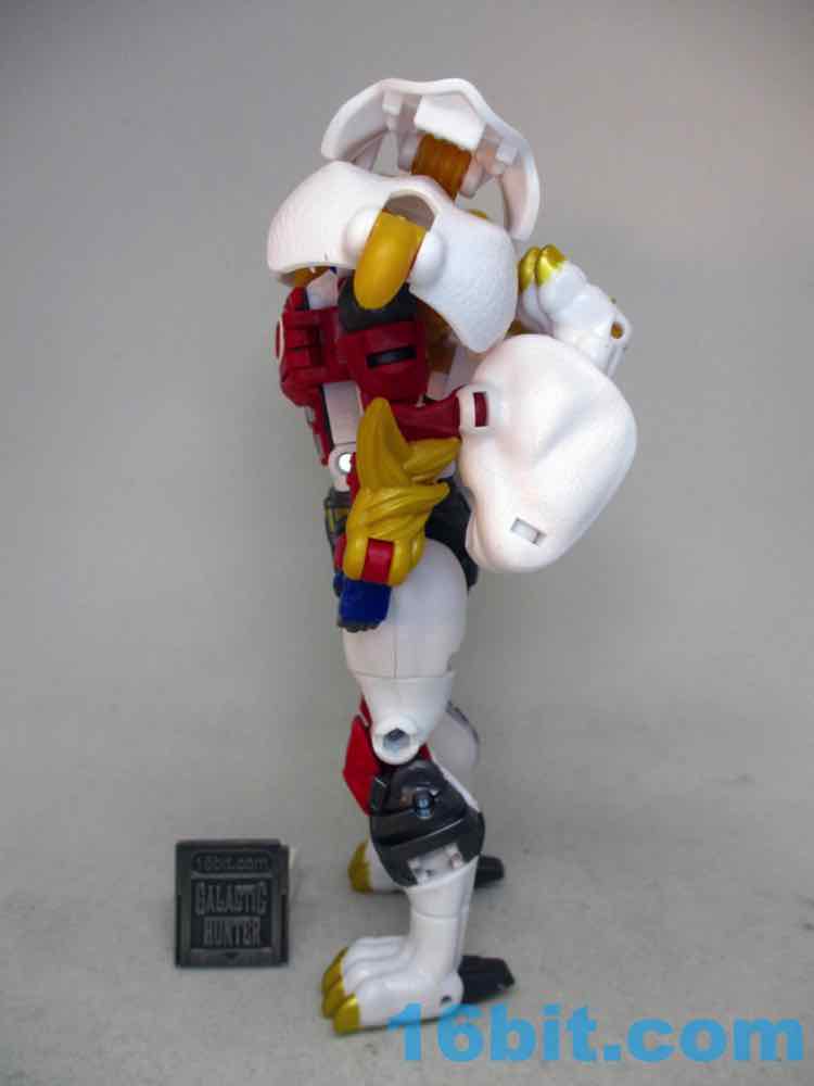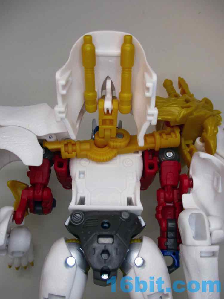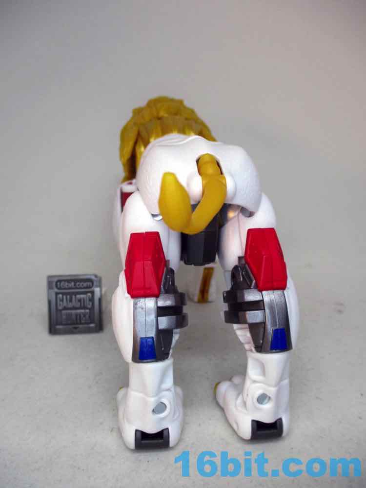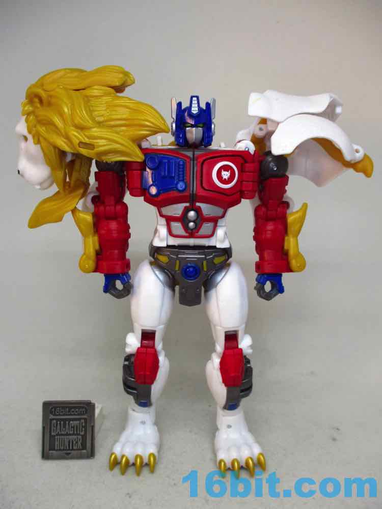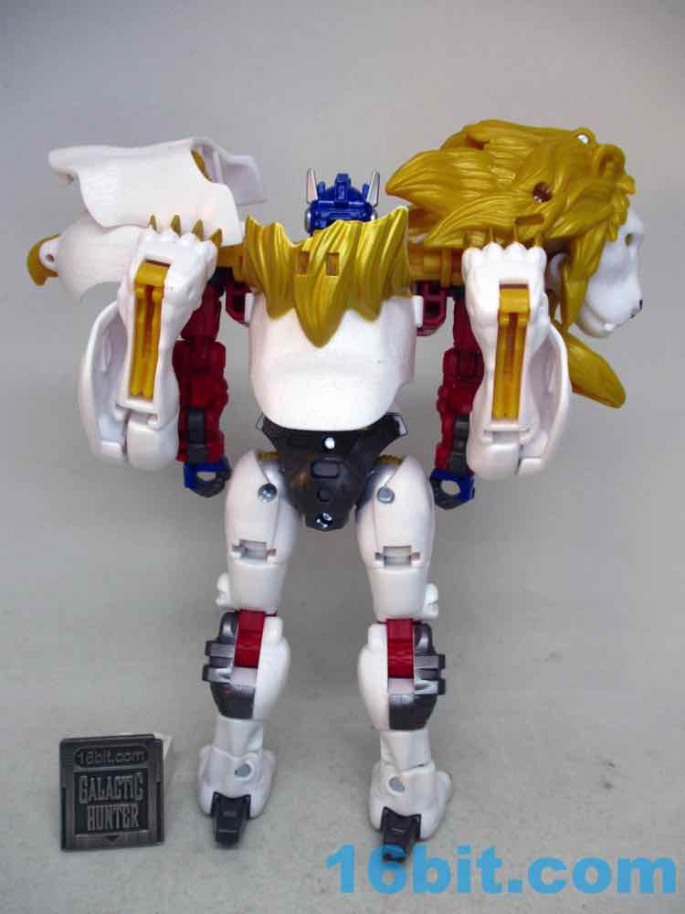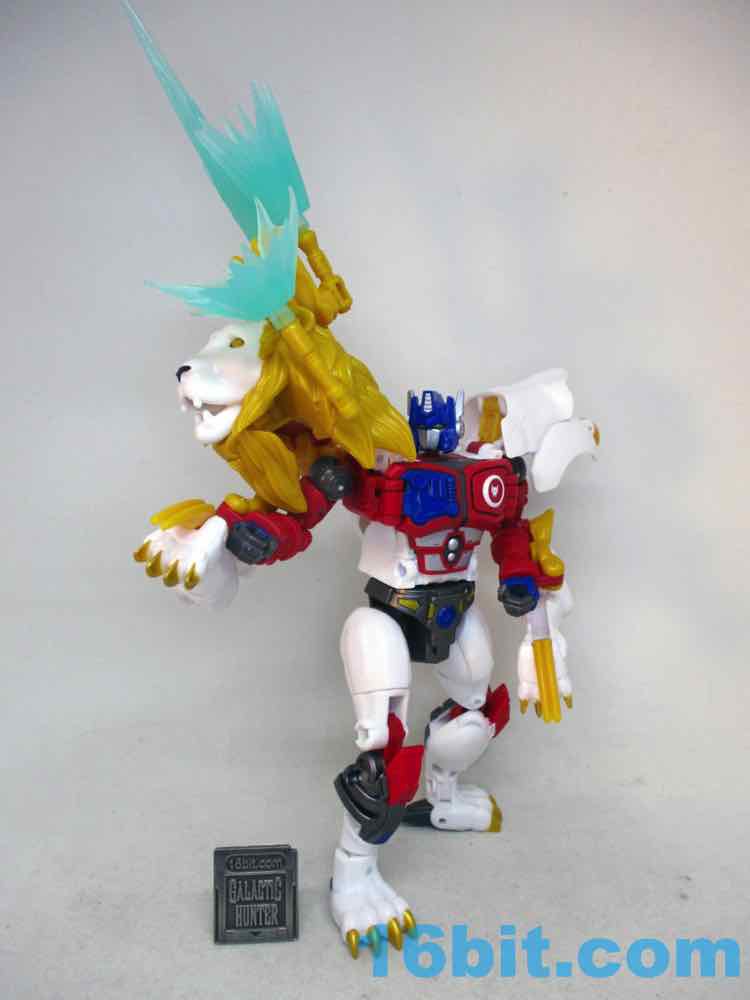 Shifting him from lion to robot or robot to lion is pretty easy. There are some marvelously clever bits, like the robot legs folding and locking in place to get a better kitty pose. It also rotates a lot of the robot kibble out of the way. The lion paws are unsightly junk hanging off the arms, and the lion's head and backside all spin around to just hang off his sides in robot mode. It does what it needs to do, but I can't help but wonder if it could be better. Could they reinvent the wheel as the transformation goes? Would it have made sense to simplify it, making the lion legs into Leo Prime's robot arms and reducing kibble? I'd like to think so. But alas, it was not meant to be.