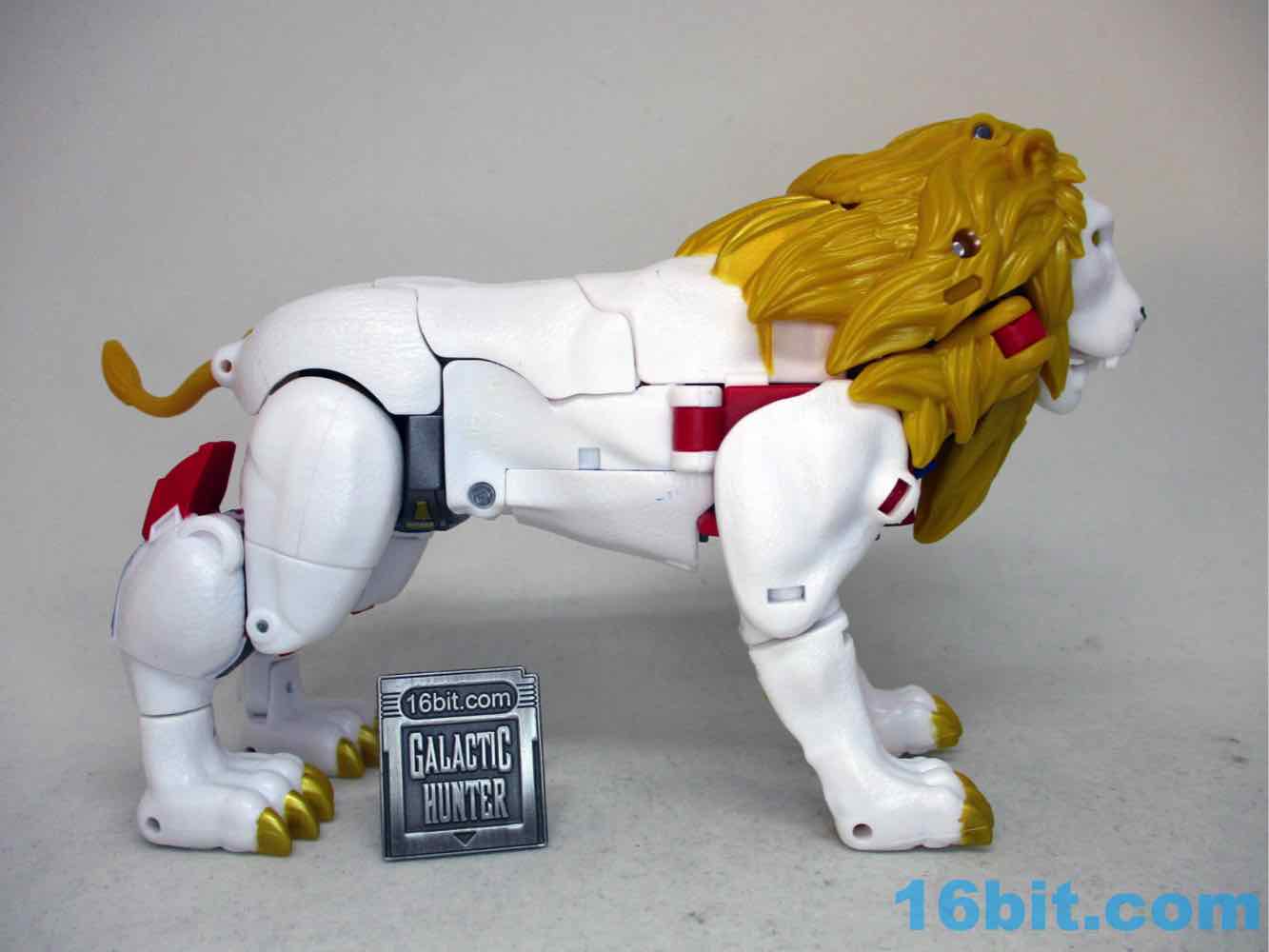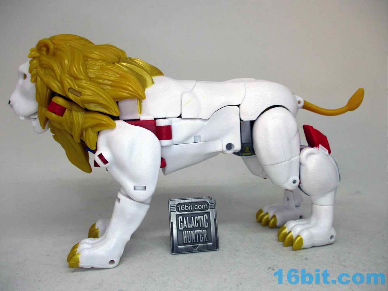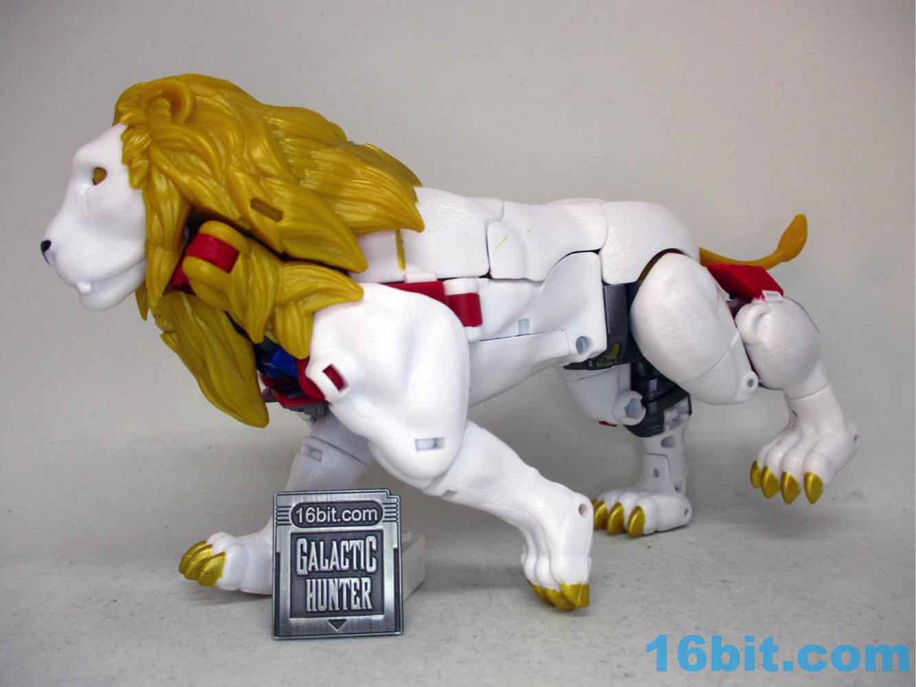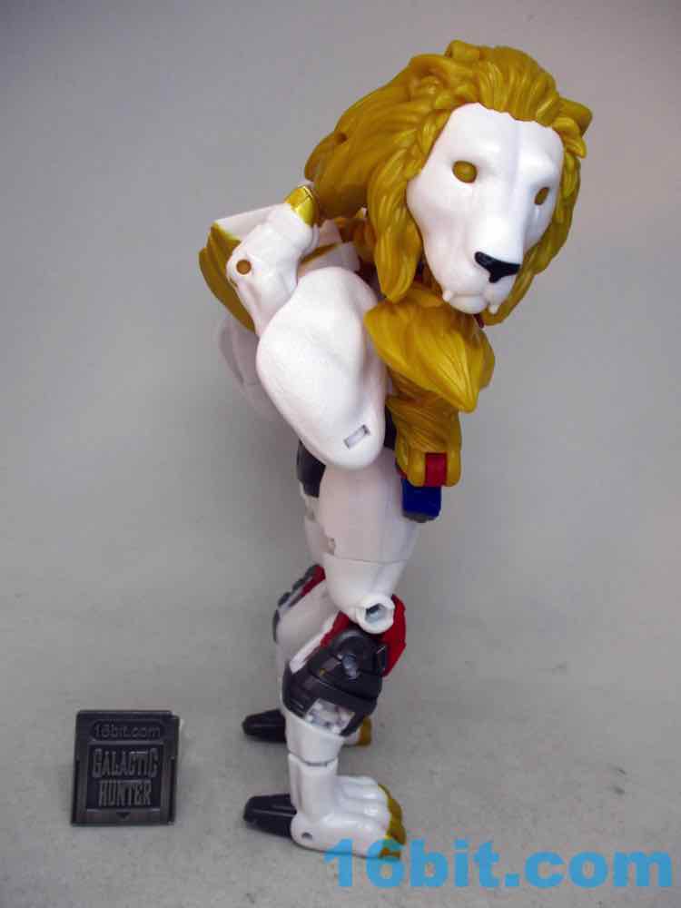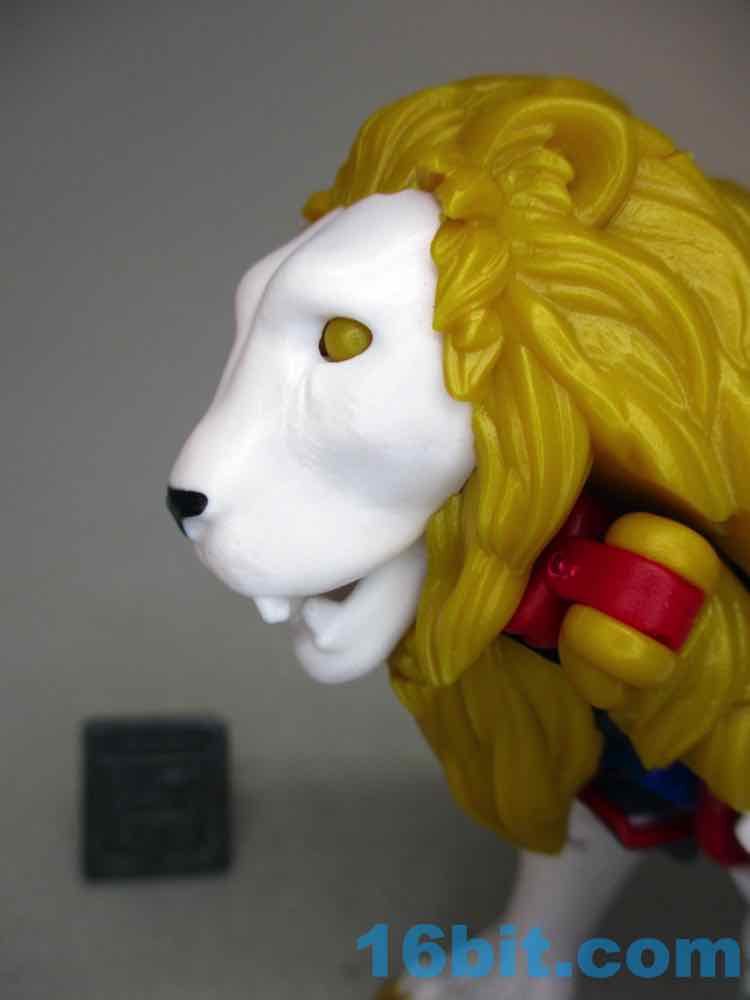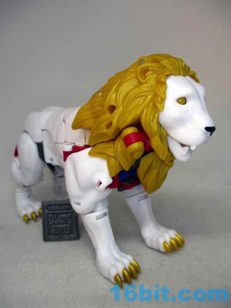 As a lion he's pretty good. Not great, as the lean mode is kind of dead-eyed without a lot of personality in the face department. The original toy had lively eyes, and it made a huge difference - it even had painted teeth and a tongue. This one has an unpainted mouth and frankly, it's just not impressive. The ears are left in the gold plastic too, but at least you get the gold kitty claws and a black lion nose. The leg articulation isn't bad, either. Sadly there's no lion mane flip-out cannon attack, although you can pose it yourself if you like.