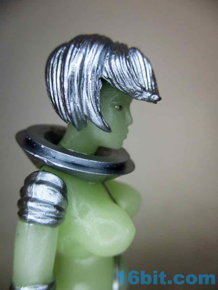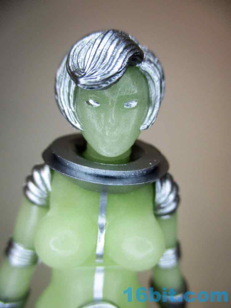 There's no real reason to be a completist with The Outer Space Men given there are two complete one-color sets of figures with the green glow Cosmic Radiation and plain white Whitestar figures... and the Bluestar group is getting pretty close to complete. As such, you don't need this particular Terra Firma when you can get two flavors of Luna Eclipse in glow plastic as well as perfectly nice Horrorscope, Ohpromatem, and Astrodite, glow figures. It's a small thing, but seeing her hair painted silver, with some strand detail underneath the coifs above her eyes, I was impressed by the Four Horsemen's sculpting work all over again. That's what I got out of this figure - if you just want more green glow guys, all the Cosmic Radiation figures shine brightly in the night. And if they were $5-$10 cheaper, I'd recommend them all to you.
