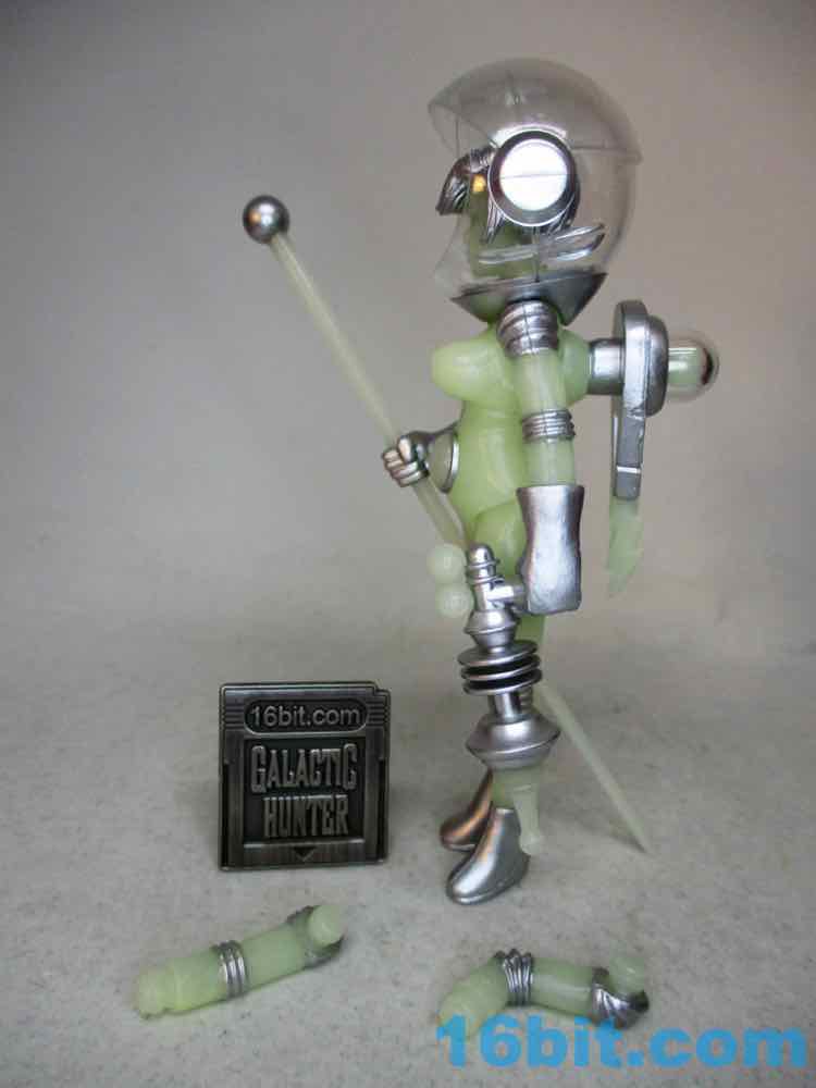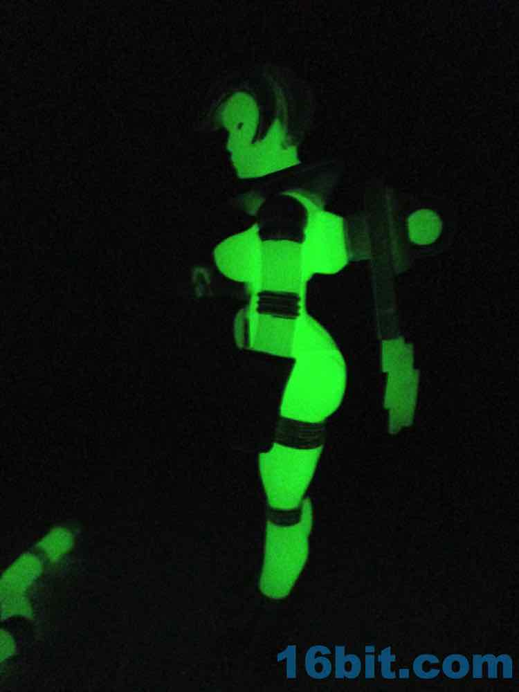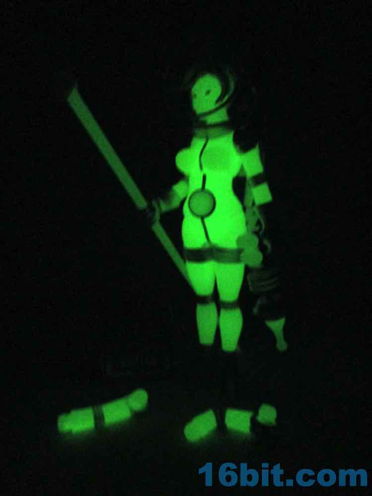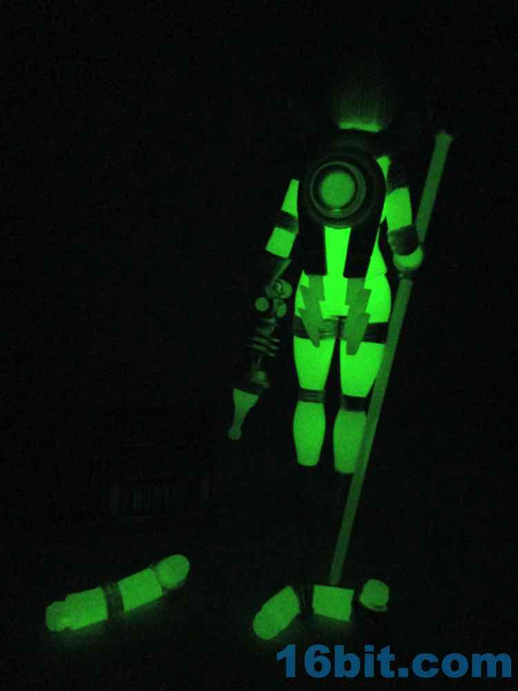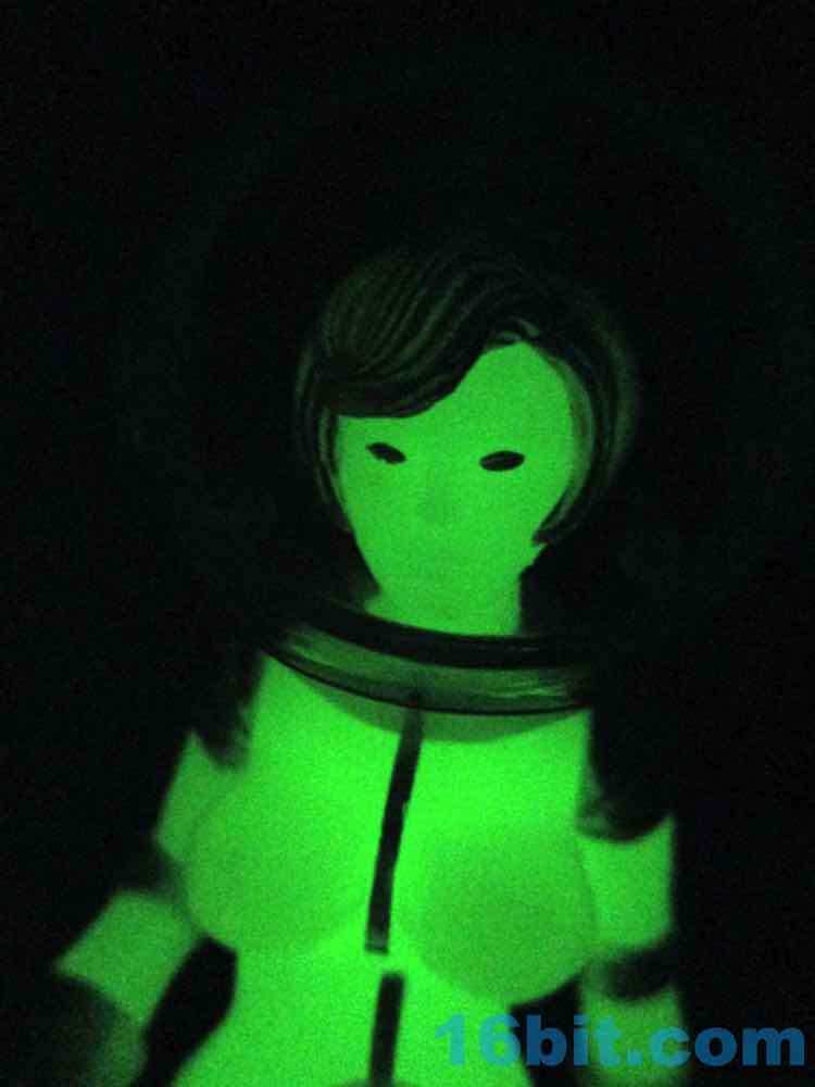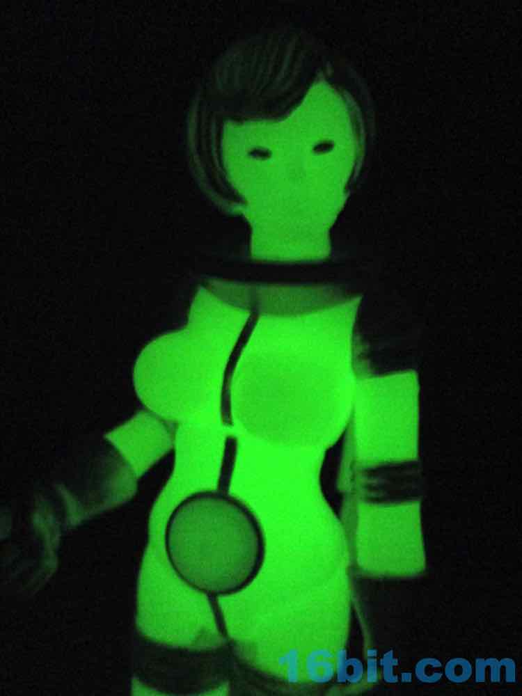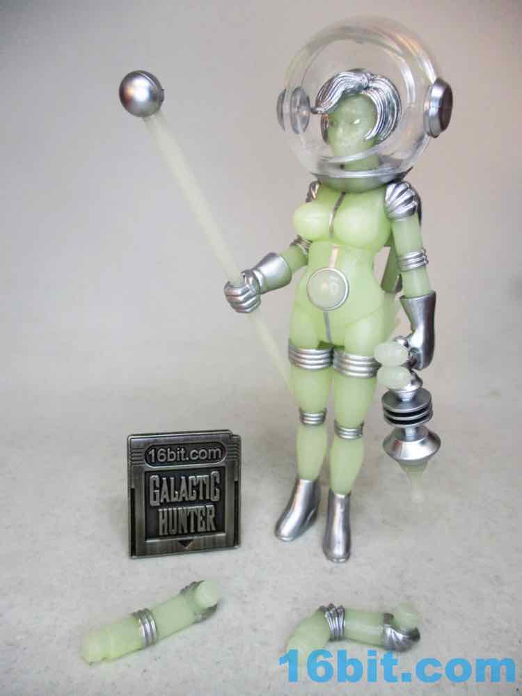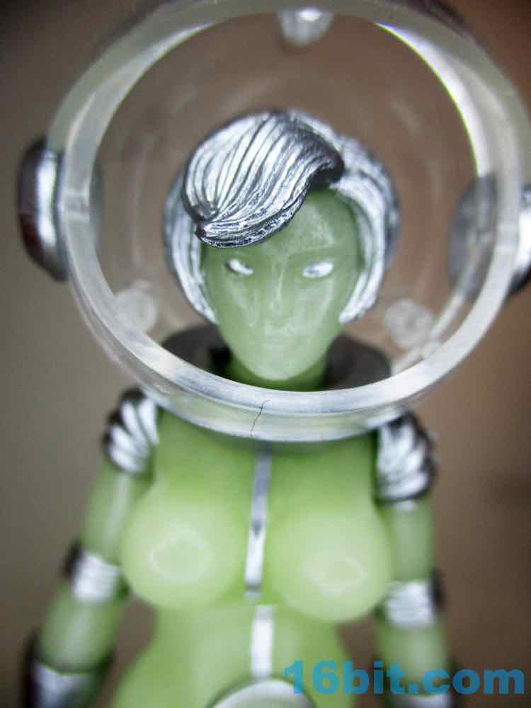 I slowed my roll reviewing the glowing The Other Space Men figures because we got a lot in short order. Too many, you might say, since she's still available for retail price and that retail price was on the higher side of things. Cosmic Radiation Terra Firma shares parts with Luna Eclipse - and functionality, there really wasn't a good reason to do both - bringing you what may well be the epitome of midcentury adventure and space fantasy during the space race. We got a really great Infinity Edition Terra Firma [FOTD #944] way back in 2014, and we've also got an orange Alpha Phase one, a white Beta Phase Whitestar figure, a couple of custom Galactic Holiday figures, and I assume a complete run of unreleased Bluestar Terra Firma sitting in a storage space somewhere in New York as I write this.