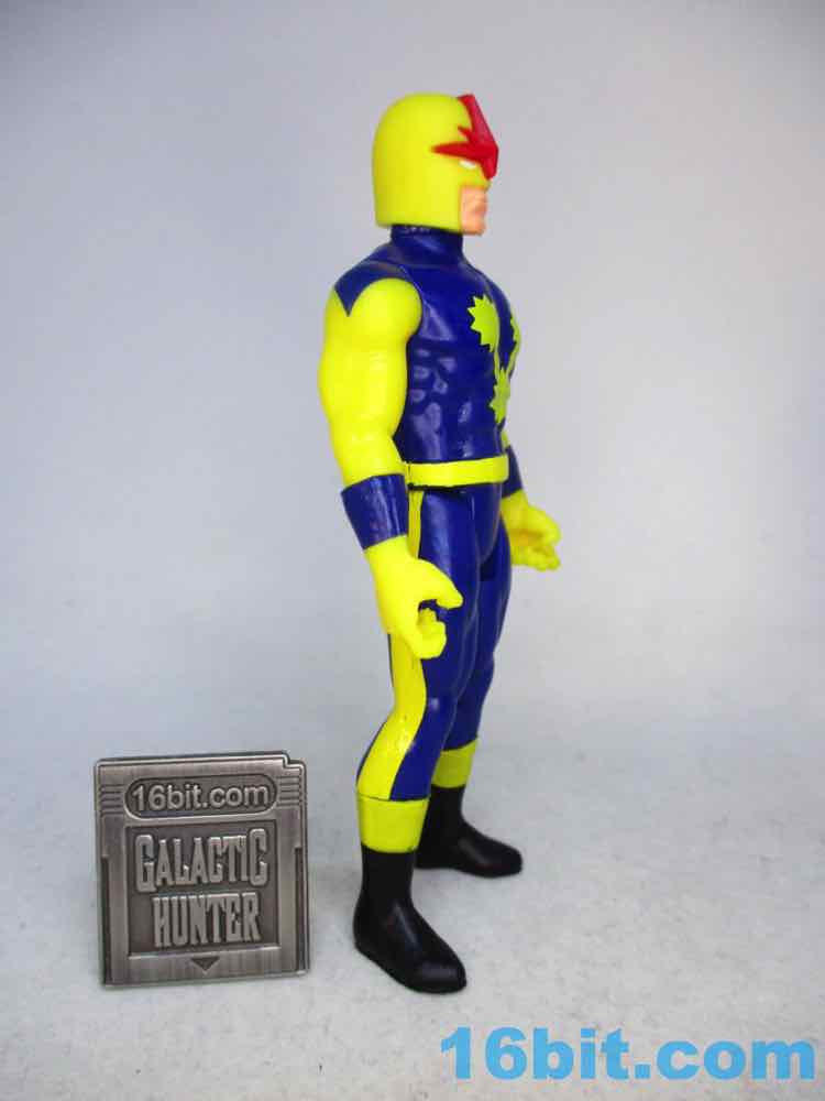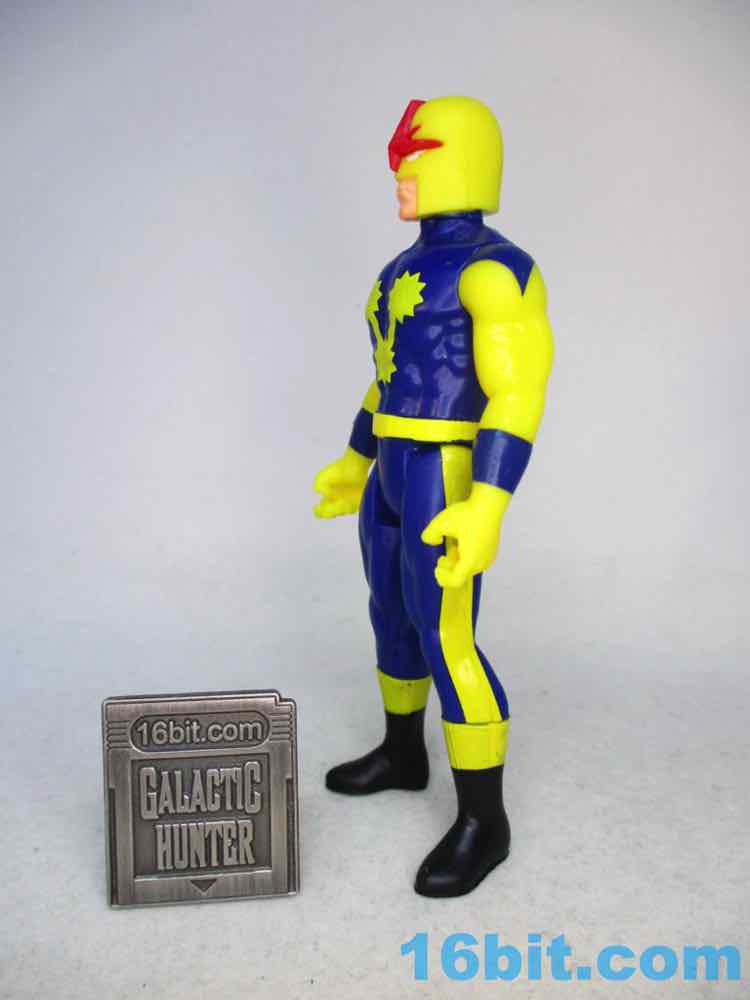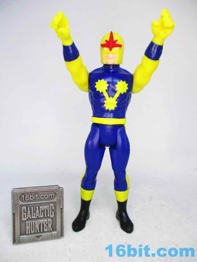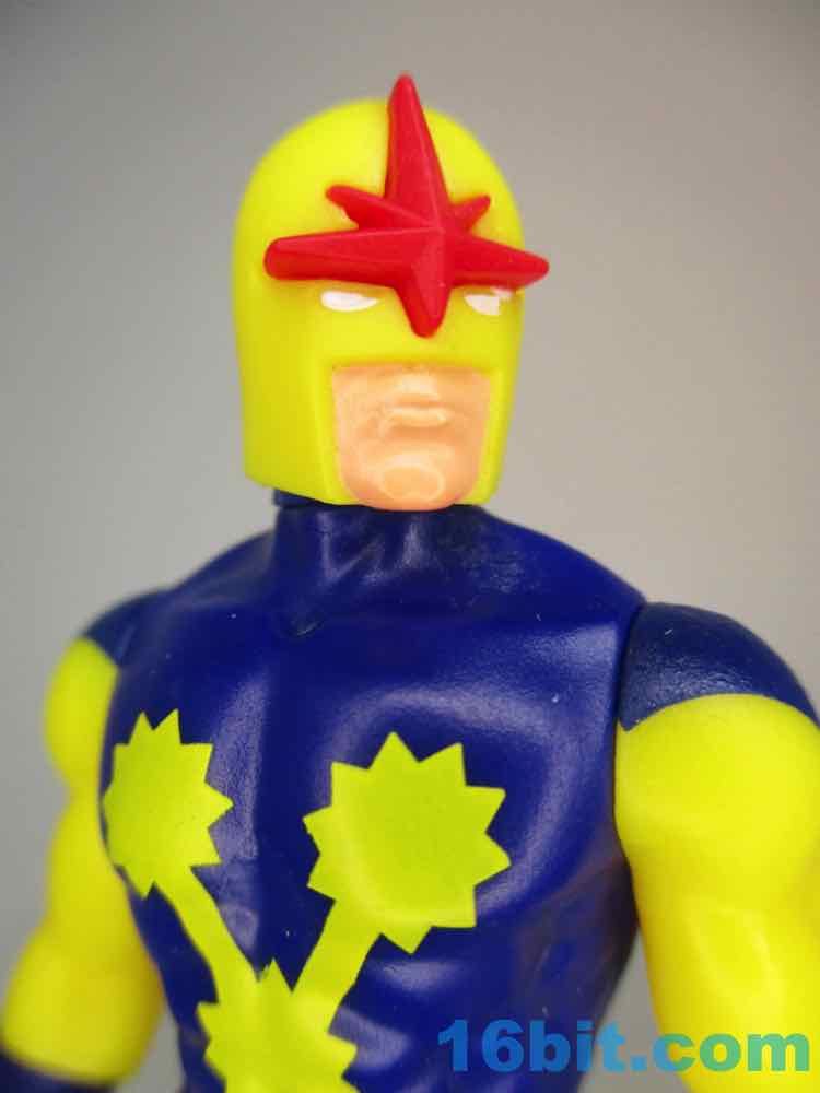 The new head sculpt is pretty good - not as dynamic as the picture, but he's got the right colors and the big red star on it. It's fine - I wouldn't say it's amazing, but the red, yellow, and blue look nice and it feels like an honest replica of an ideal old action figure. As with the others, he has seven joints and has no problems standing or sitting. They're pushing what they can do with a basic buck, and this is one of those figures where it shows - his costume literally is painted-on. There's no sculpted armor other than the helmet.