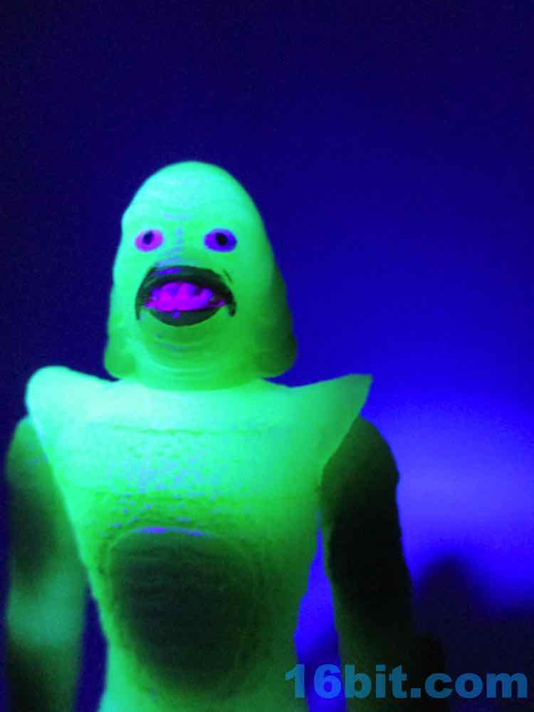 It would be easy to just cast the figure in glow plastic and call it a day - but they didn't. This figure has more in common with some of the better designer sofubi deco, which is kind of a magic trick. For whatever reason, it is expensive and looks cheap - but I can't argue with the results. This looks sort of like a real old toy, despite the fact none of my old action figures looked quite like it. Maybe some of my dinosaurs did, though.