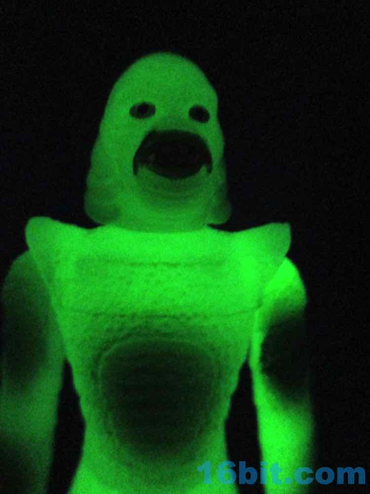 The sculptor did a great job here. This was a low-run exclusive that as of my writing this, sadly, did not yet sell through. And that's a shame! I'm taking notes on this one because whoever sculpted it should be hired to do more creature and monster figures. Whoever painted it set a high bar - so many glow figures have just painted eyes or very limited details. This time, they made a decision to fully paint the mouth's interior complete with lips and teeth. The eyes are also fully painted, with the whites around them and a subtle spray on the gills to bring that out a bit.