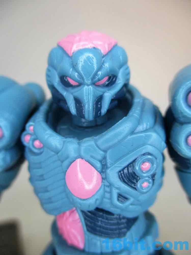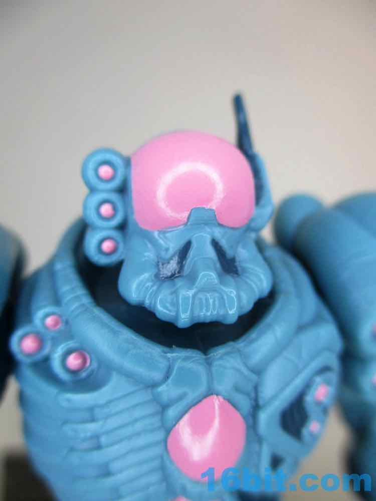 The level of detail is beyond anything else we've seen from the Glyos factory. Not only are there lights and vents and little veiny things, but there are tons of tiny cracks all over. It's seen some rough times, and I assume a deluxe painted version for twice the price is coming. If not, customizers will do it. The paint is well done, but you don't need me to tell you that. Glyos factory paint is always really good, and the pinks and blues pop well.