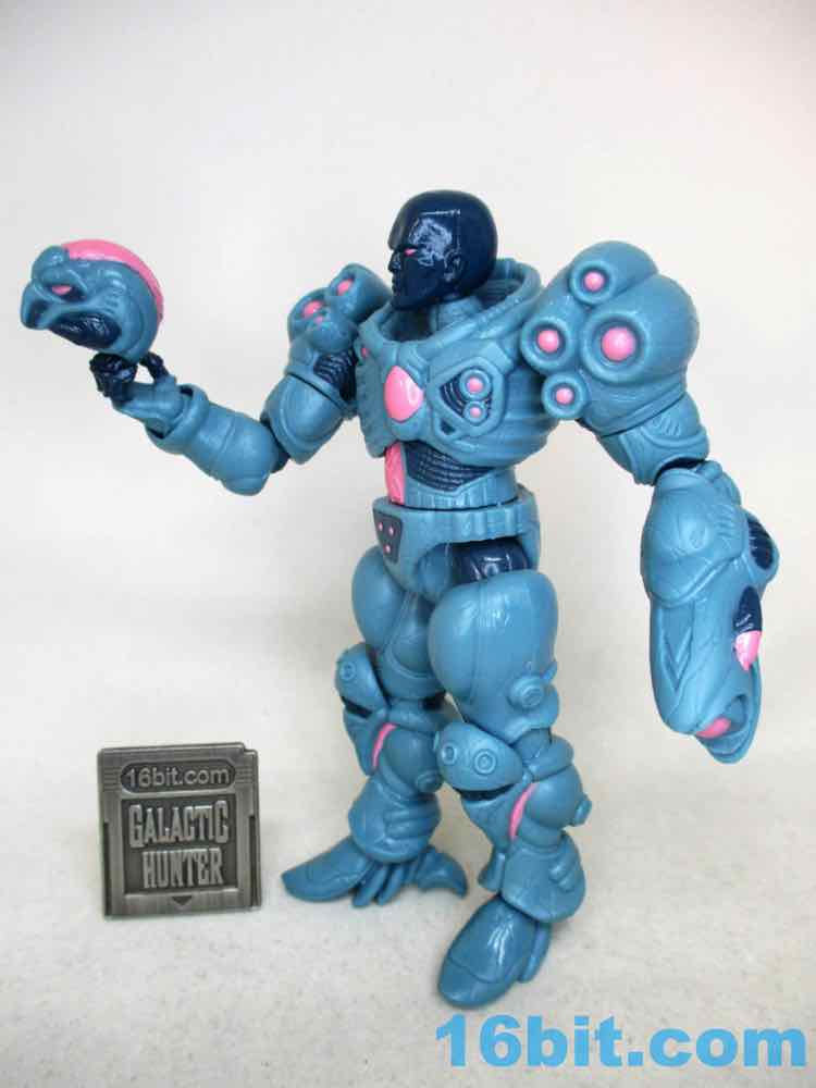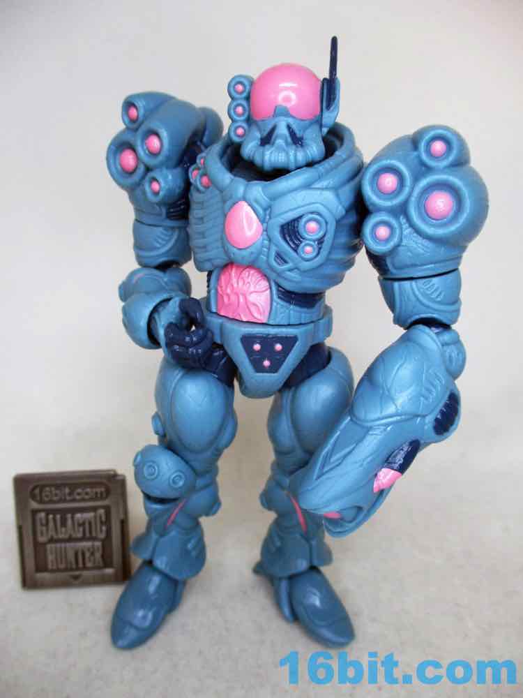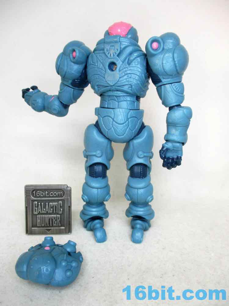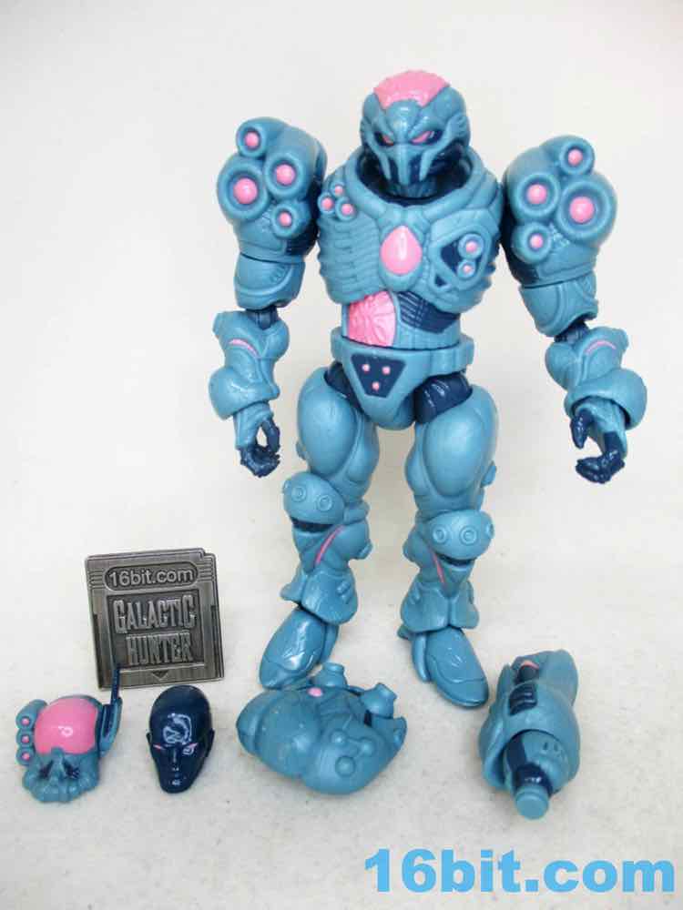 For good and bad, it's a lot like a modern Hasbro figure. You can swing the legs forward, but it might still be too chunky to sit in most ships. When you bend the knees, there's a visible, darker disc joint. It can be easy to pop off an arm. However, it stands much more easily than most Hasbro figures, thanks to big feet and overall smoother joints. It compares nicely to (even better than) the similarly priced and recently released Krrsantan figure, but the Gauss hasn't yet fallen over. Further, he can hold other accessories (not included) in his large hands or swap one out for the blaster arm. They definitely drew a little inspiration from Metroid, and it's nice to see that as one of the elements borrowed. You even get an unmasked head and a more robotic head if that's what you need. The backpack has a switch pin in it, and also looks superb.