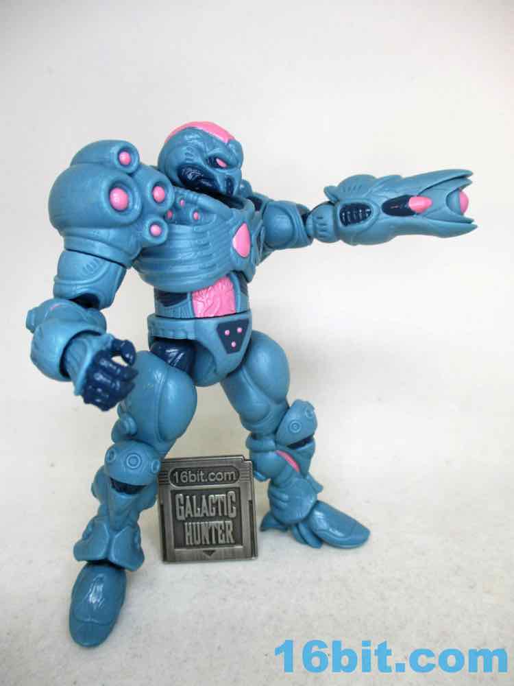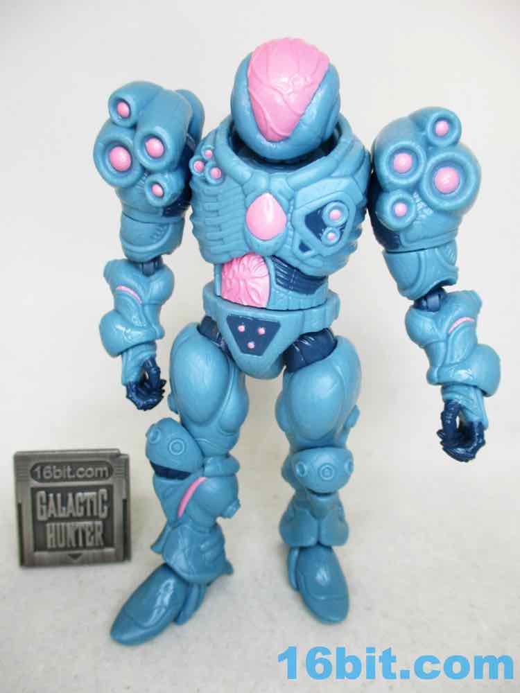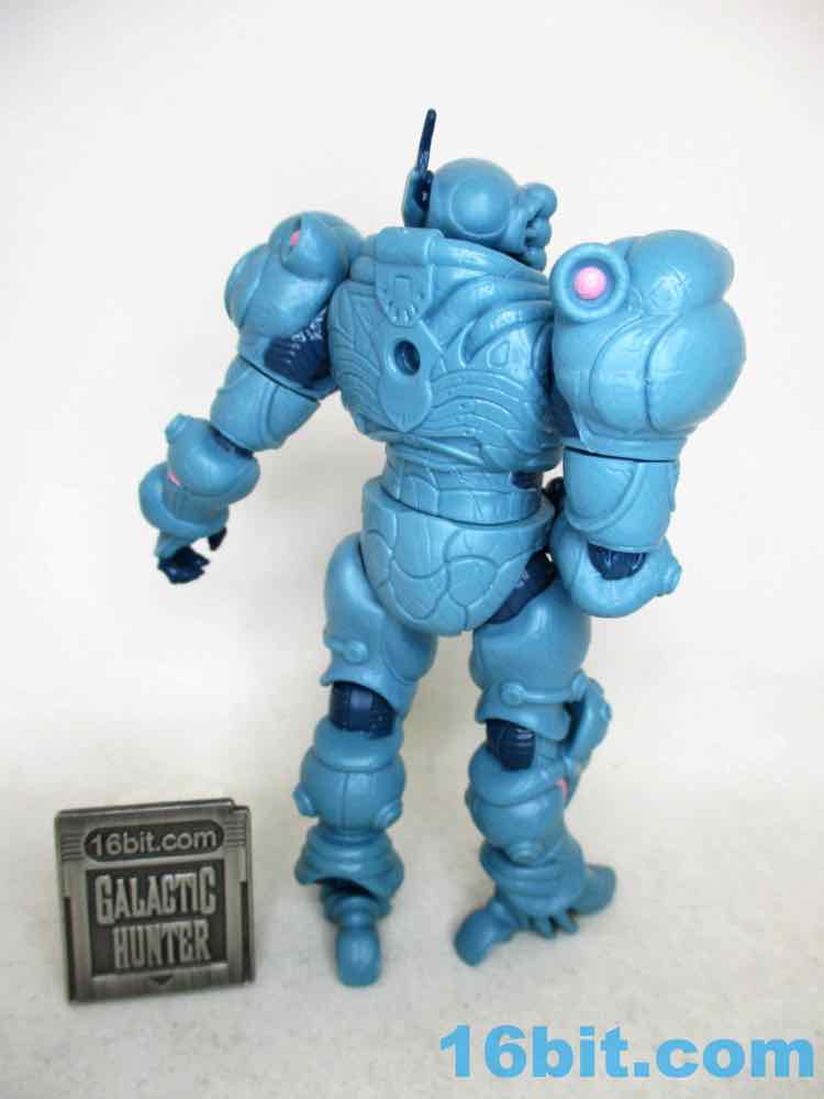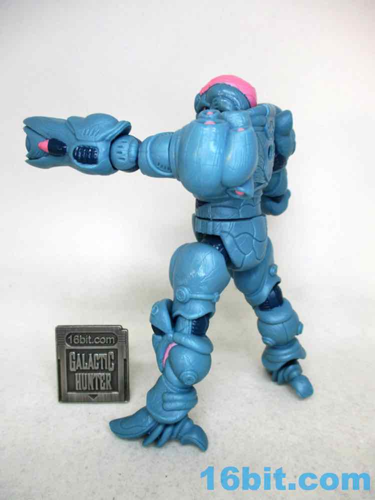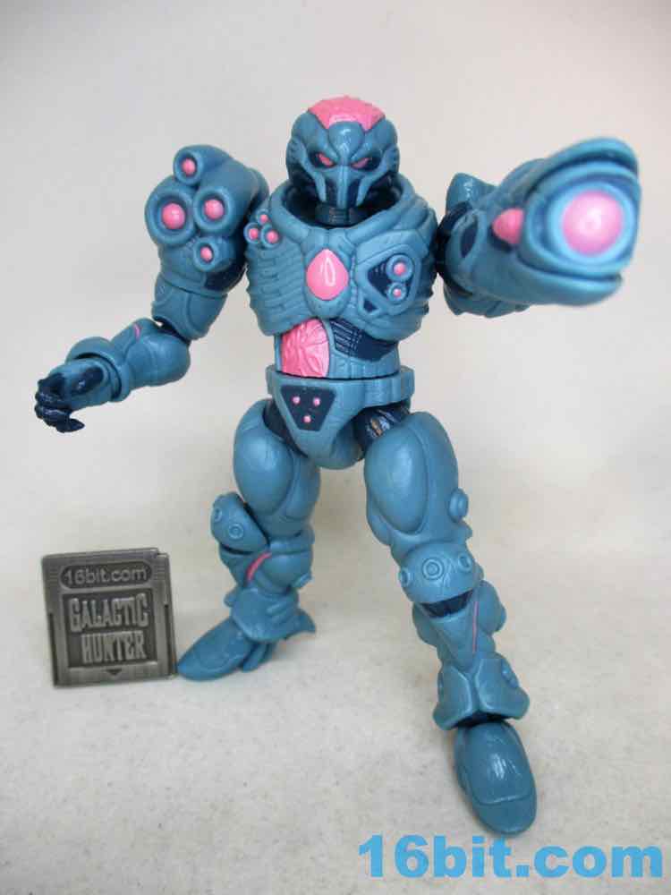 For good and bad, it's a lot like a modern Hasbro figure. You can swing the legs forward, but it might still be too chunky to sit in most ships. When you bend the knees, there's a visible, darker disc joint. It can be easy to pop off an arm. However, it stands much more easily than most Hasbro figures, thanks to big feet and overall smoother joints. It compares nicely to (even better than) the similarly priced and recently released Krrsantan figure, but the Gauss hasn't yet fallen over. Further, he can hold other accessories (not included) in his large hands or swap one out for the blaster arm. They definitely drew a little inspiration from Metroid, and it's nice to see that as one of the elements borrowed. You even get an unmasked head and a more robotic head if that's what you need. The backpack has a switch pin in it, and also looks superb.