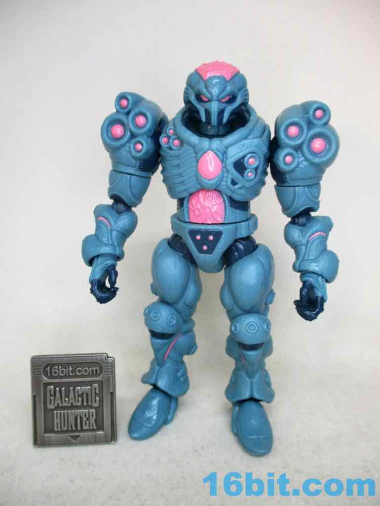 You get a lot in the set - 26 parts, and you can yank it apart to mix and match with some other figures. You can see a lot of ideas in here, with things we typically don't get in Glyos like rocker ankles. The shoulder disc joints are a little stiff, but the thing is you get actual lateral movement. The hips can swivel and bend out, the wrists rotate, this seems like the very best Glyos figure we've ever seen. Also, he's only 4-inches tall - so your Manglord and Cyclops and Colossus Rex will still tower over this armored being from beyond.