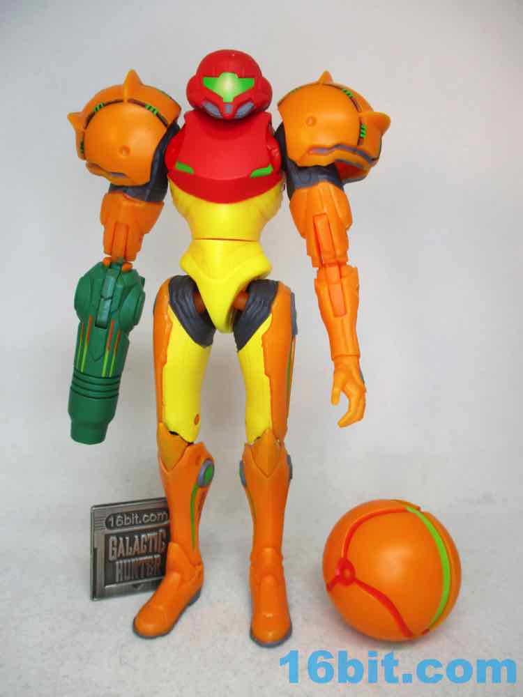 The figure comes complete with a "Morph Ball" mode figure/accessory, completing what looks to me like a Metroid Prime suit in Super Metroid colors. Maybe some day we'll get another figure specific to the retro versions of the suit, but probably not given the adherence to style guides in our increasingly conformist era of toy production. Although I guess that contradicts what this is, given the traditionally metallic and mostly gold figure has been released in incredibly bright yellow, red, and orange colors.