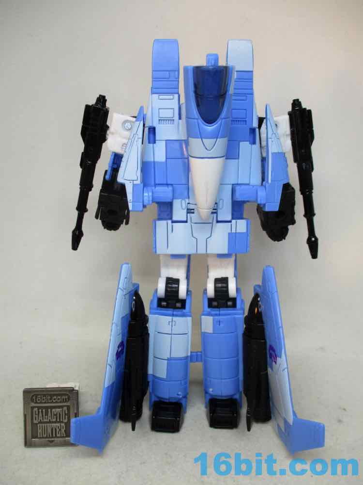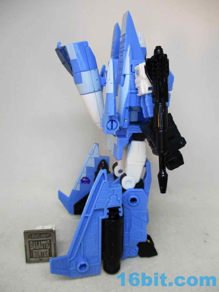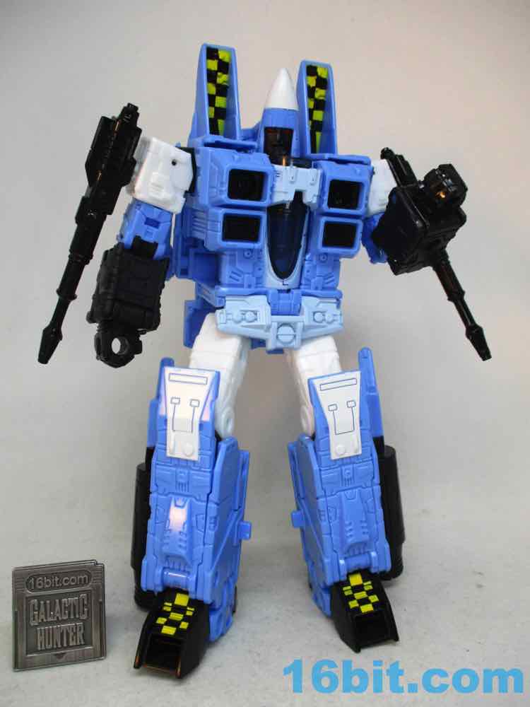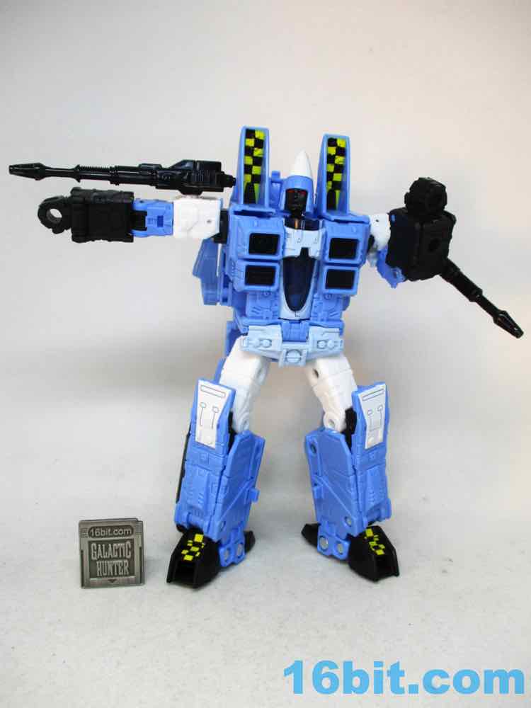 Transforming the figure is a breeze. The wrists are a little complicated but otherwise it's similar to the Classics Seekers, and more importantly, exactly like the Earthrise ones. You've probably transformed multiple extrusions of this mold enough times to do it in your sleep - but if not, the robot shins open and engulf the robot thighs. The chest opens to cram in the robot head, and arms after you open the forearms to shove them down. And then you get a nice jet and you don't throw a fit. Or get upset.