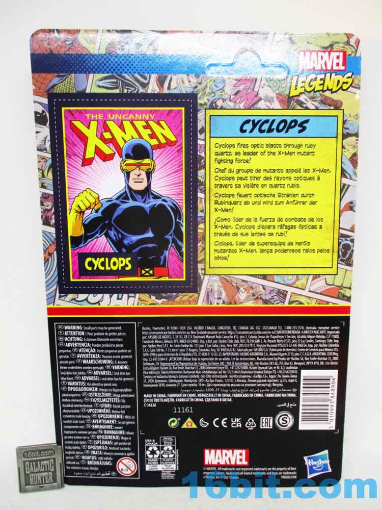 Scott uses the "wide body" which was used for Captain America, Loki, Falcon, Black Panther, and others. That means he has a peg hole in his back. The figure has the red belt, the yellow "X" buckle, the yellow boots with a little more meat on the top, and the yellow gloves. The colors match up nicely, and he has his trademark visor. Aside from the swivel wrists and separately-molded shoes, I'd say this is extremely convincing as a retro-style action figure.