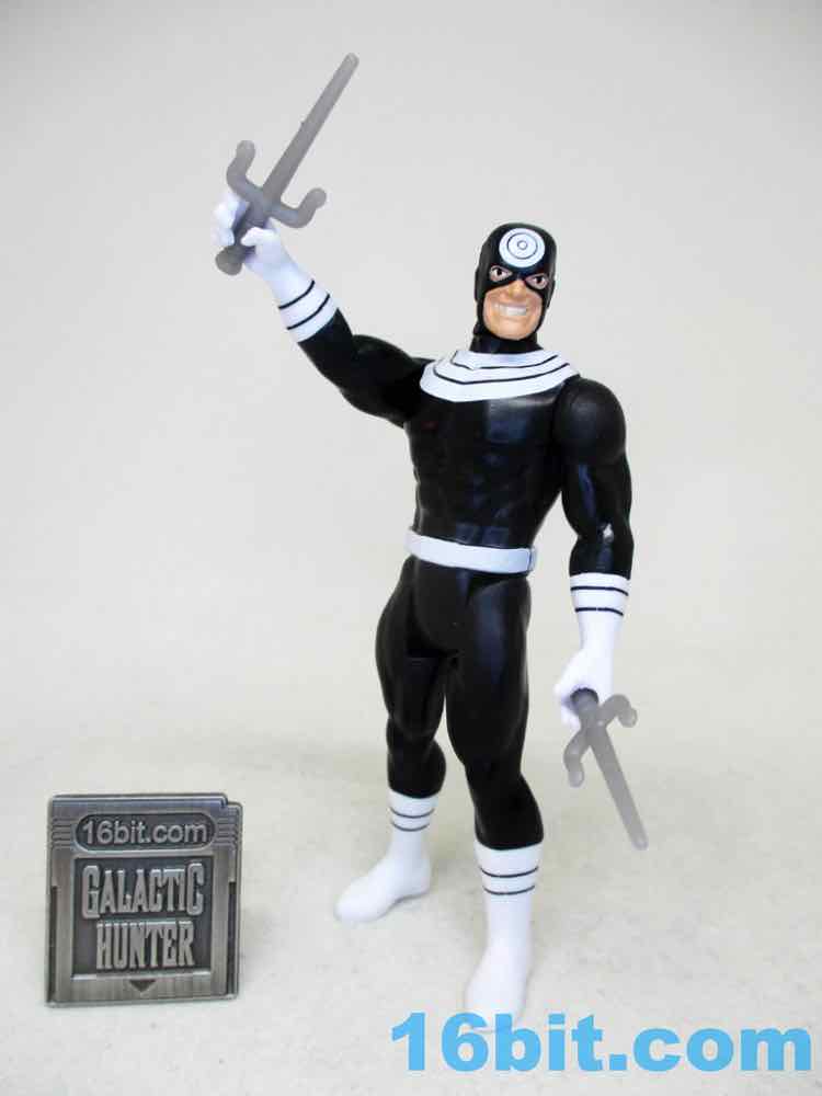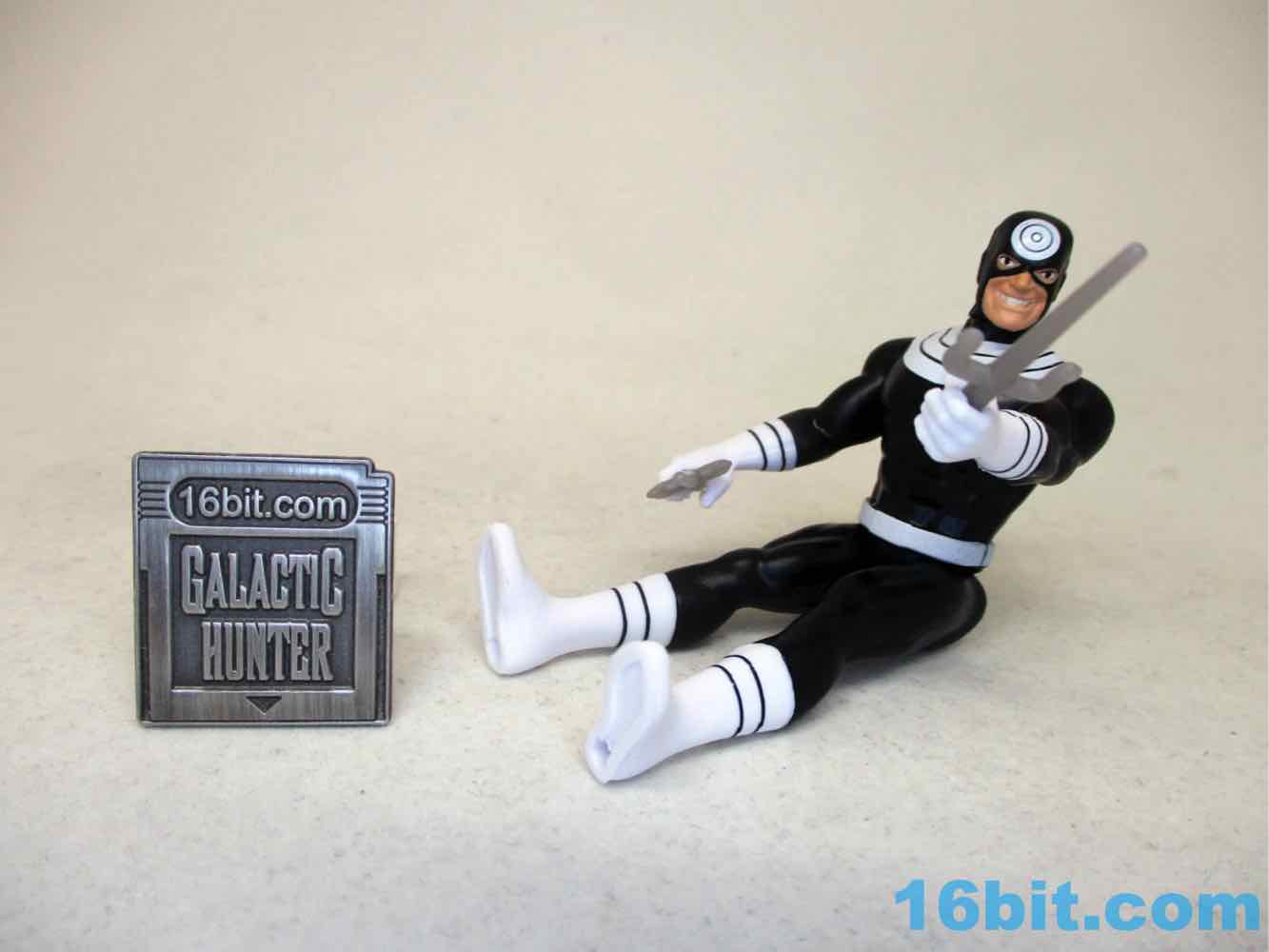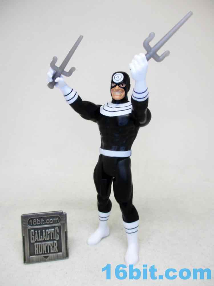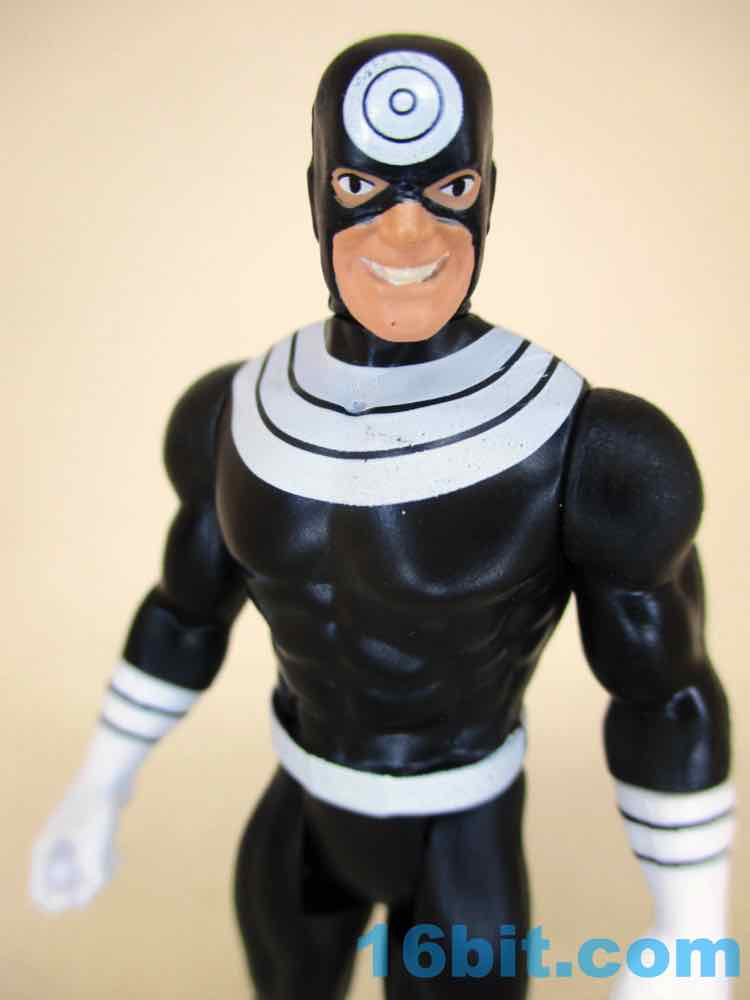 When you say "Bullseye" I think of things like "Reach for the sky!" because I bought this character out of completism. It looks like other Bullseye figures I've seen. That means a black suit with white hands and feet, black stripes on the white elements including the head and neck. There's not much to him - he's got a great angry face with a toothy grimace, giving him a fair amount of personality that a lot of other figures in this line simply do not have.