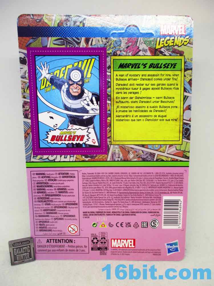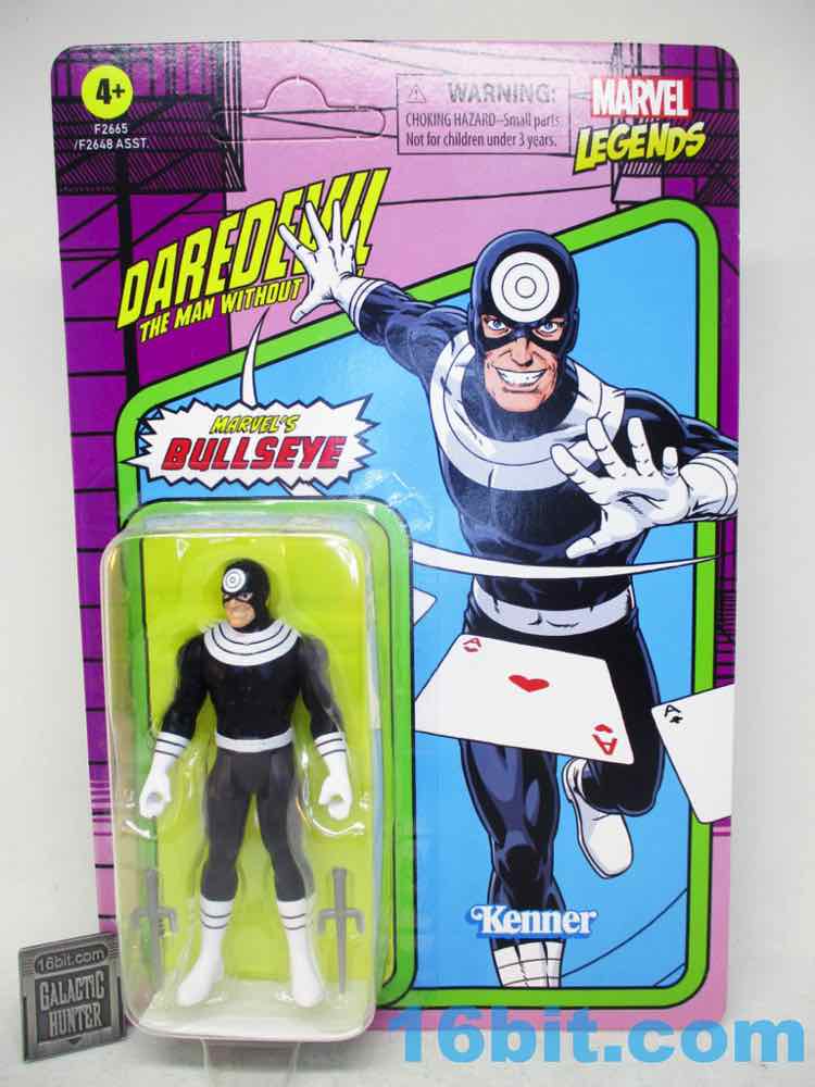 A nemesis of Daredevil, Bullseye is a figure that I would like to say makes sense for this format - but it's kind of an odd choice. The character wasn't on any TV shows or movies that were current as of his release, so I assume they were just riding high on the 1970s-1980s Kenner nostalgia combined with the early 1980s run of Frank Miller on the Daredevil book. But what do I know? Maybe a TV show was planned sooner. This figure takes the same basic "wide" body used for Cyclops and Black Panther, gives him a new head, and throws in Elektra's sai weapons rather than playing cards, knives, guns, or the other implements of destruction we typically see with Hasbro figures.