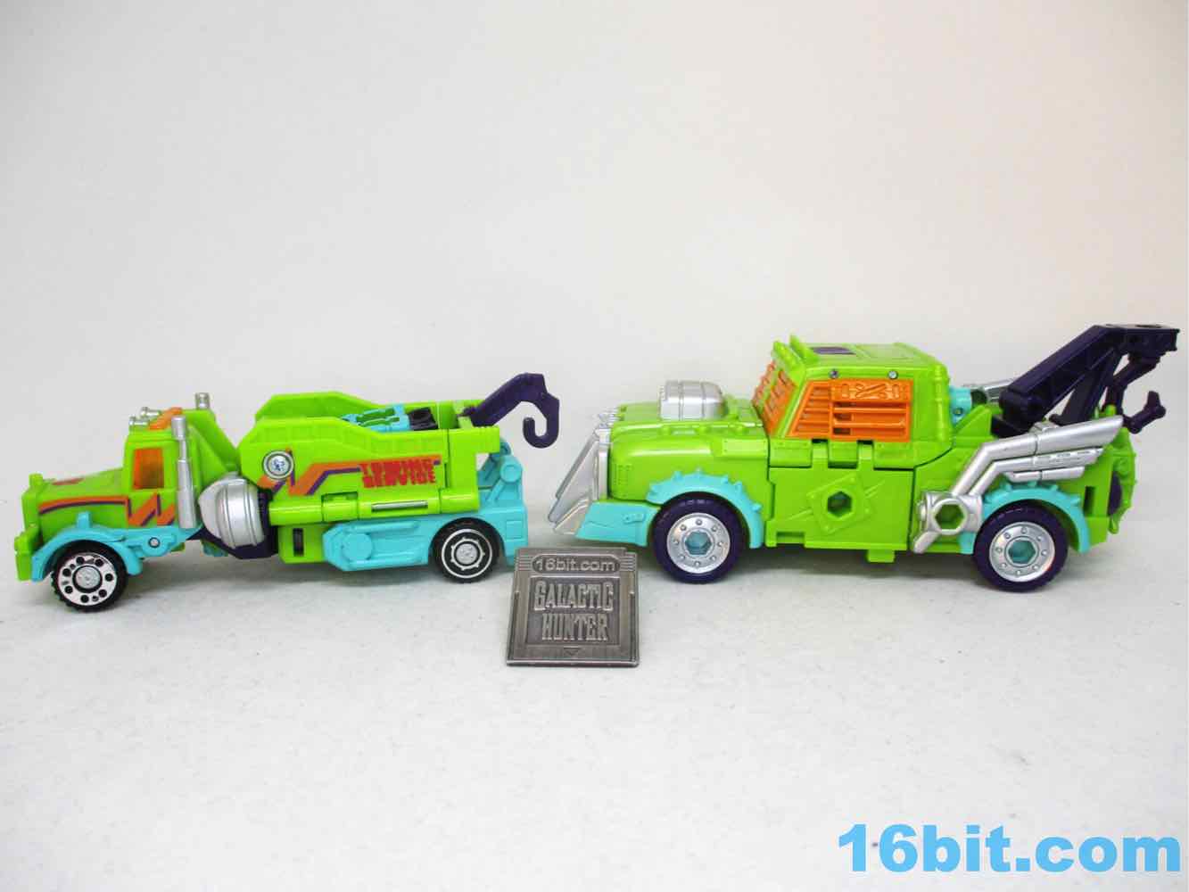 The 1990s and early 2000s were an exciting and weird time to be a fan of Transformers, with some really big leaps in engineering giving us enhanced articulation while people bashed heads trying to figure out of vehicles or creatures were the path forward. After a massively creative Beast Machines gave us action features on stylized beasts and vehicles, Robots in Disguise would shift directions back to vehicles with a few new molds and some recycled offerings. This Robots in Disguise 2000 Universe Tow-Line is based on a "basic" toy that was sold in a 2-pack for $10, which itself was originally released in Machine Wars in 1997. Except this time, it was in Mystery Machine-ish colors. The original toy is pretty nice, and this 2023 update throws out the simplicity but keeps the distinctive colors and head design.
