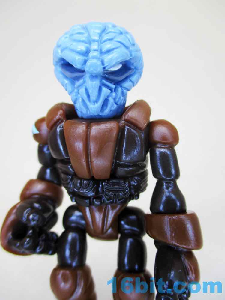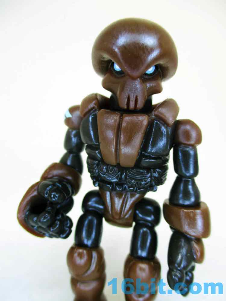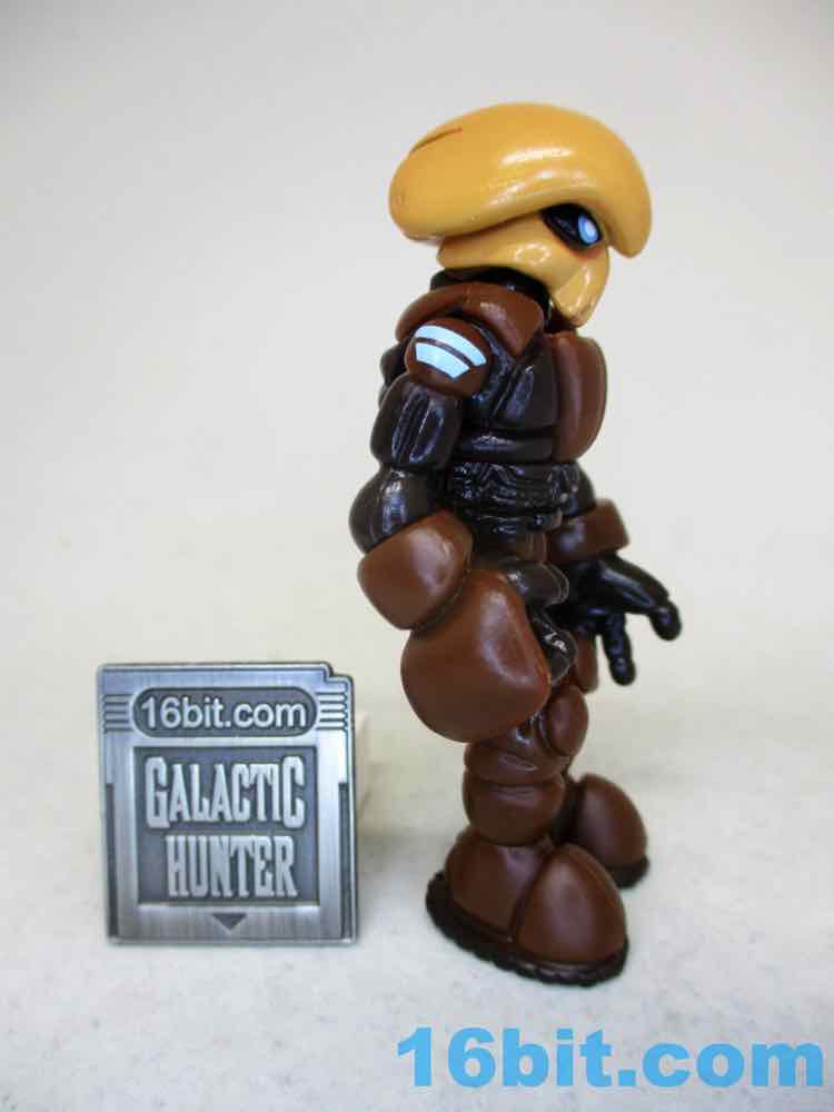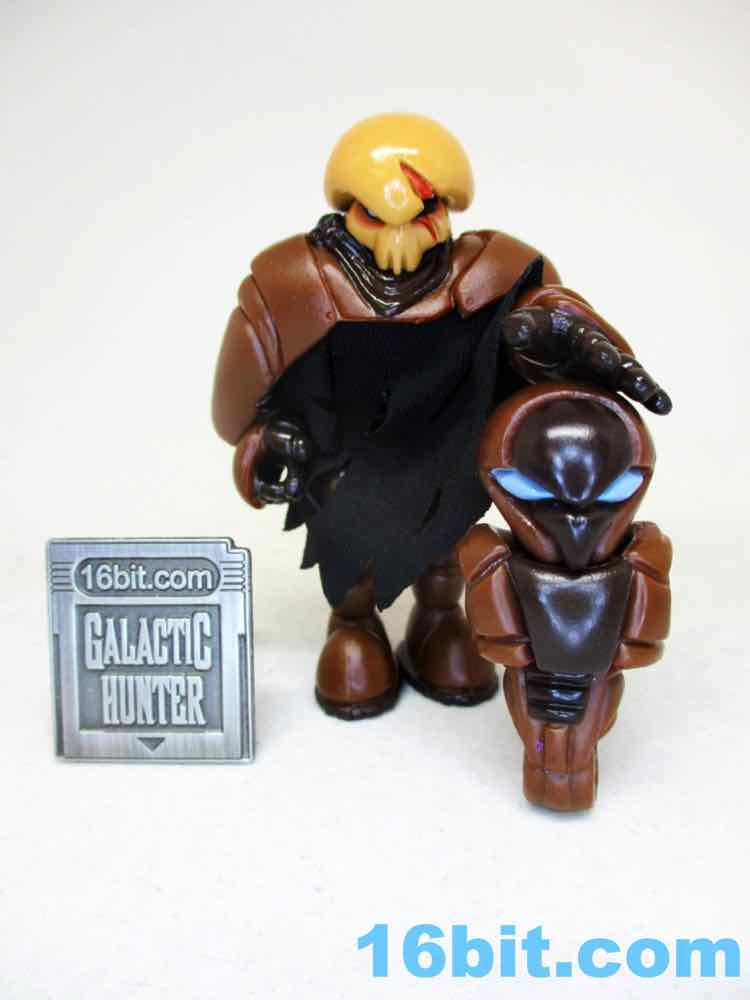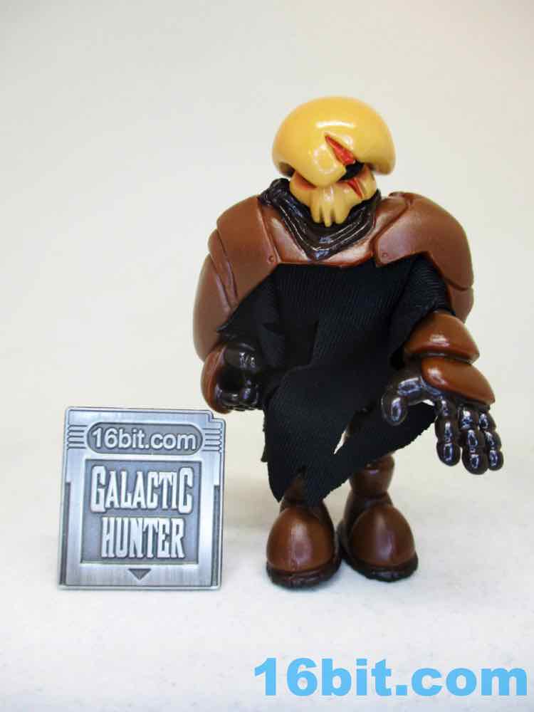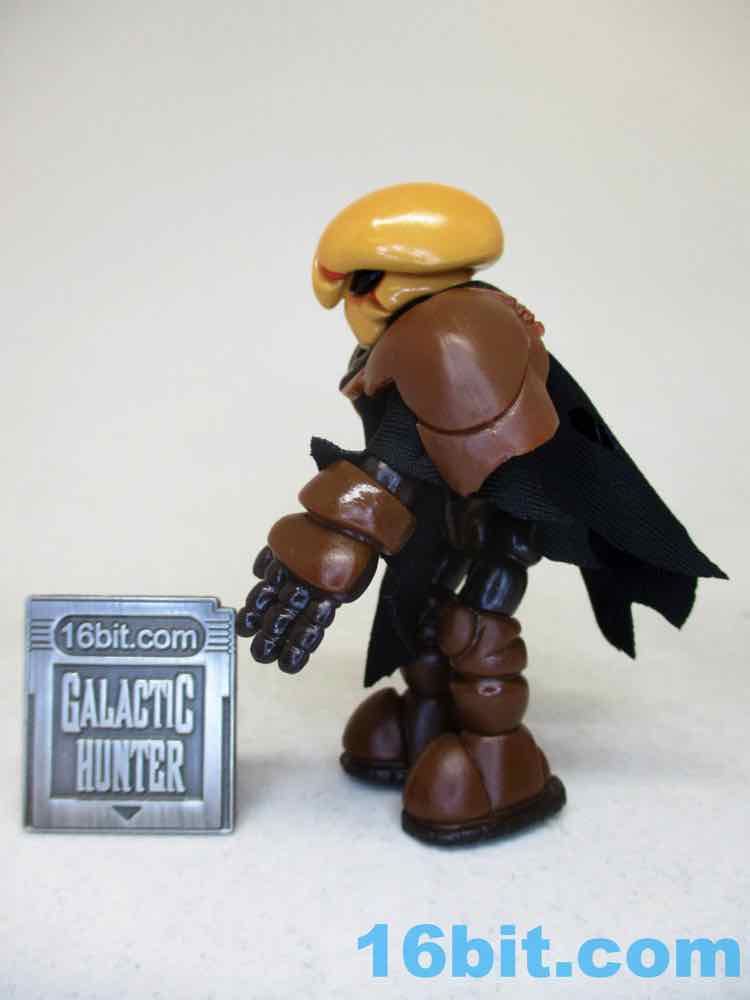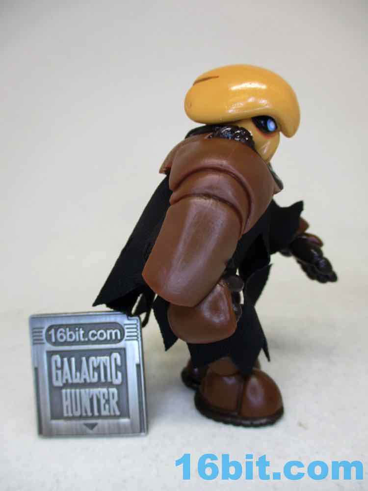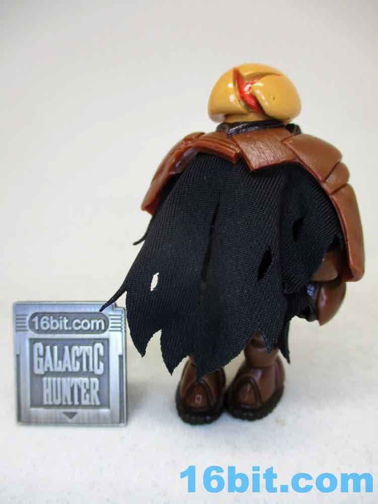 The same basic 2 3/4-inch figure is here, made from a nice plastic that has the same swiveling joints you love and the pop-apart-and-swap limbs functionality that is the line's hallmark. I assume if you're reading this you have at least a Pheyden or two, so you know what to expect. The cloth poncho/cape does nothing to hinder the movement, but what really surprised me is that the plastic poncho armor piece barely hindered the shoulder movement. He can still swing his arms forward a bit, and he has no problems sitting.