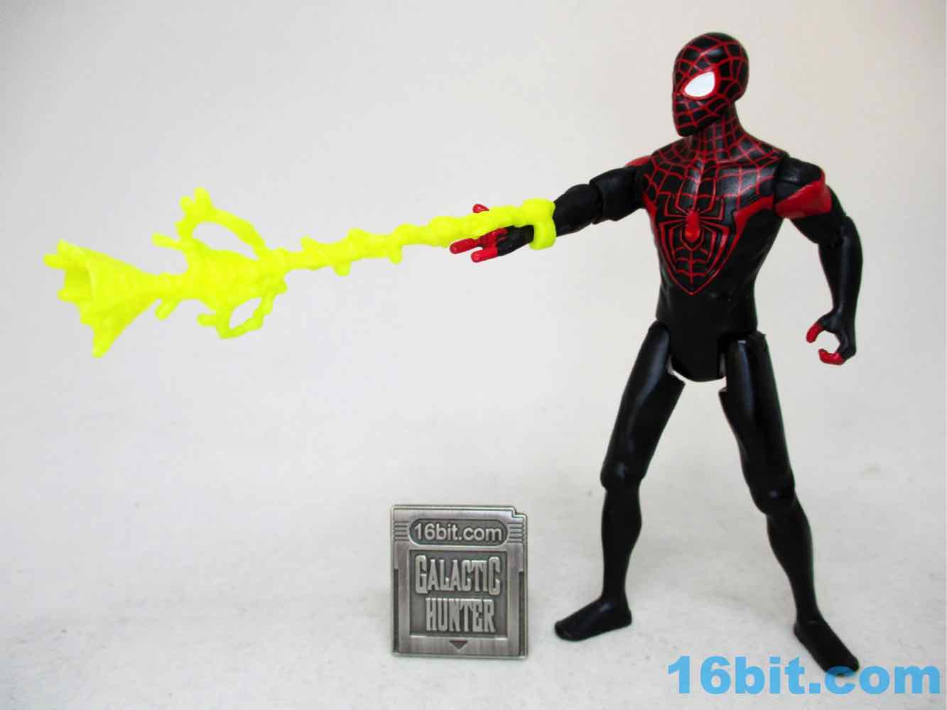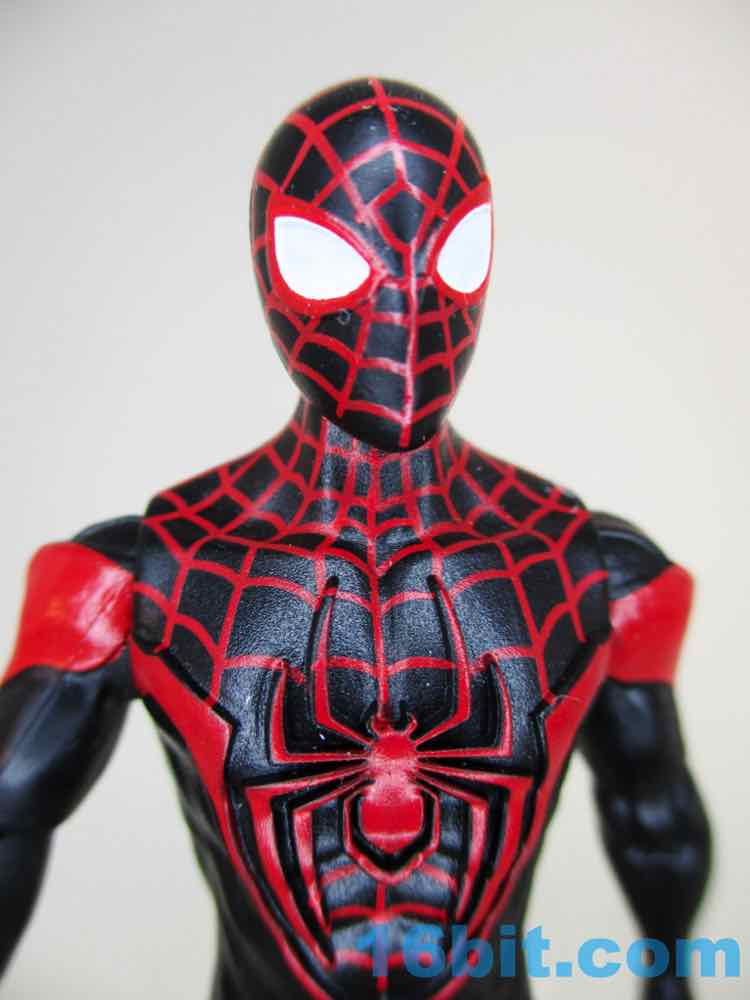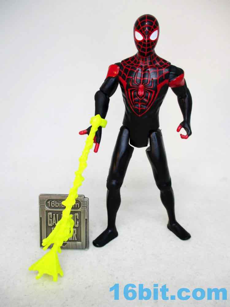 The figure is effectively the same articulation as the rest, meaning no wrists and no ankles - but you don't need them. He's pretty sturdy and has nicely jointed hips, elbows, shoulders, and knees, plus a nice neck joint. He stands, he sits, and you can clamp what is not pee in the shape of a web to his wrist.