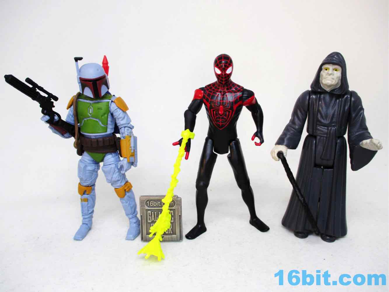 I don't think Spider-Man always gets enough respect. He's supposed to have a secret identity, but the box for Spider-Man tells you that it's Miles Morales. That seems unfair to him - I know people want to make him a distinctive person, but we've also had Kid Arachnid. I'm surprised it's just not "Spider-Man (Miles Morales)" on the box, because people don't necessarily know who he is under the hood. We don't collect Bruce Waynes or Scott Summerses. It's a weird choice, presumably done to make things easier for parents.