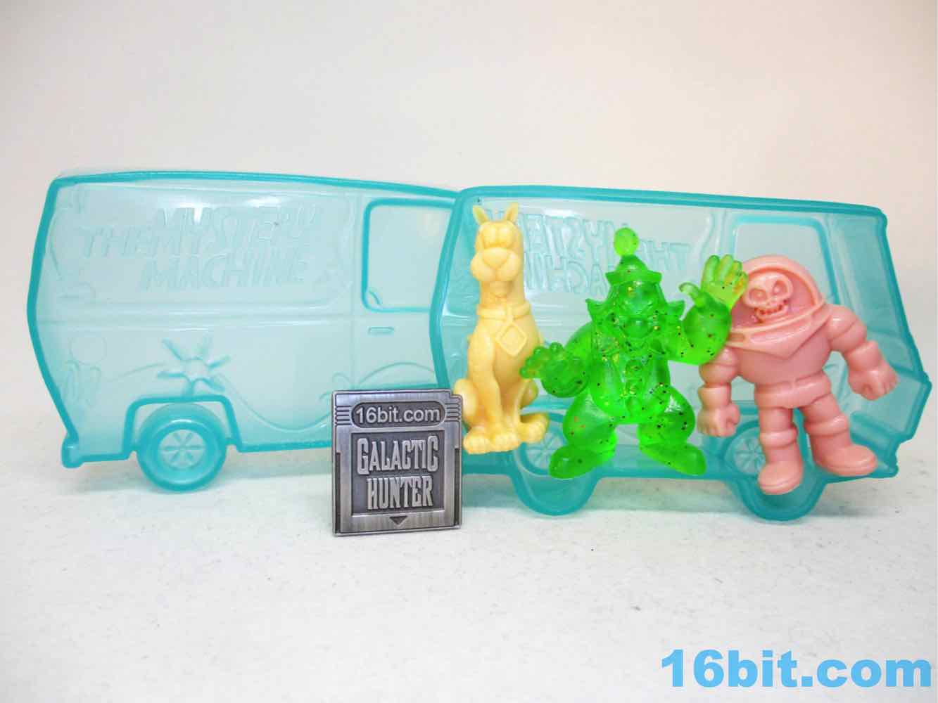 There are 12 figures that come in at least eight colors. I'm still looking. But they did make Shaggy, Scooby, Captain Cutler, Green Ghost, Miner 49er, Space Kook, Creeper, and others in a font so small on the packaging I defy anyone to read it. It's the smallest printing that I may have ever seen on a toy - it's just a plastic band over a two-piece clear blue Mystery Machine case. It's efficient, and adjusted for inflation they are priced similarly to 1980s toys of a similar bent.