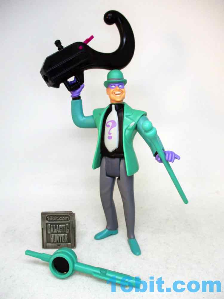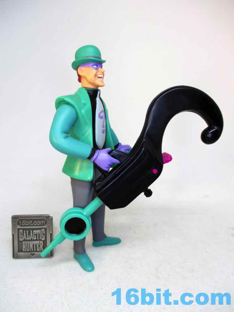 The stylized sculpt shows that Kenner was working hard to make a figure that, at least, looked amazing in the packaging and was pretty fun to play with. He can swing his legs forward and could sit in some vehicles - something Hasbro and other companies are not as good at these days - plus he can hold his gear. It is not merely impressive, but it's quite a feat for this skinny green guy to hold a giant question mark that can shoot its green rocket with quite a punch. I'm so used to modern toys that I forgot just how far this thing can go - it's really impressive.