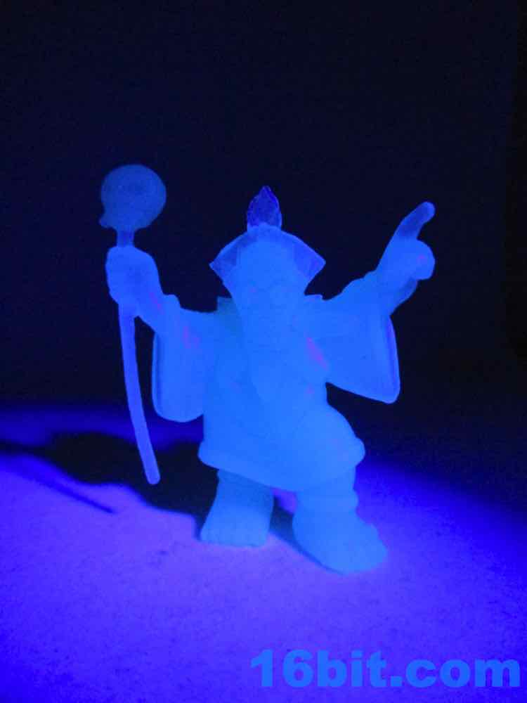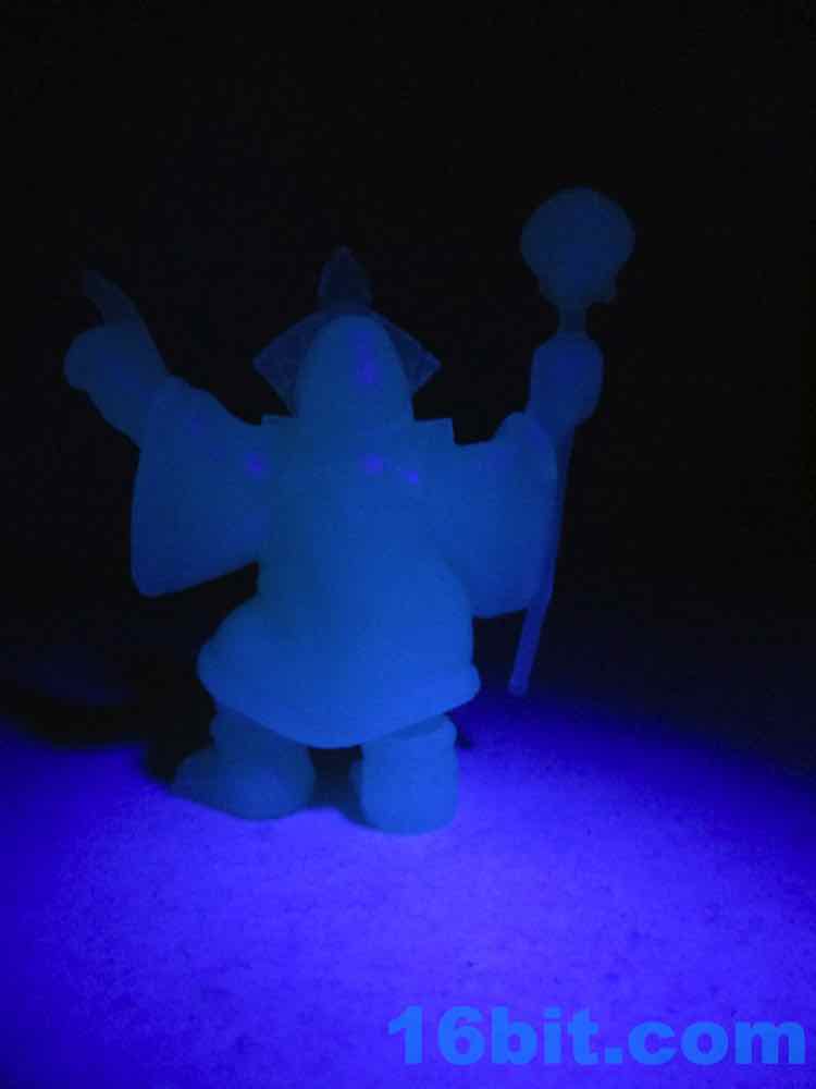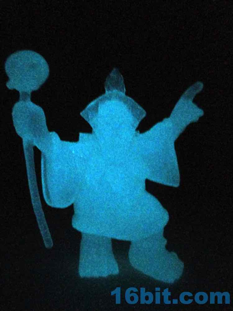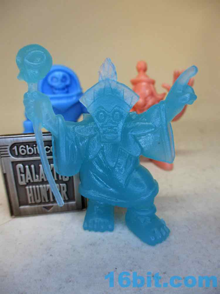 Rounding out this particular set is a glow-in-the-dark blue Tiki Witch Doctor, which has a perfectly nice glow to it but it's a little dim in the camera. It's a little translucent, and it's really hard to make out any sculpted detailing unless it's lit at just the right angle. He's got his mask, skull staff, sandals, and large robes - it's a pretty good figure, but I admit it looks better in the other solid colors. I wouldn't go out of my way to collect the blue glow figures for that reason.