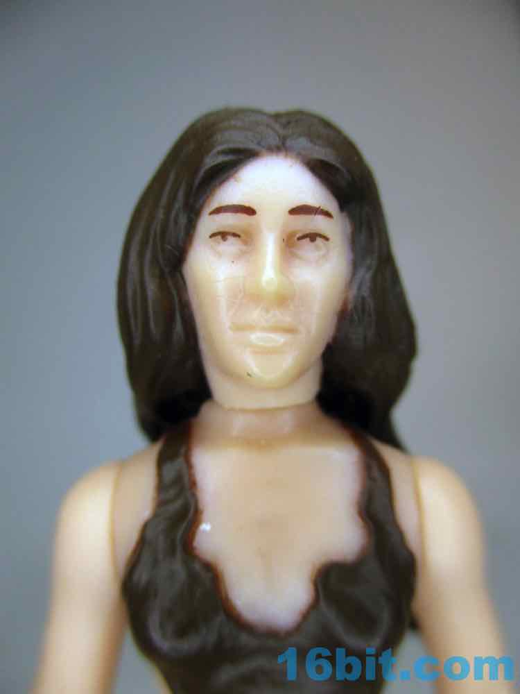 The actress who played her is incredibly distinctive with bright eyes and incredibly distinctive eyebrows - the figure loses this. You get her then extremely young form rendered in plastic pretty well, complete with ragged one-ish piece costume. Getting bare human arms to look decent seems like a challenge in this size, so they did a pretty solid job here. Her arms and legs swivel freely, and they designed the outfit well on the toy so she can swing her legs forward and it doesn't look like her rear is made of right angles when she sits.