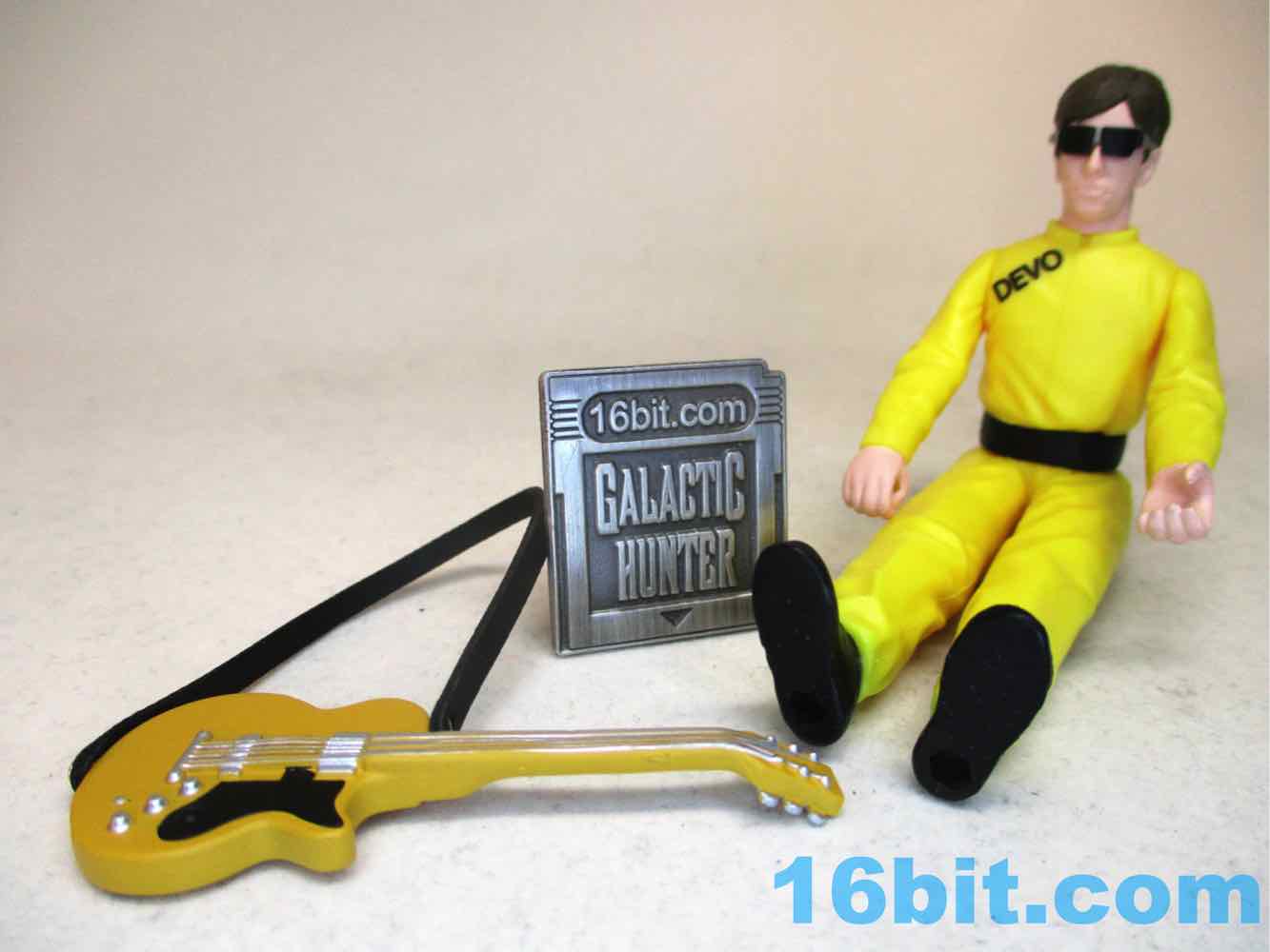 As with most of these figures, he stands well and can sit like a champ. Go ahead and put him in your old Kenner vehicles - he'll fit. The detail is good and the wrinkles on the suit are convincingly retro. The printed "DEVO" on the suit is super-sharp, and the guitar deco is also arguably too good for an actual vintage figure... but that's OK, it's still excellent.
