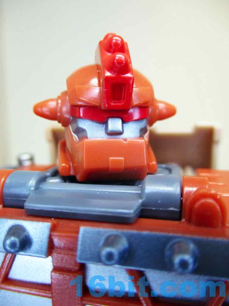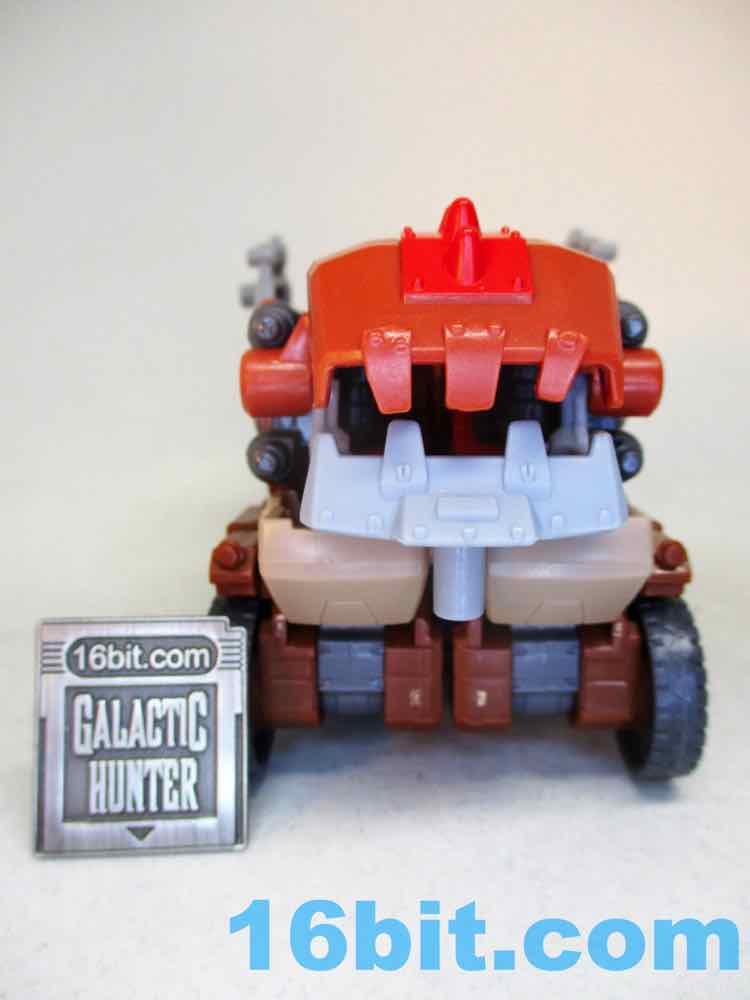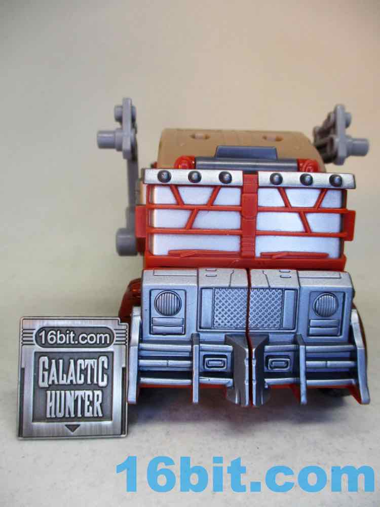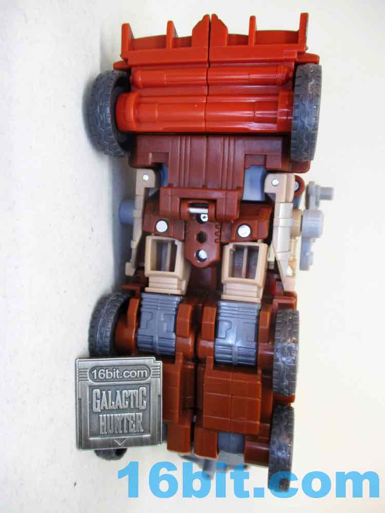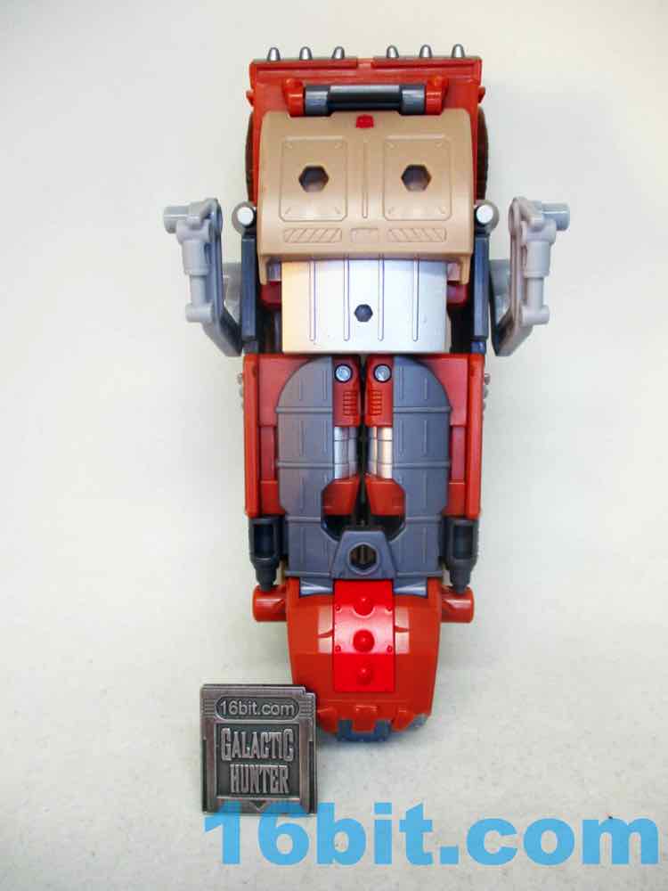 While he is a new person, he does come off as a familiar pastiche of things you've seen. The articulation is very good, and the "monster mode" you can make by putting the clamp weapon on the neck area is a hoot, though. This is a toy you buy to play with - the elbow articulation is excellent and the big feet allow for a variety of poses without the robot falling over. The character design doesn't come off as one of the very best, but I do like the engineering a lot. The robot mode does feel like a bunch of boxes with sharp bits bolted on, but at least it's sturdy and fun to pose. I don't think the truck windshield reads well, and it also seems odd as a chest. Maybe it's the silver.