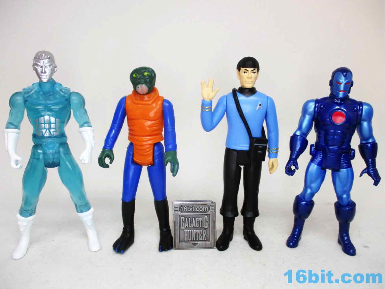 Mr. Spock stands about a head over Boba Fett from Kenner, and a half head over Hasbro's Kenner's Iron Man figure. While not a giant, this may make him a little out of scale for some of your other figures, it it's close enough that you won't notice too much. Mr. Nimoy was supposedly about 6 feet tall, which probably puts him a smidgen above a lot of other characters. He's a little shorter than a Darth Vader, for example, so it's completely out of whack. The left arm and legs seem in line with typical Kenner sculpting, and while bent elbows weren't entirely uncommon back in the day, unique hand gestures tended to be a rarity. It looks good, and gives the figure a lot of personality that ties in to his very specific packaging.