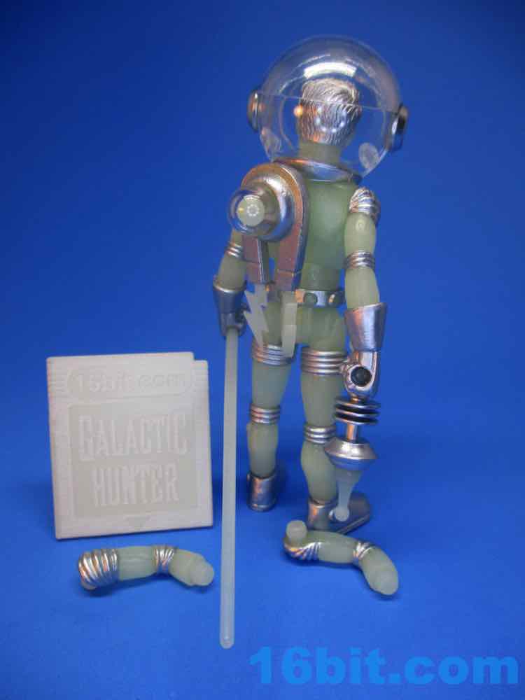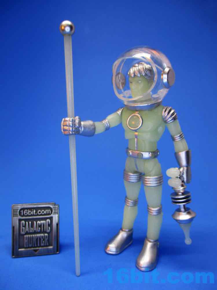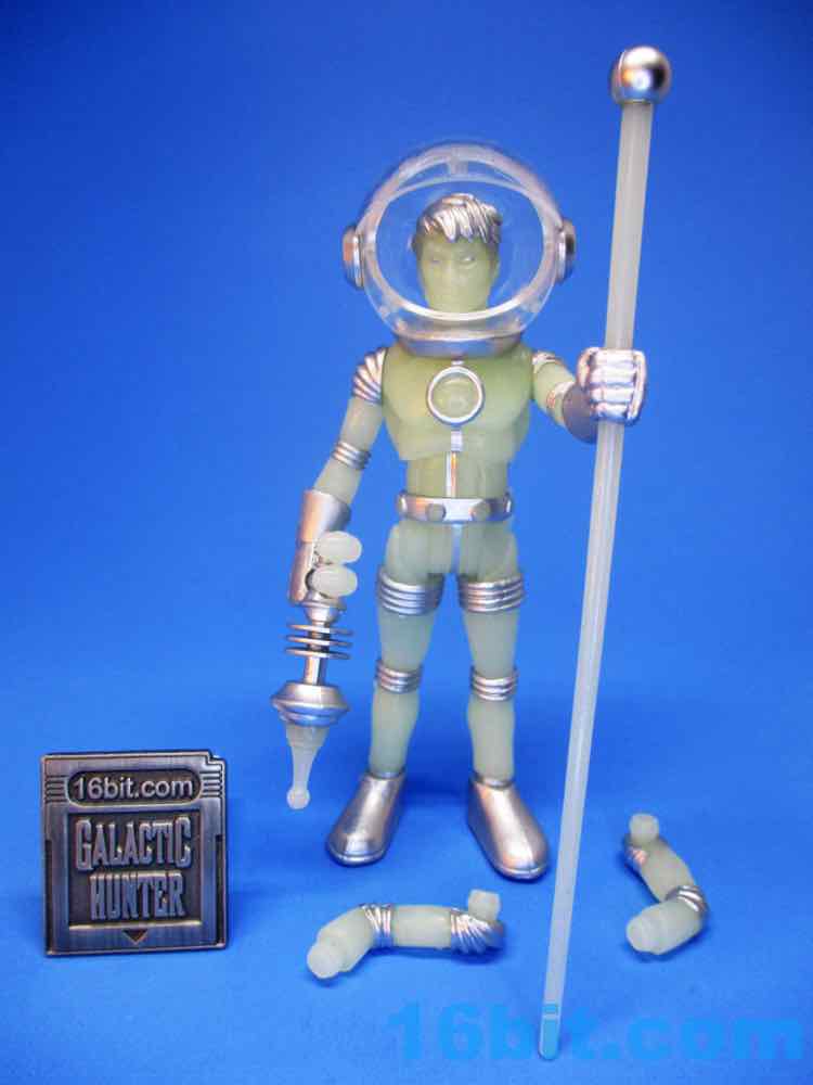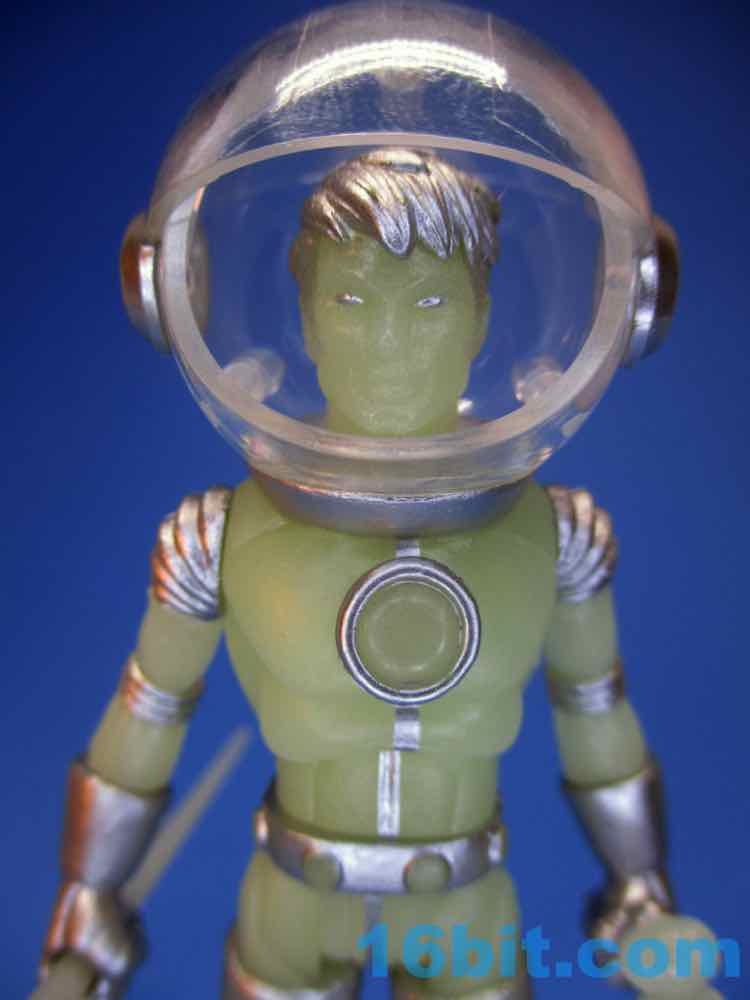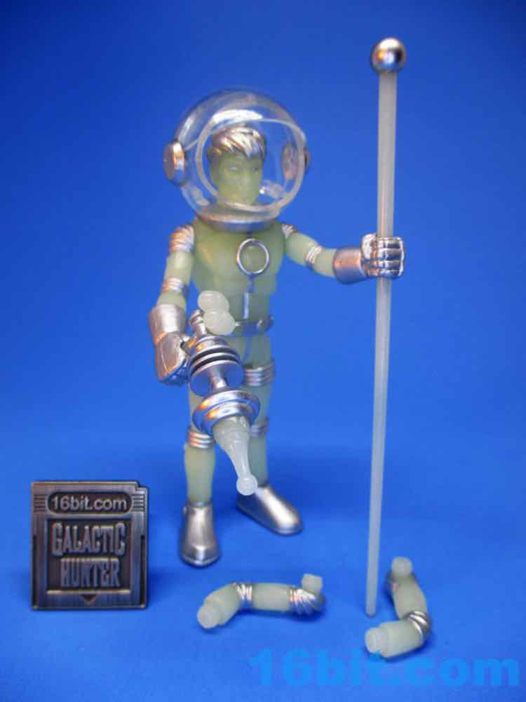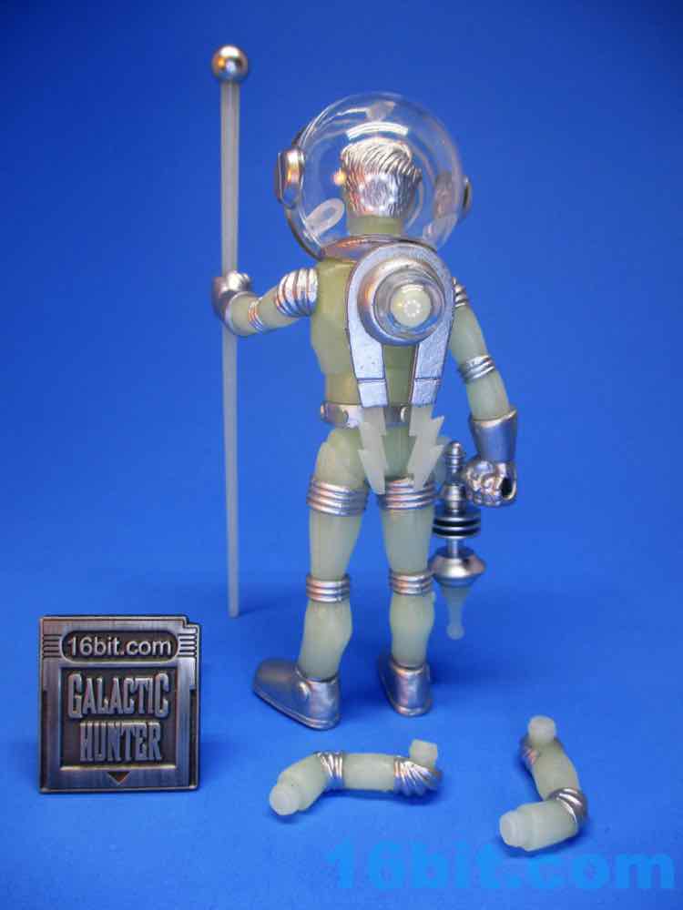 Item No.: n/a Manufacturer:The Outer Space Men Includes:Removable 3-piece helmet, magnet jetpack/Anti-Gravity Generator, Atomic Disintegrator, alternate arms Action Feature:Helmet has articulated visor, Glows in the Dark Retail:$25.00 Availability: July 13, 2018 Other: Still Available