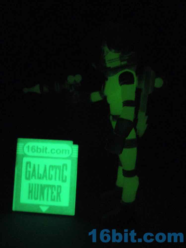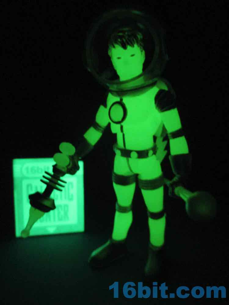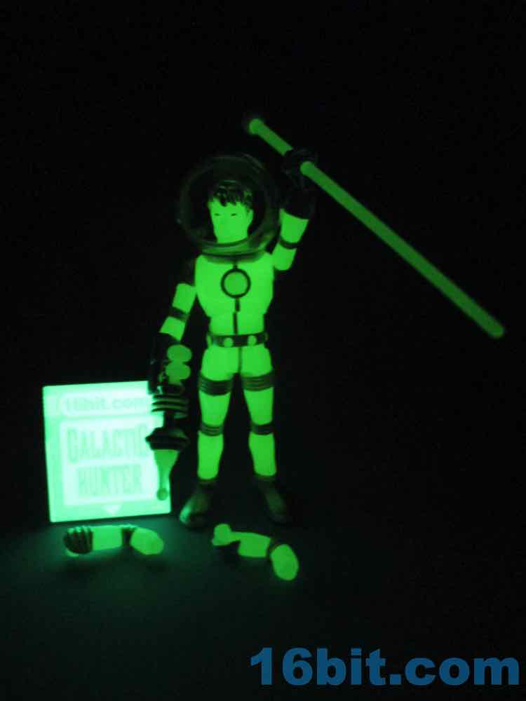 The Glyos glow plastic is good. It's always good. The clear colorless plastic on the helmet looks like a retro toy, and the silver paint looks nice when the lights are on. Sadly it doesn't quite shine when the lights are out, like vac-metal silver, but it still looks pretty gorgeous and does a nice job highlighting the sculpted detail. He's got silver eyes and matching shaggy hair, which again really pops with that silver paint.