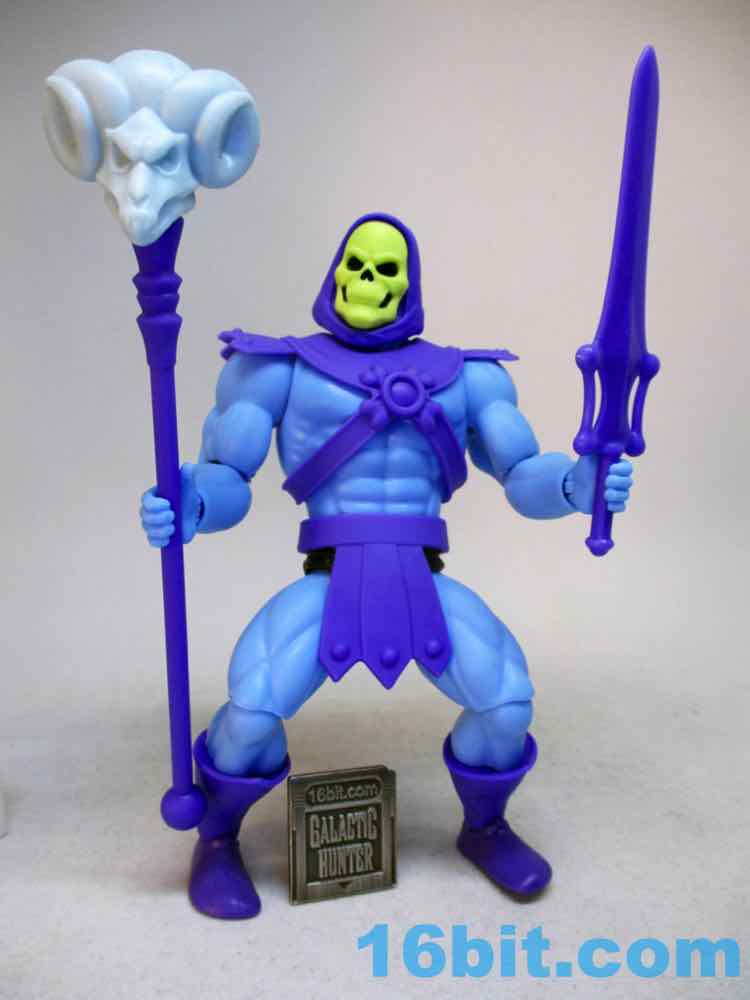 For people who don't have too many Skeletor toys, I'd say run out and get this one. It's by no means amazing, it's not as fancy as the deluxe Super7 or aforementioned Mattel Creations model, but its exclusive accessories and distinctive look may be enough to get you to consider this slightly-too-big Skeletor as a place to kick off buying Masters of the Universe again. Some more black paint and space between the teeth would help a bunch, and the colors are a little pale, but it still comes off as a cartoony Skeletor. And isn't that what the world really needs?