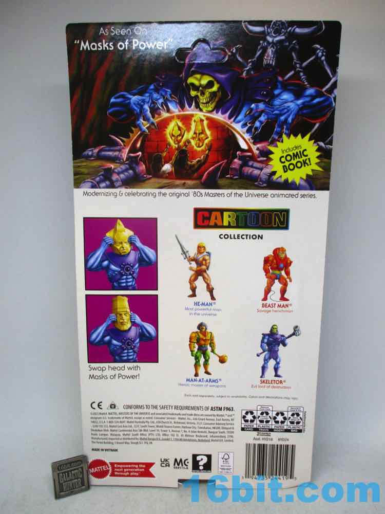 Item No.: Asst. HYD16 No. HTG94 Manufacturer:Mattel Includes:Purple sword, Staff, Demos and Tyrella masks, Wizard's Vizard mini-comic Action Feature:Replace Skeletor's head with included Masks of Power Retail:$19.99 Availability:January 2024 Other: Das Reboot