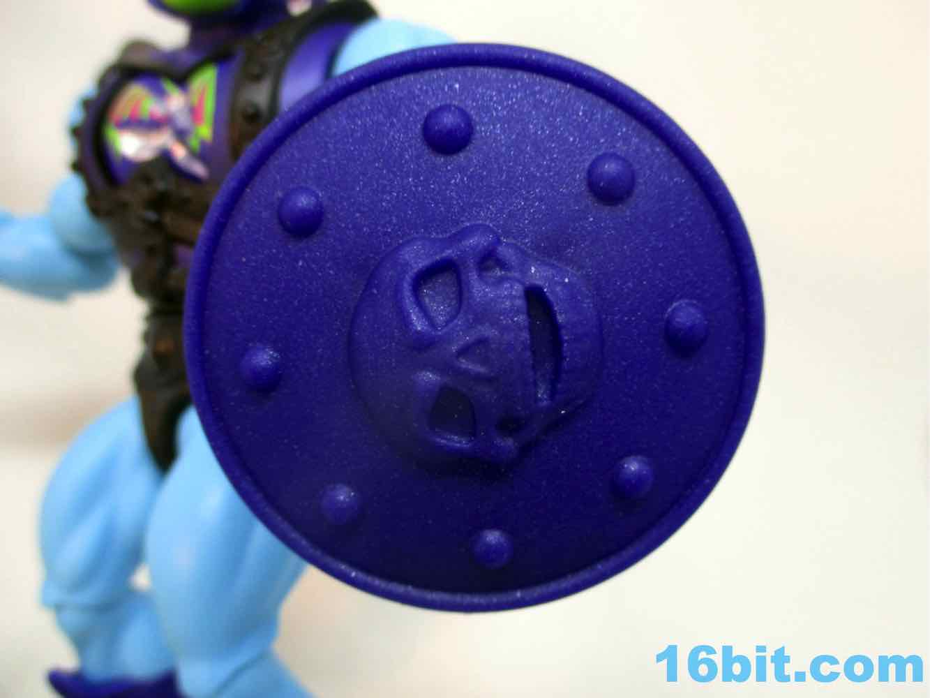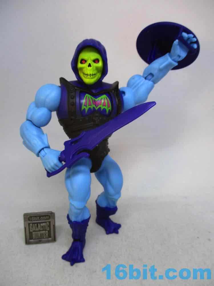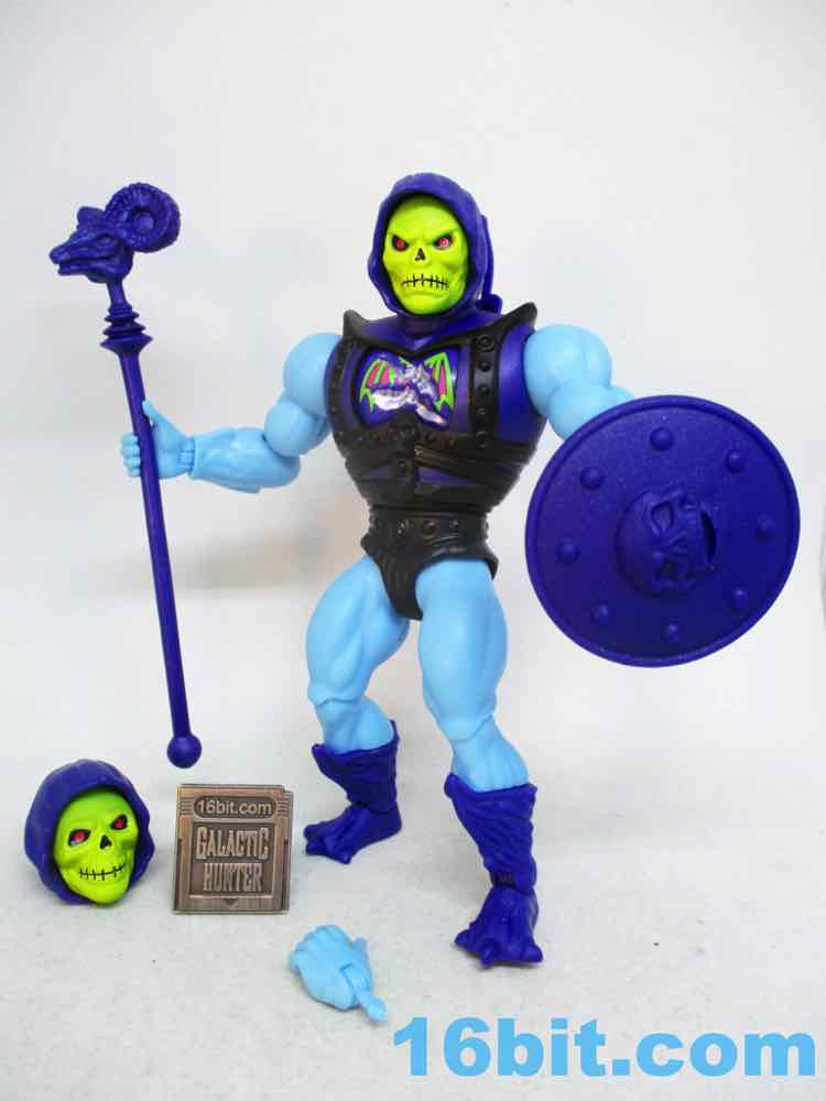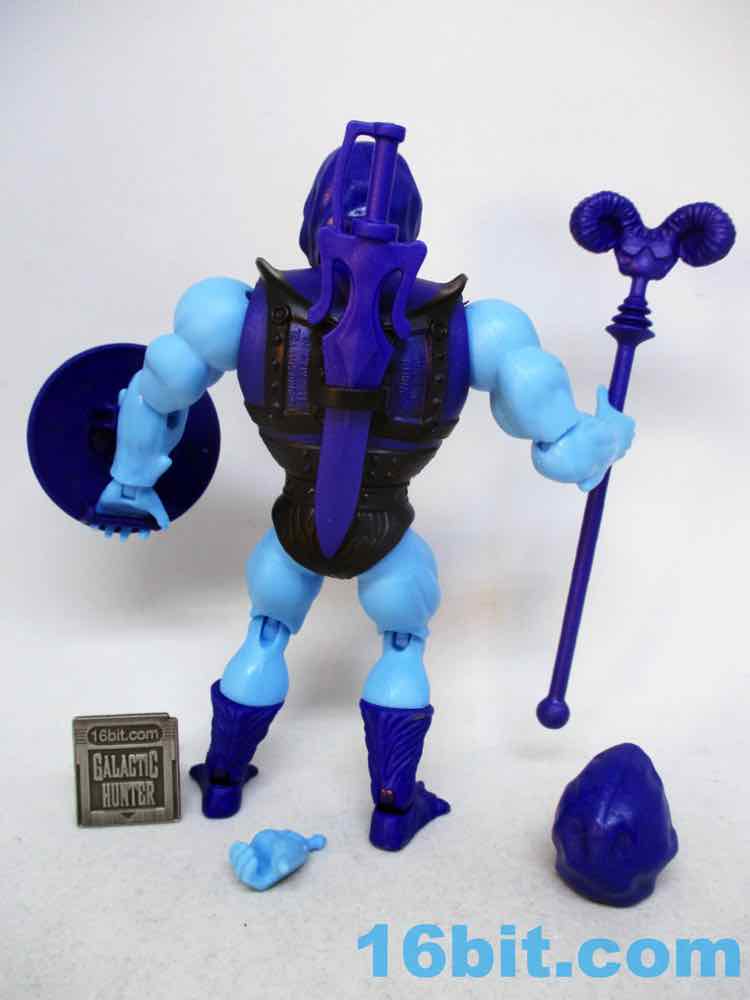 By default, he has an open left hand like the original toy. You can swap it out for one with gripping fingers, which you probably should. It's tricky but you can get it to hold the skull-head shield and clamp on, if the hand is rotated correctly. It isn't innovative, but given the entire point is to make a collector line that's priced for kids and dads (and moms?) to share together, I think they did everything correctly here. It's not like the heads are easy to pop off, although it's not hard to get the hand out.