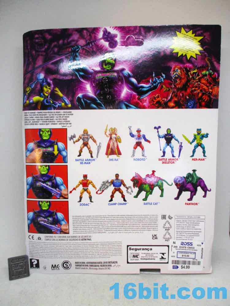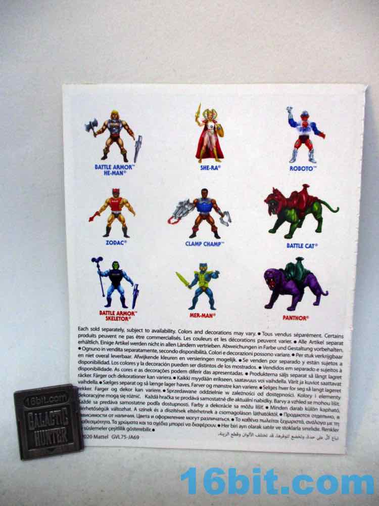 Item No.: Asst. GVL75 No. GVL77 Manufacturer:Mattel Includes:Alternate head, purple sword, Havoc Staff, shield, alternate hand, textless comic Action Feature:Swap heads, hit chest to "dent" armor wheel Retail:$21.99 (or $4.99 at Ross) Availability:July 2022 Other: International packaging - comic has no text, found in US Ross in January 2024