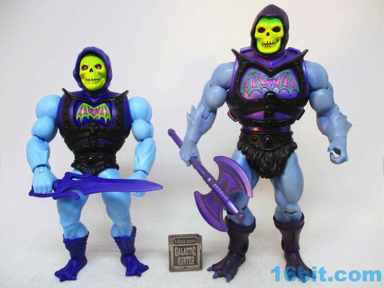 I've played with original toys with this mechanism when I was a kid, and this is pretty close to what I remember - rotate the wheel in the chest, and when you hit it, it flicks down to show a scar. And another scar. It's a lot more fun than the replaceable plates from Classics Battle Armor Skeletor [FOTD #328], and, oddly, the same price. There are advantages to the economies of scale, figures like this not being sold exclusively online means you sell more. The articulation is pretty similar, too, and in some cases a bit nicer. The new figure is sized to match original Mattel figures, although there are enough subtle differences that I doubt anyone with an original will be too angry that a modernized update exists.