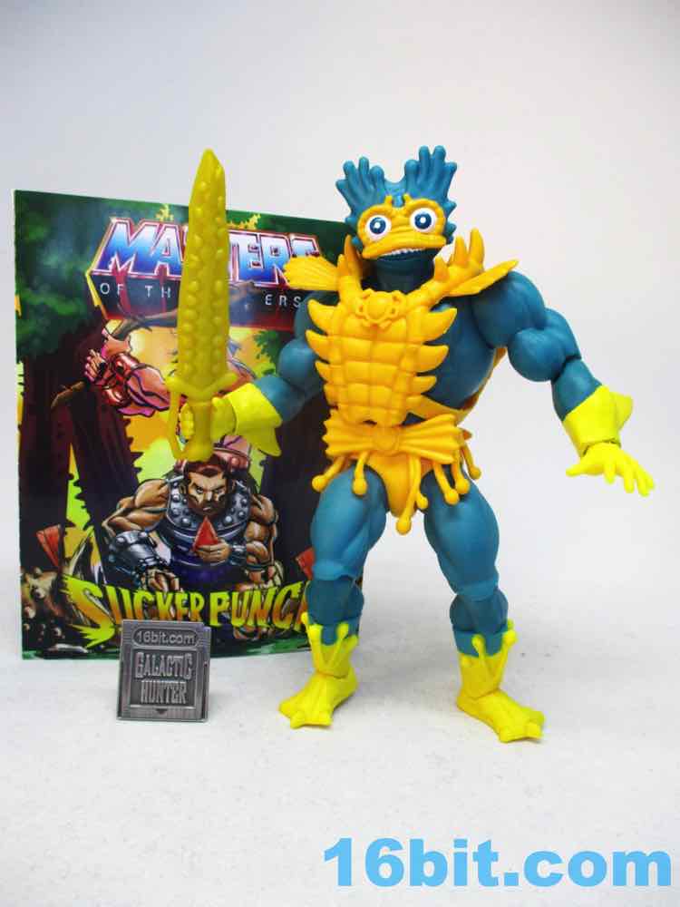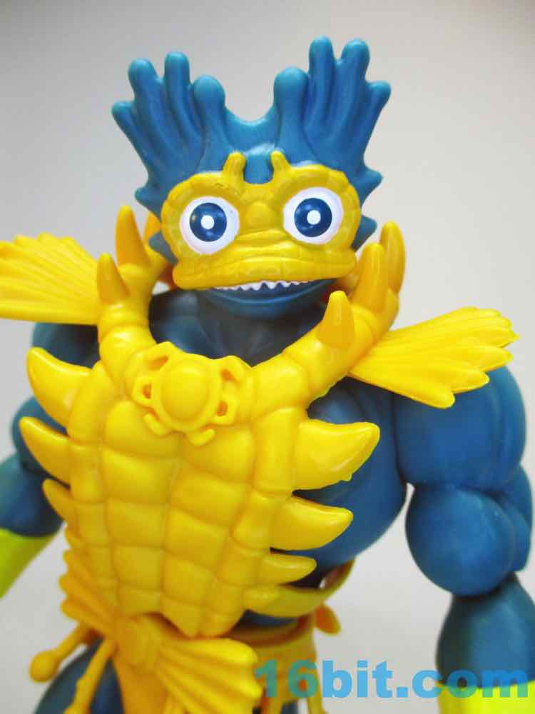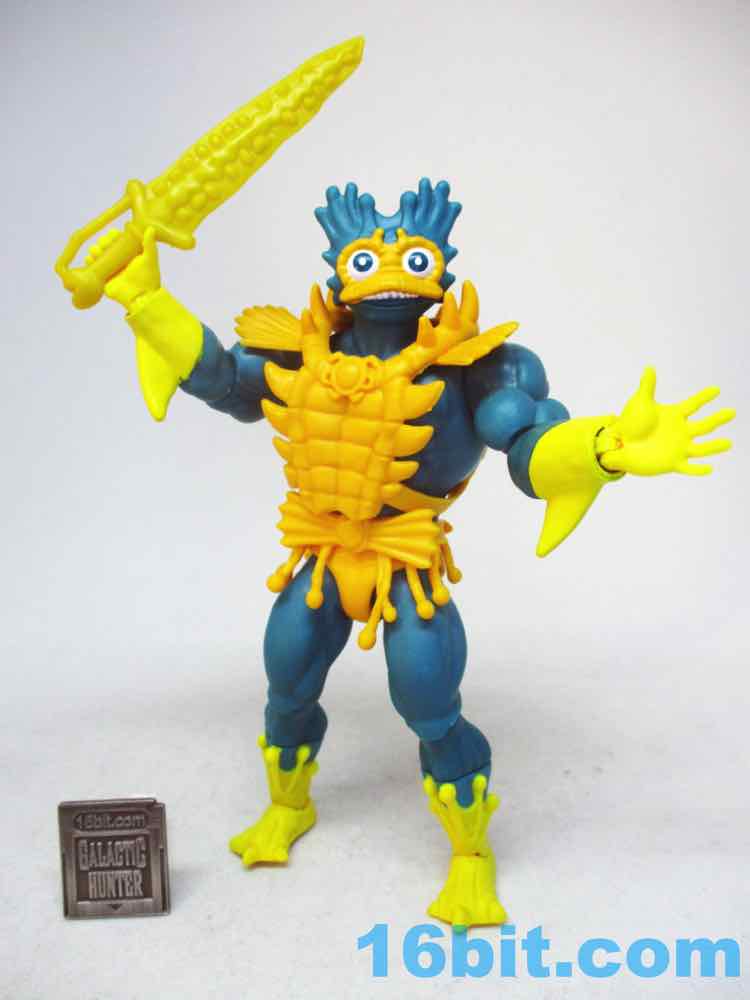 Sadly this figure doesn't do much other than look awesome - which was why I wanted it. There is no sword-slashing. There is no swappable head. It's a fish guy and a sword, and thanks to his overly specific look modeled after Mattel's earlier concepts I'd say it's worth the retail asking price (or a bit more at a collector shop or eBay.) He doesn't look quite as evil, but I don't see that as a problem - he's closer to the cartoon, and the detailing is pretty great. You won't be impressed by amazing colors or matching-the-original deco, yet he captures the flavor of what the lines aspired to be before something changed his look in production.