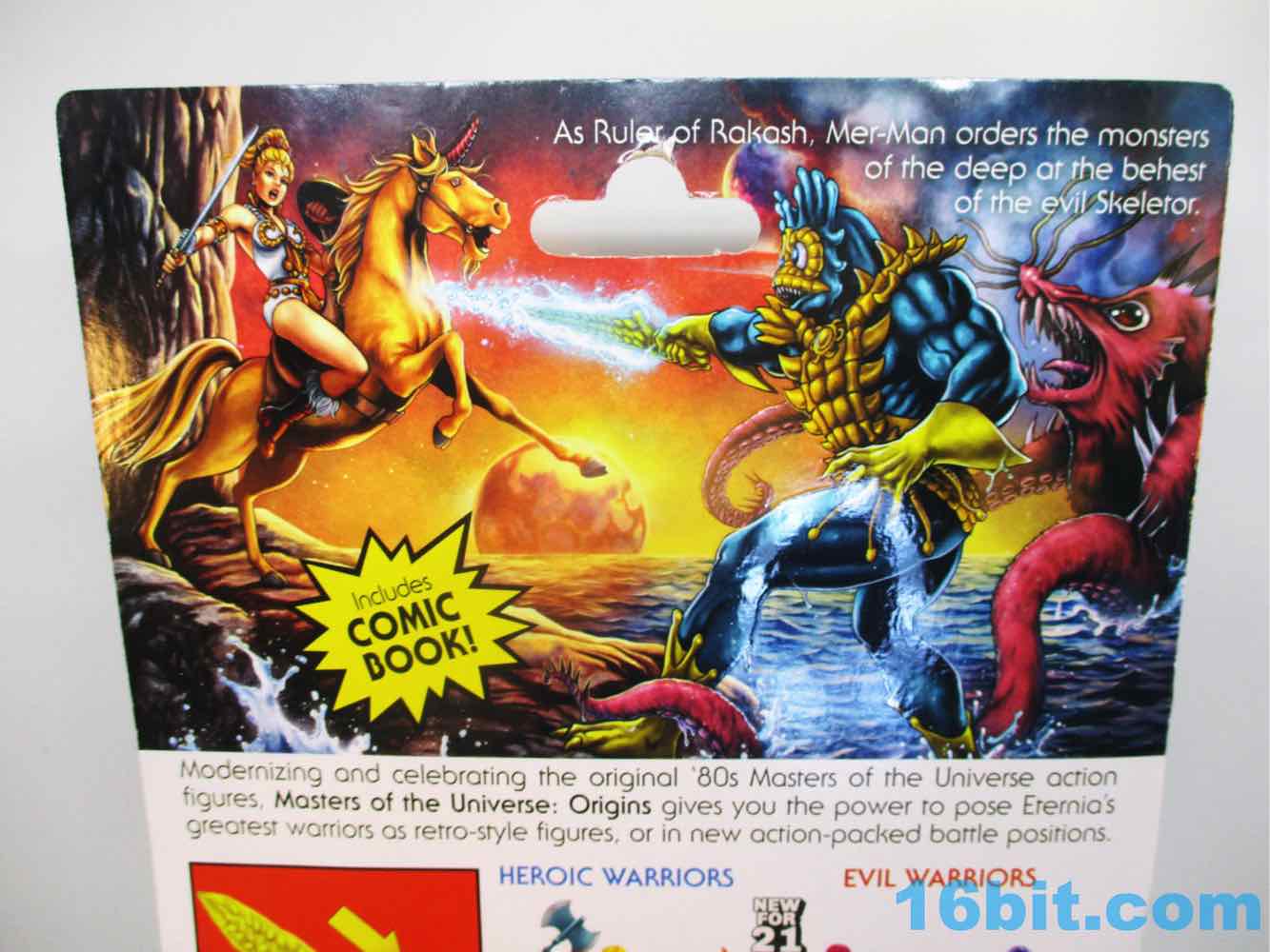 I'm trying to keep my Origins collection tight, so I assume this (and Filmation) is as far as I'll go for Mer-Man. The figure uses the same mold for the aforementioned exclusive set, but has more saturated, brighter colors and slightly less paint. The convention version had bubbles on his speedo, plus painted highlights on his armor and sword. He also looks a heck of a lot cooler than the original version of the toy, with huge eyes, retro Sea Monkeys-esque "hair," and decor on his boots and belt that also seem like they came out of a midcentury comic book ad. It's really charming, straddling the line between a 1980s action figure and something out of a long forgotten aquarium decoration kit.