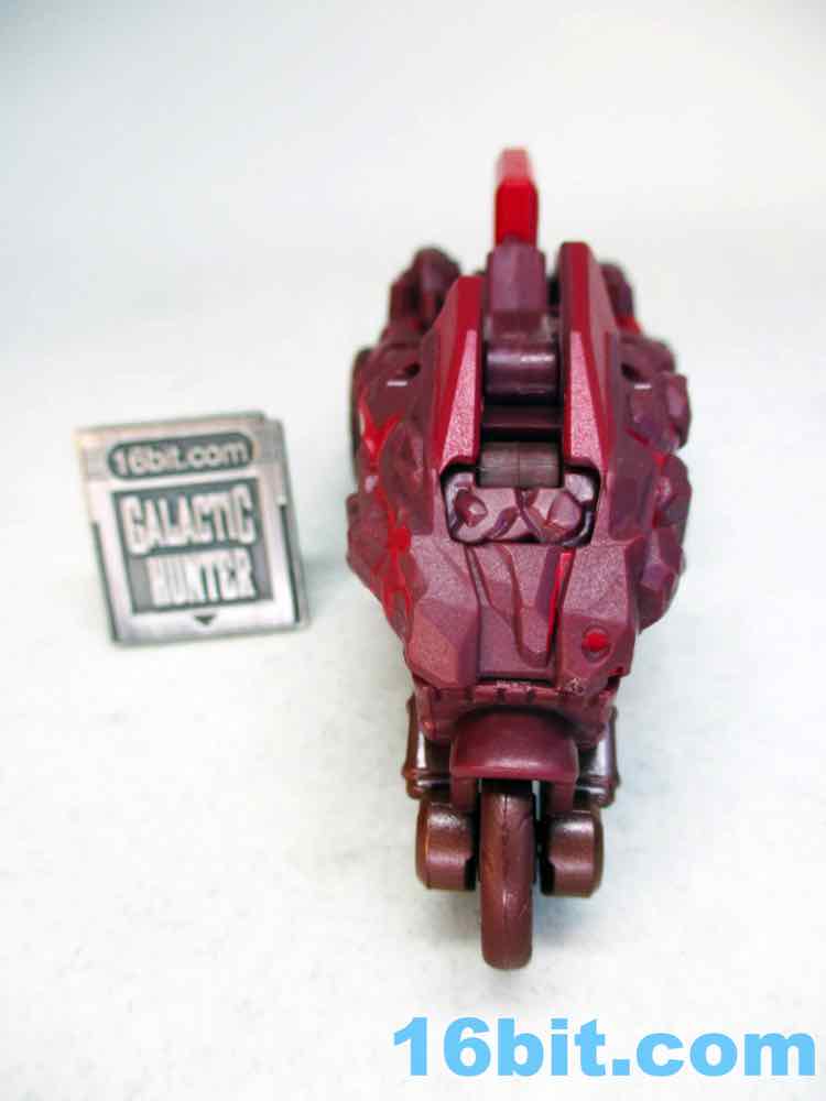 I was surprised that this figure had a third mode... and less surprised when it was pretty much the trike mode. The sword blade folds forward and there's a visible 5mm post coming out the backside, so many larger figures can hold this as a sword. It looks like they're holding a pile of rocks with a weird red blade coming out of it. It's not without its charms, but this is the kind of thing I think would be more acceptable if it were part of one of the kid lines because you have to pretend that it's a sword. It's basically a massive hilt with wheels, and it's quite heavy for most figures to carry. It's an ambitious idea and I'm glad to see them try things like this, but as a toymaker Hasbro is probably really counting on adult fans to look at this and just ignore it. I don't particularly like the sword mode, but the idea of a battle bike with a blade I can flip forward and joust with? That's really cool.