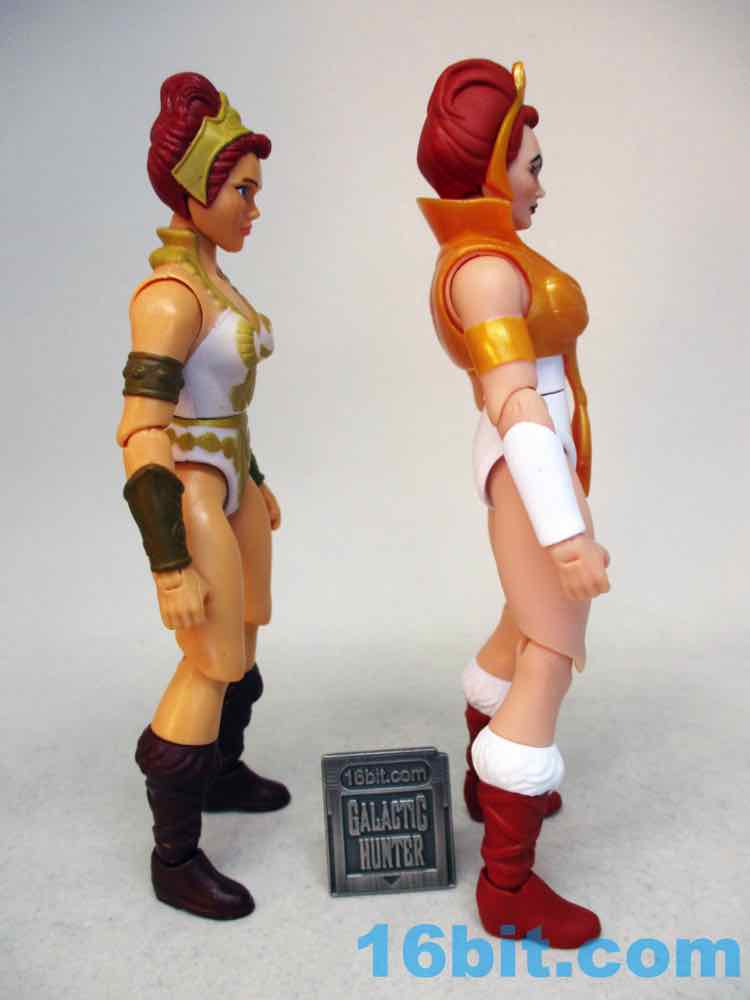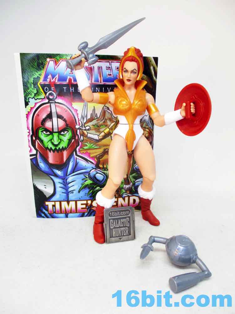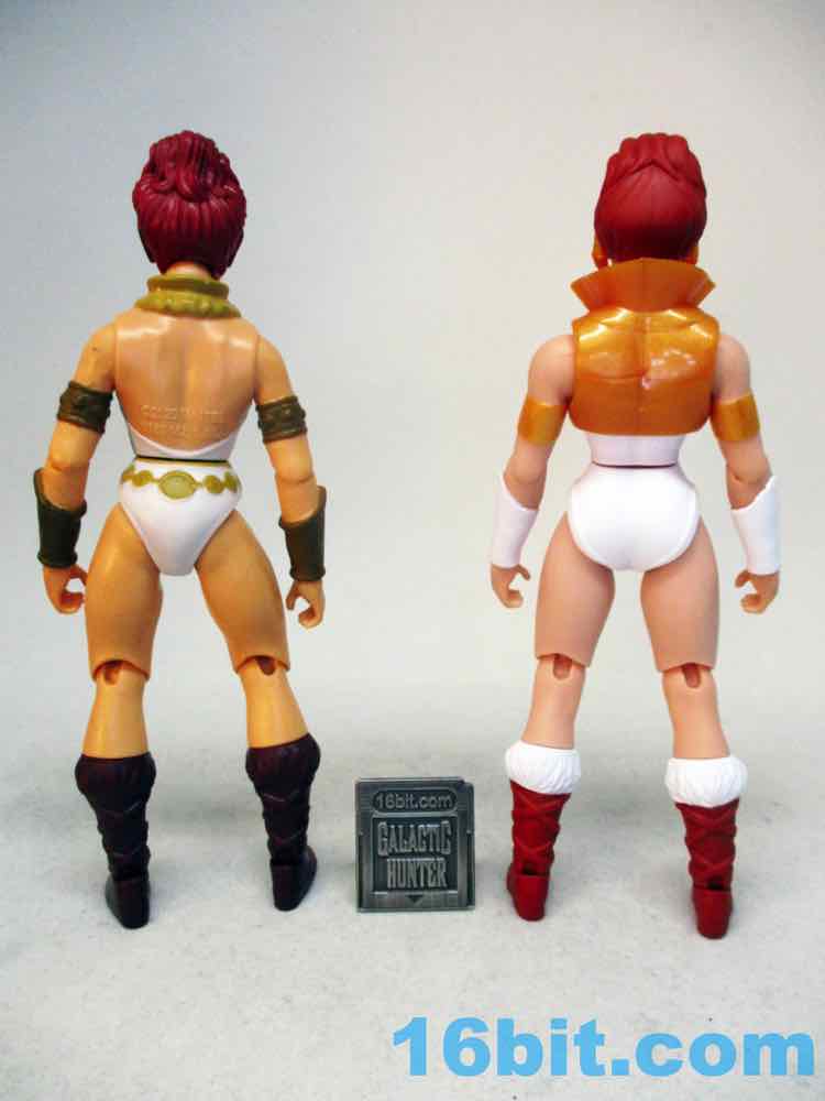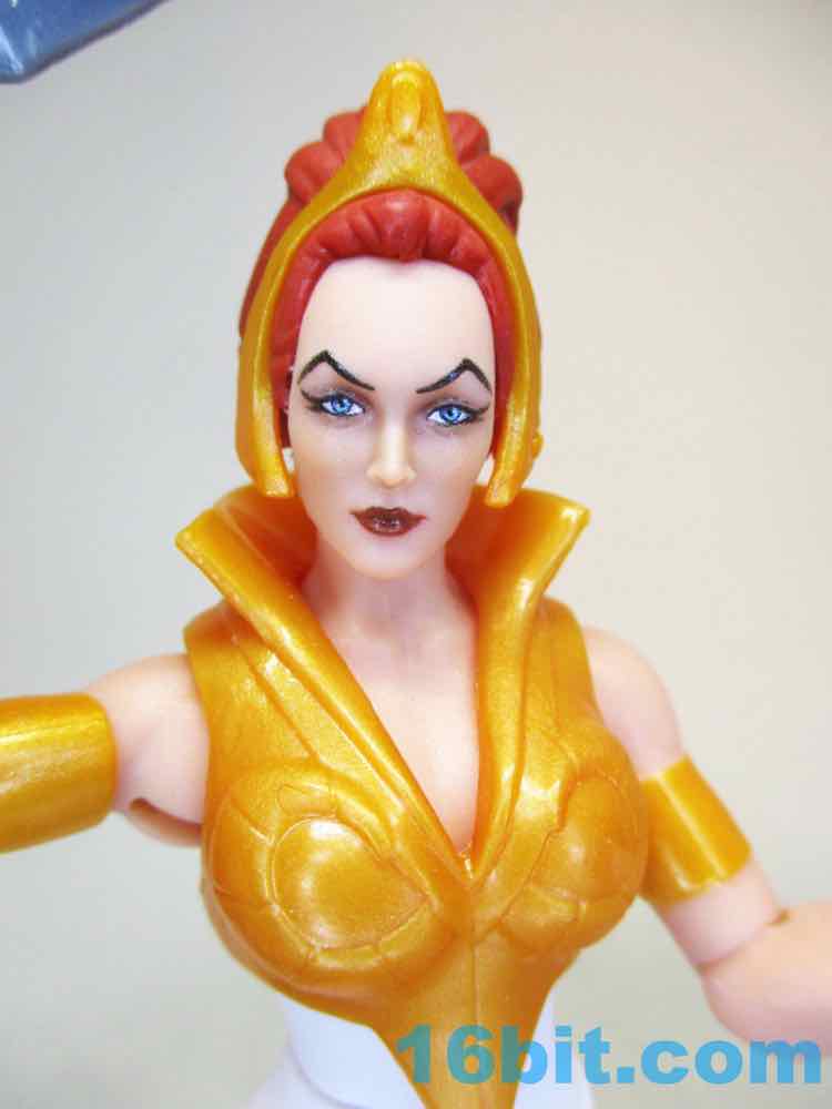At first glance this looks like the Origins figure with a new head, but there are a bunch of changes - just not to her boots. The biceps have bands on them, now flat, and her vambraces are also flat. Unlike Skeletor and Man-at-Arms, she has a fair amount of paint in addition to the included accessories.