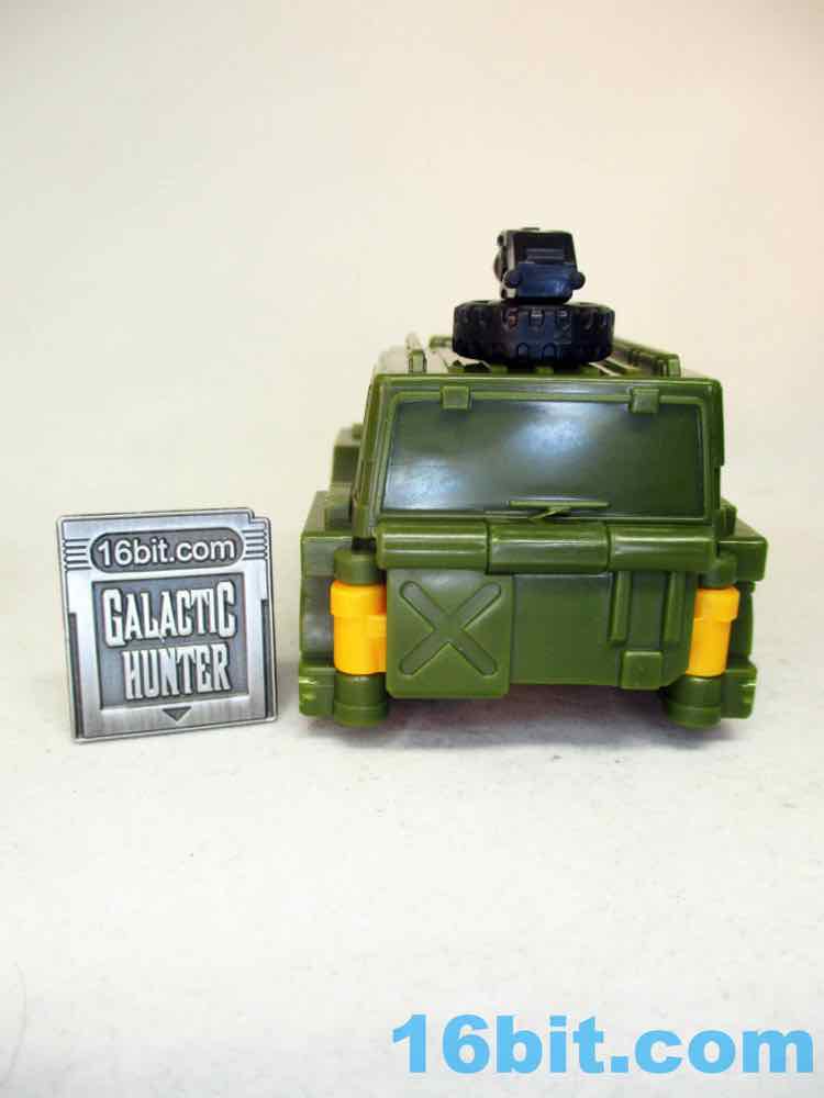 Transformation is fun, with legs that unfold and wrap around the Jeep mode like Siege Hound, and a torso that pops open with a lot of rotating and twisting bits. What makes me nervous are a lot of pegs and holes in visible places, like the back of the fingers, which could show a lot of paint wear over time. Silver paint is notorious for rubbing off, so I might recommend you not transform him too much.