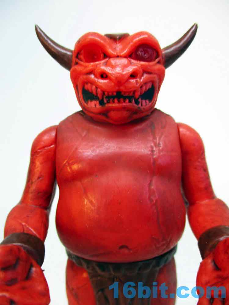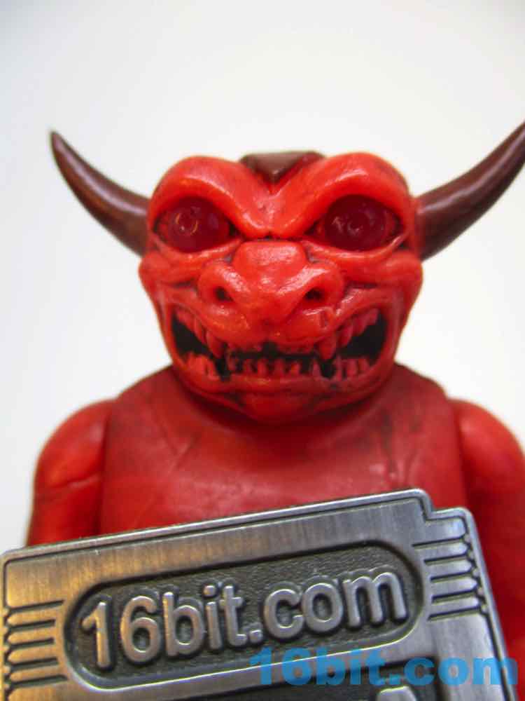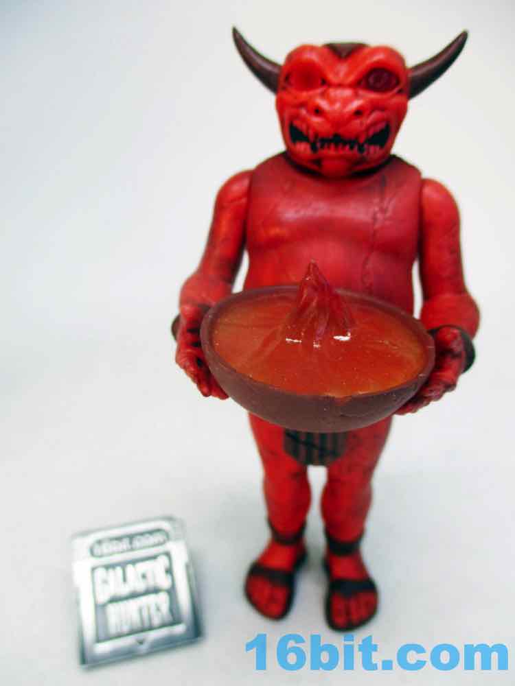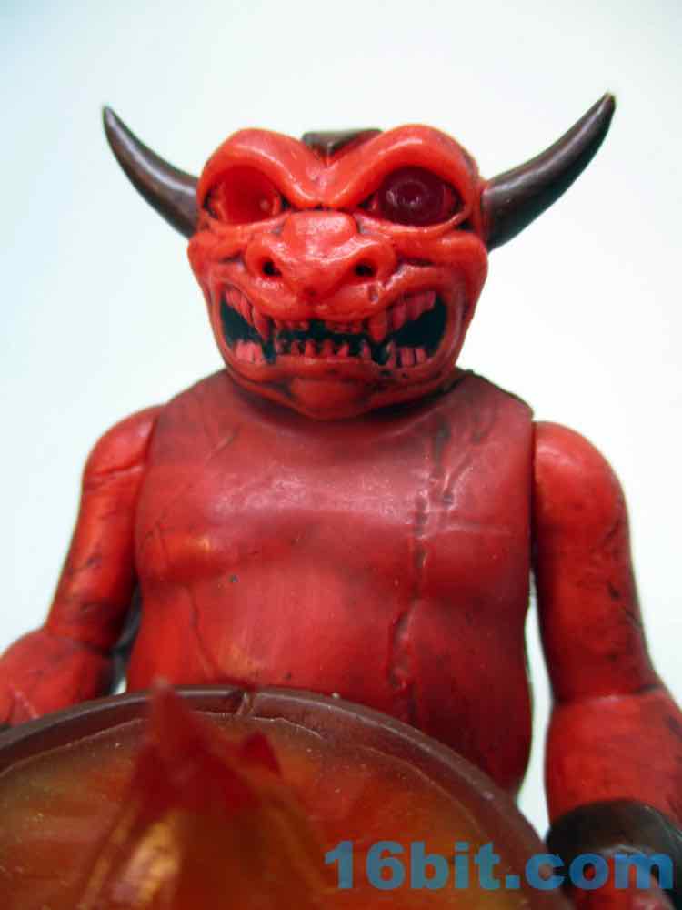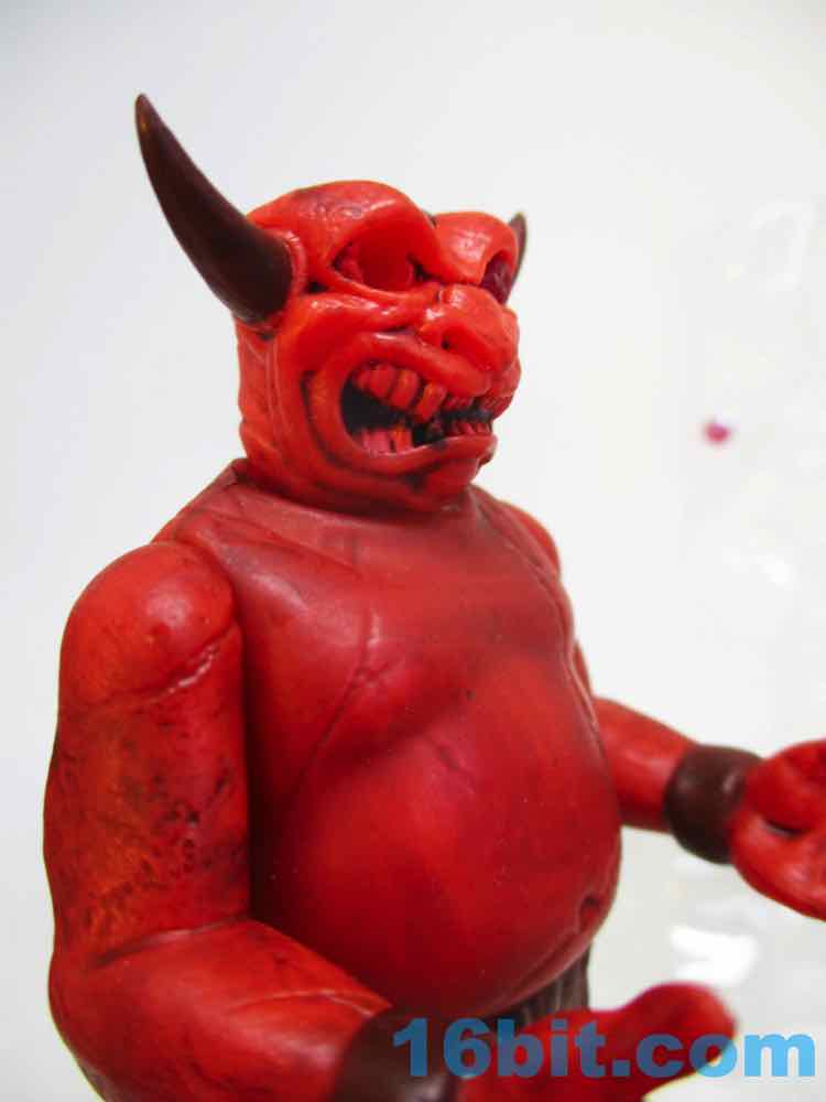 The figure's sculpting is excellent, but almost too perfect. It's not quite as flawless as some other recently released ReAction figures, thanks to numerous cracks and other weathered elements from the deco. The red plastic looks great and the black wash really brings out most of the cracks and cuts. The head has a lot of black in the mouth to make the teeth pop, and the horns are really pointy! The sculptor interpreted the art quite nicely, with tons of cracks and marks on the front but even more on the back. This figure looks like it has seen some action, which is great, because none of the adult fans buying it are likely to ever play with it. That's the sad fate of all new toys.