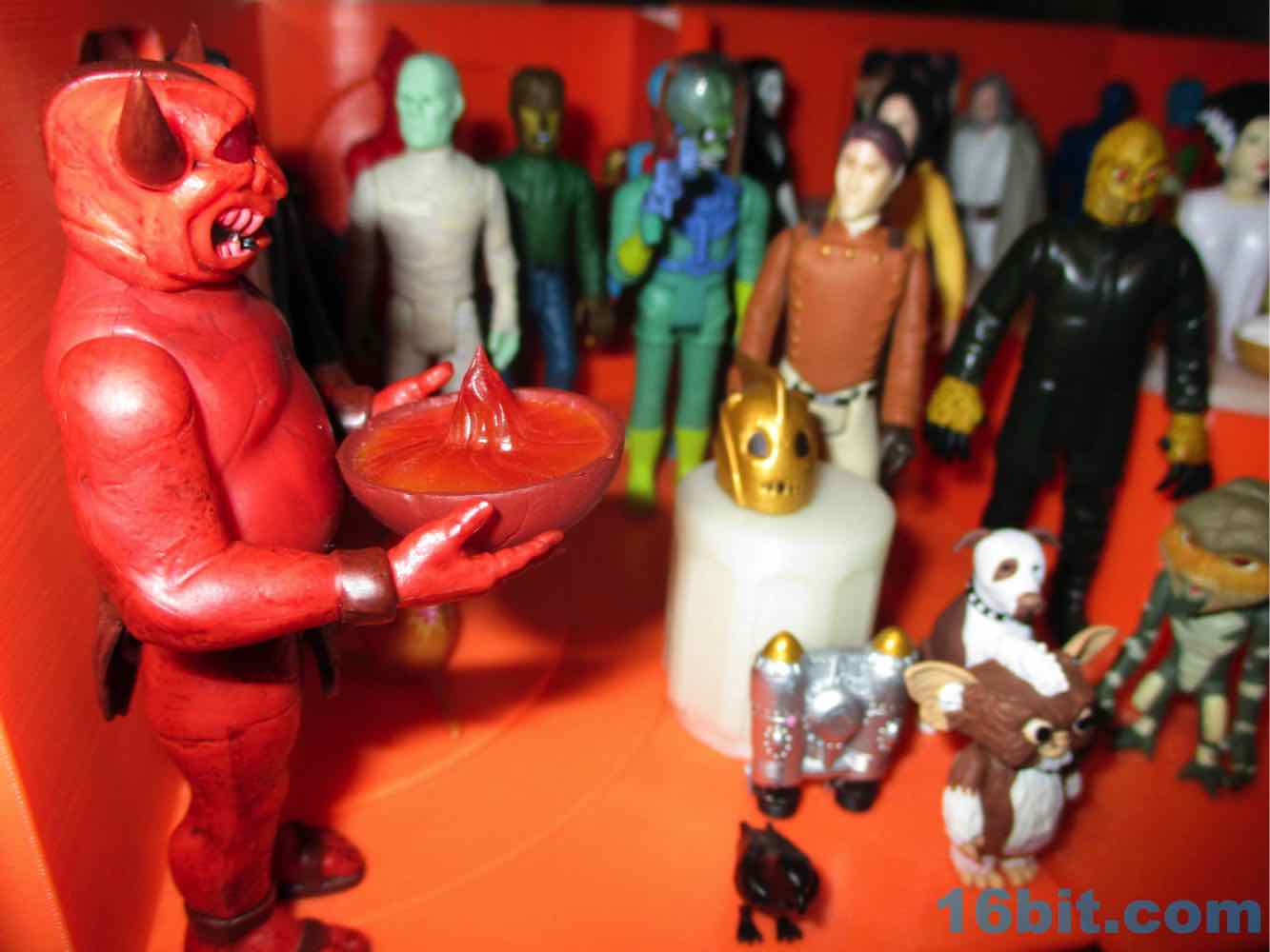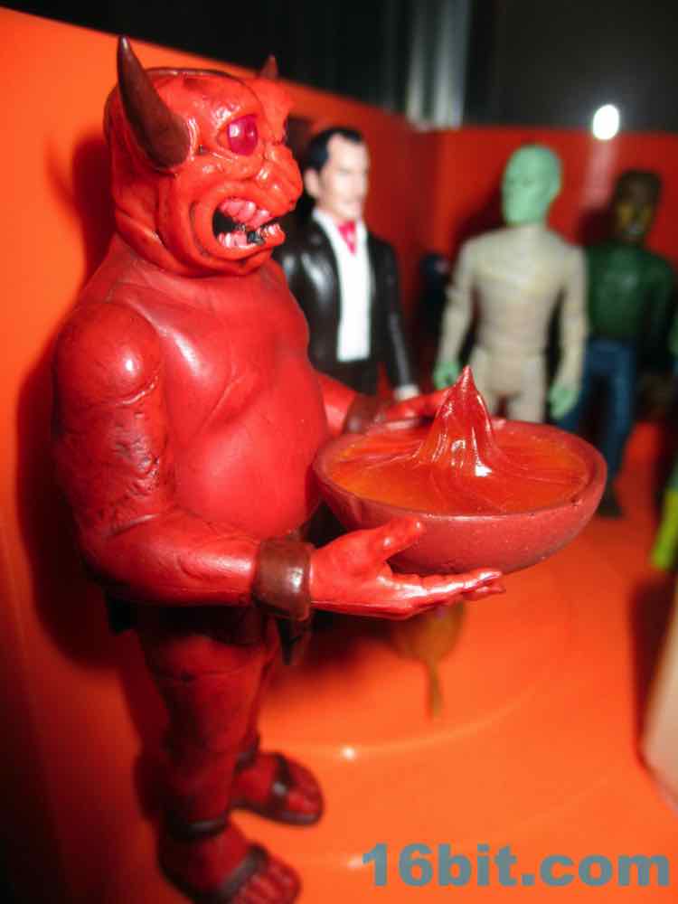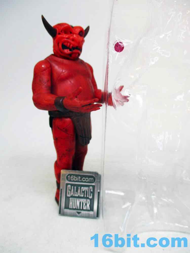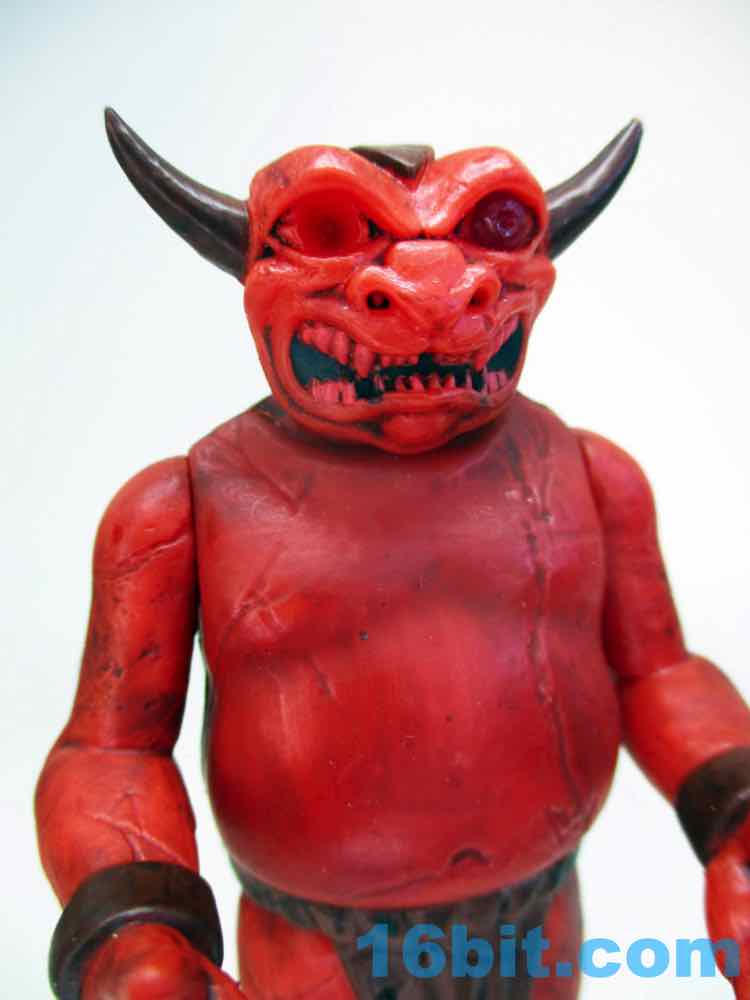 The figure's sculpting is excellent, but almost too perfect. It's not quite as flawless as some other recently released ReAction figures, thanks to numerous cracks and other weathered elements from the deco. The red plastic looks great and the black wash really brings out most of the cracks and cuts. The head has a lot of black in the mouth to make the teeth pop, and the horns are really pointy! The sculptor interpreted the art quite nicely, with tons of cracks and marks on the front but even more on the back. This figure looks like it has seen some action, which is great, because none of the adult fans buying it are likely to ever play with it. That's the sad fate of all new toys.