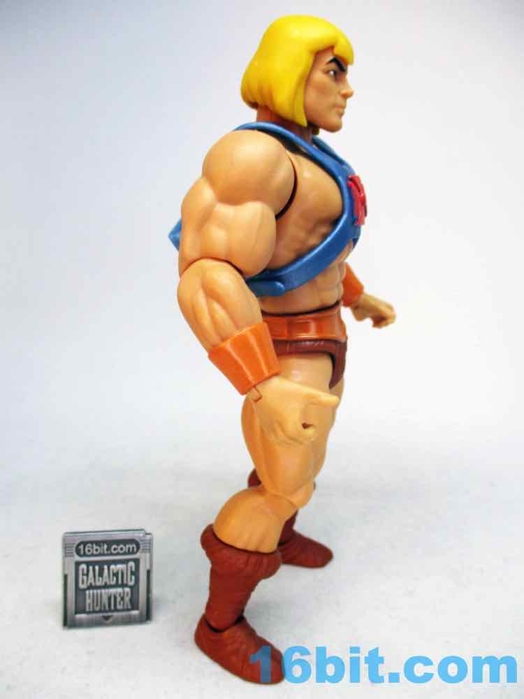 The range of motion is pretty good, but not great. If you thought you could get He-Man to hold a sword with both hands, that isn't going to happen. The legs can stand up straight, but you can't swing the legs forward fully. You should be able to get him to ride Battle Cat or fit in the Wind Raider or Talon Fighter without a fight, but I would have preferred the furry shorts be cut to let the legs swing forward a bit more.